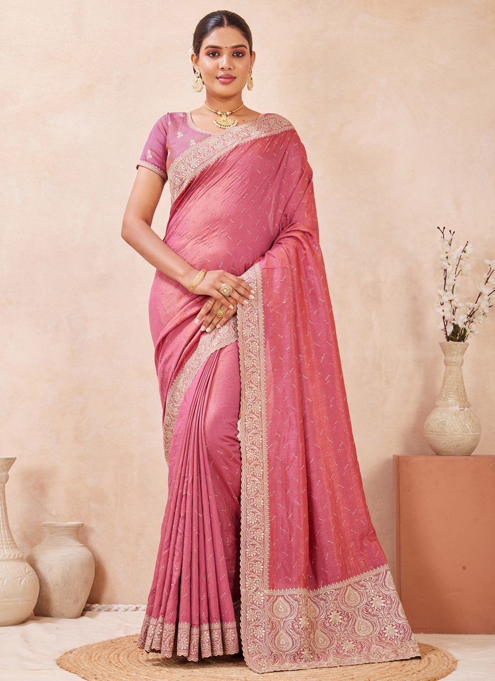 Pink Silk Embroidered Readymade Ceremonial Salwar Kameez