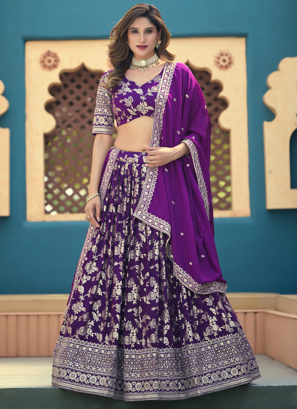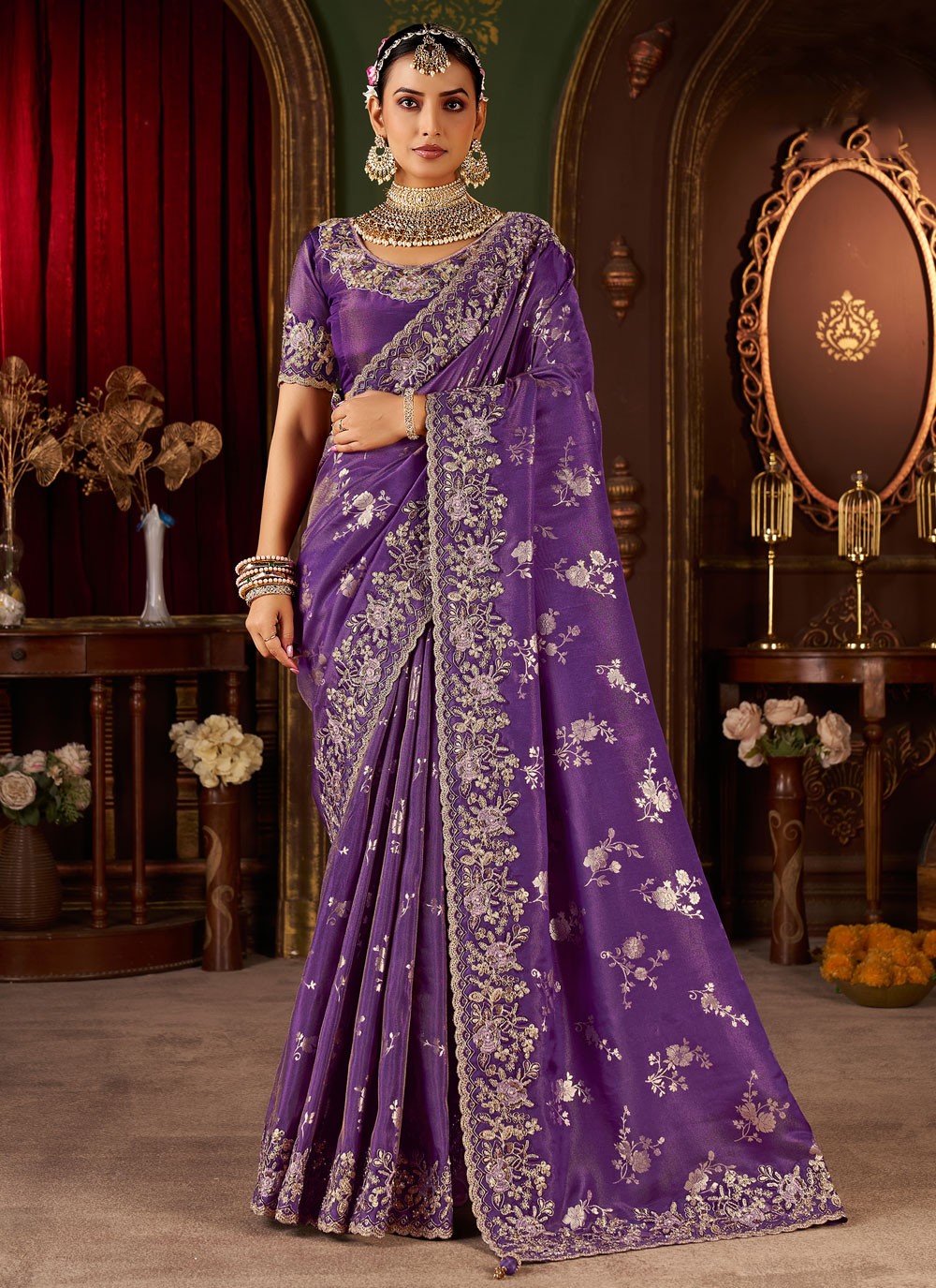 Silk Purple Embroidered Designer Salwar Kameez for Ceremonial