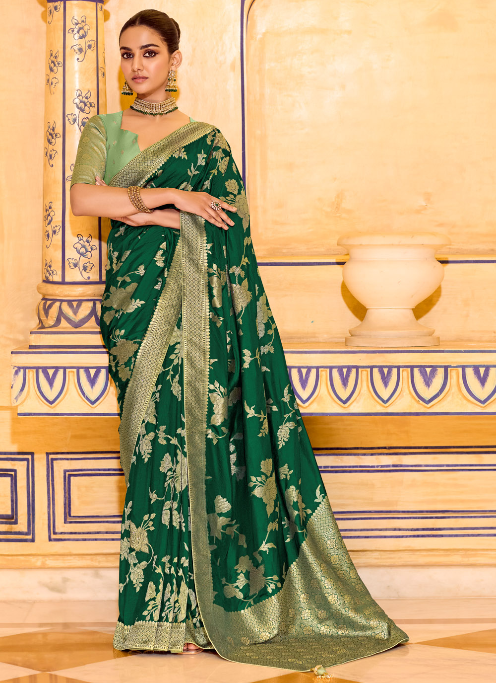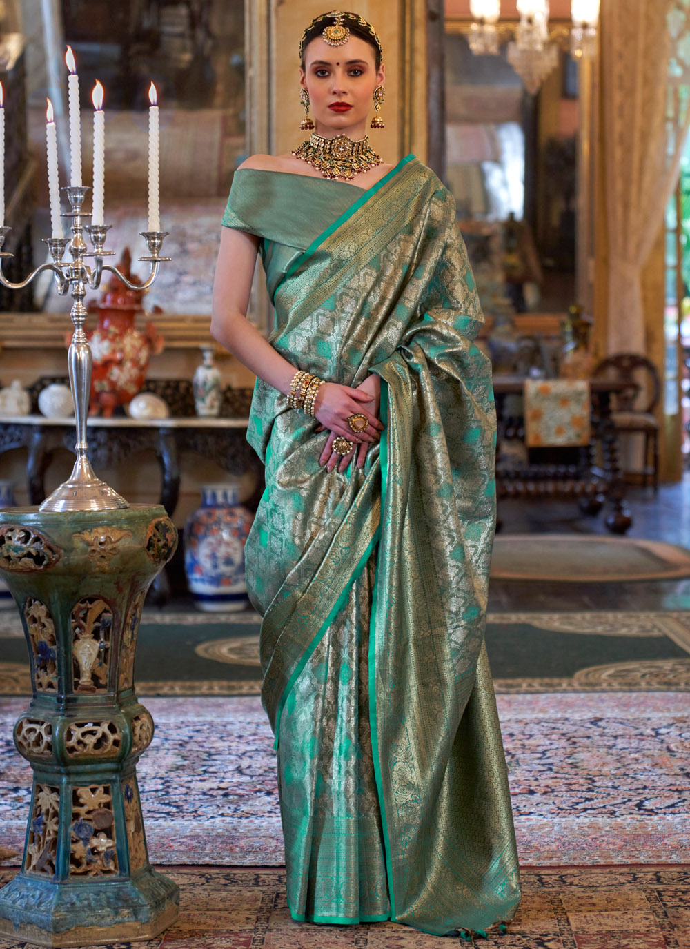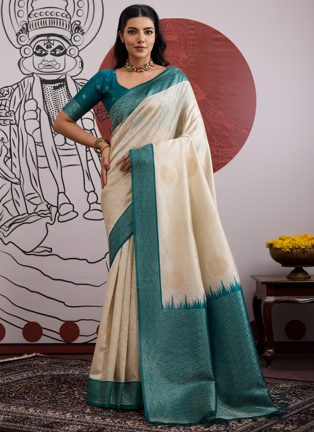 Handloom Silk Teal and Cream Zari Weaving Classic Saree