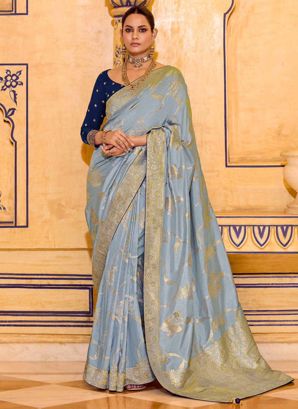 Chinon Silk Sequins Embroidered Blue Palazzo Style Suit