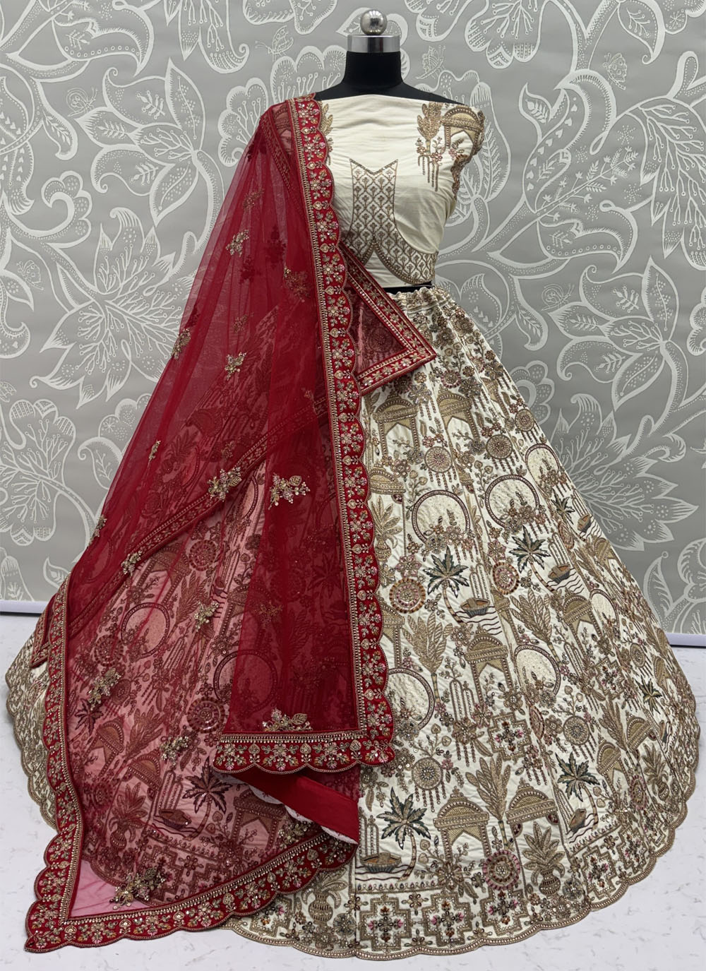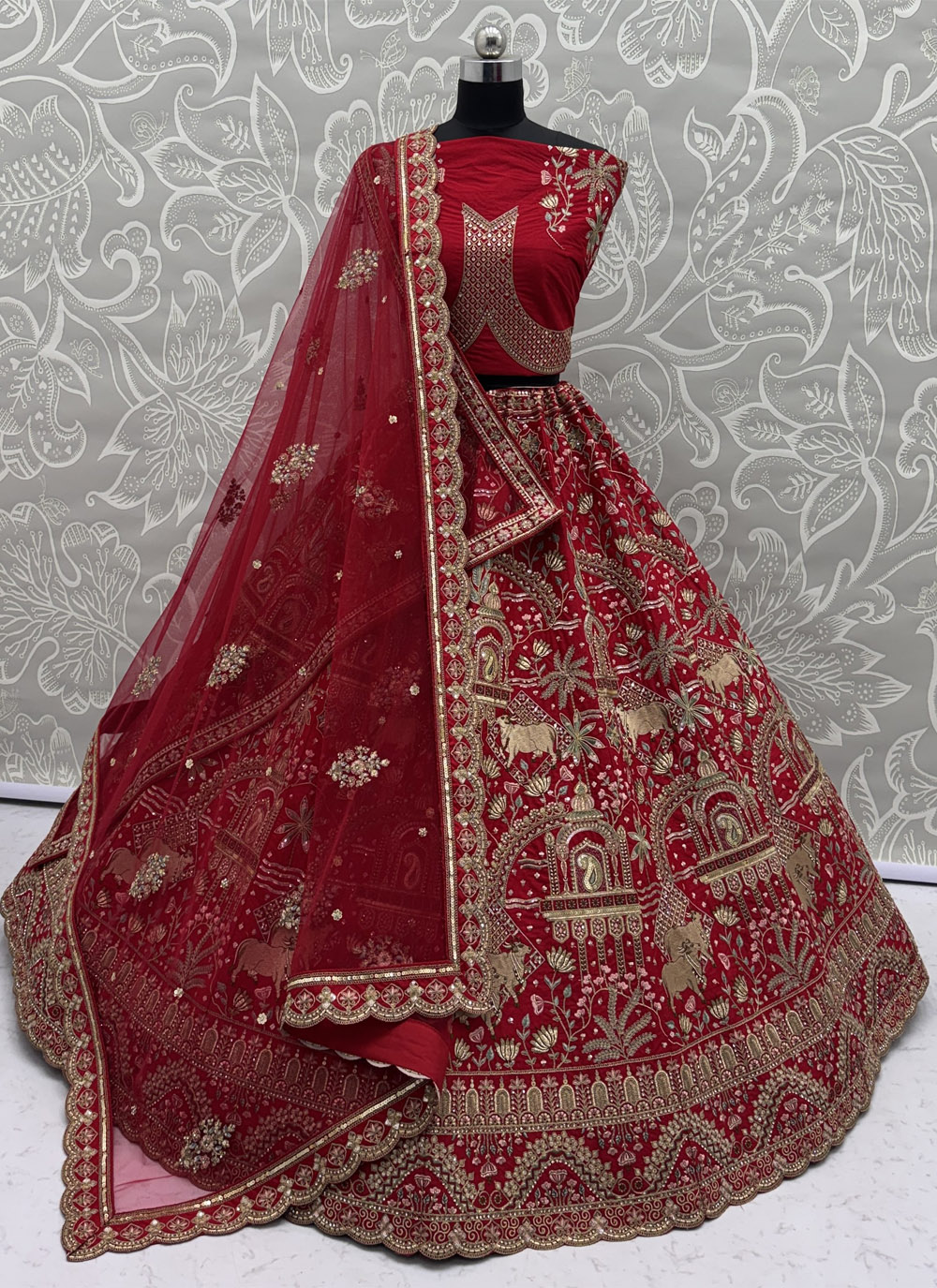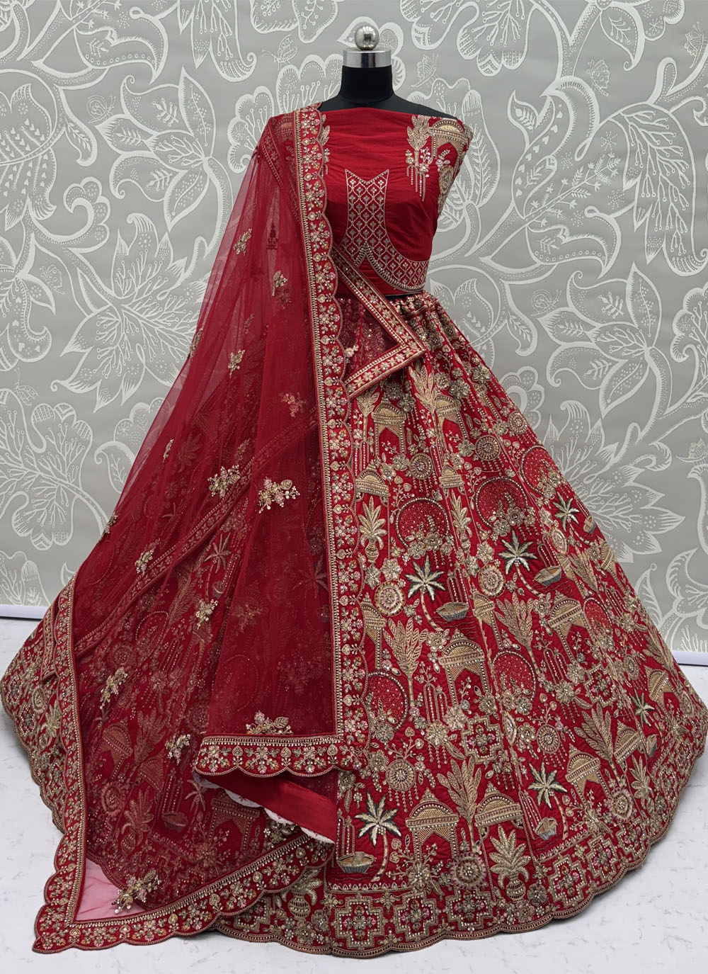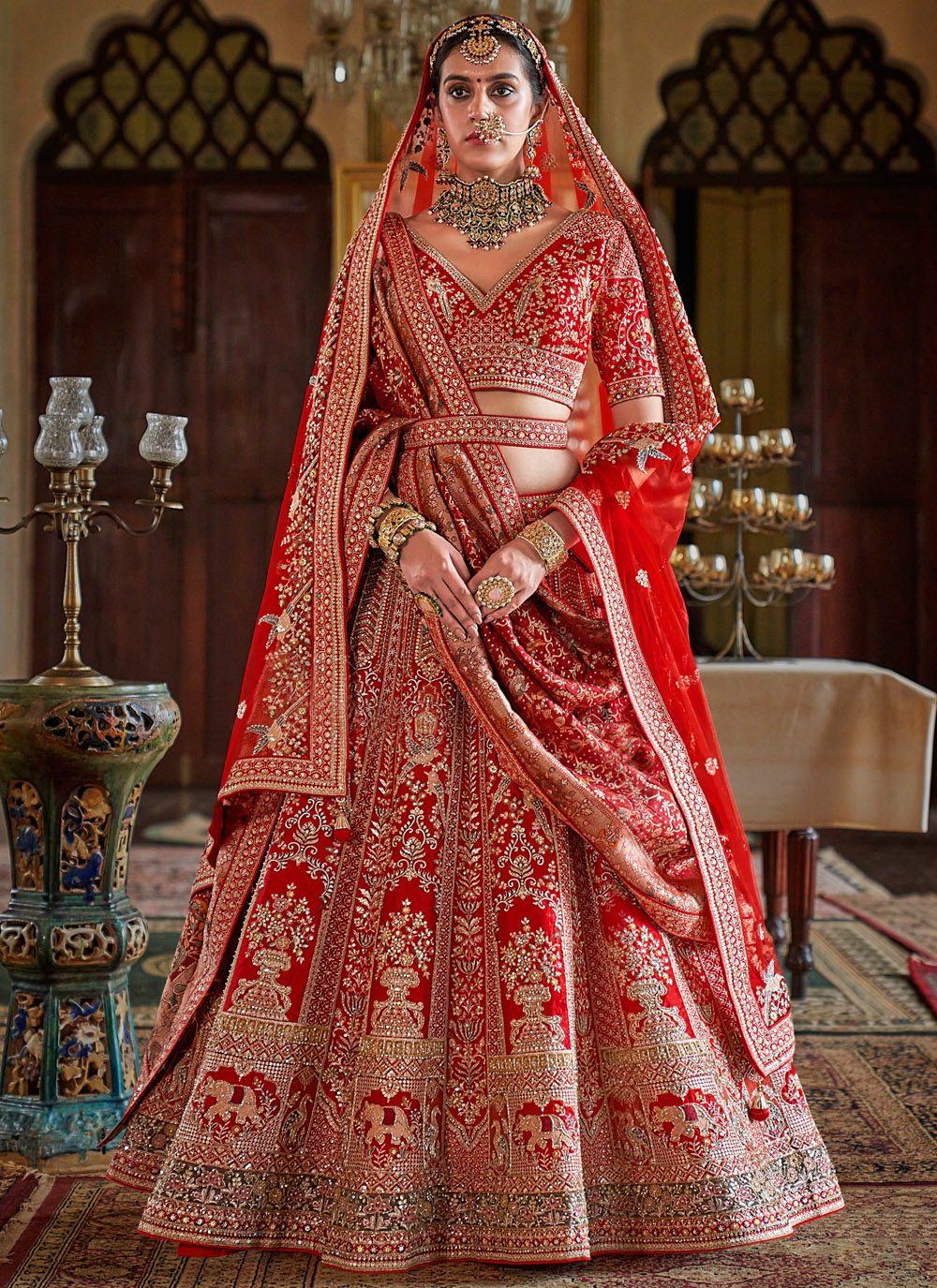 Silk Red Sequins Thread Zari Lace Embroidered Lehenga Choli for Wedding