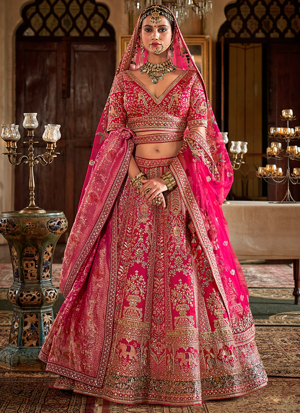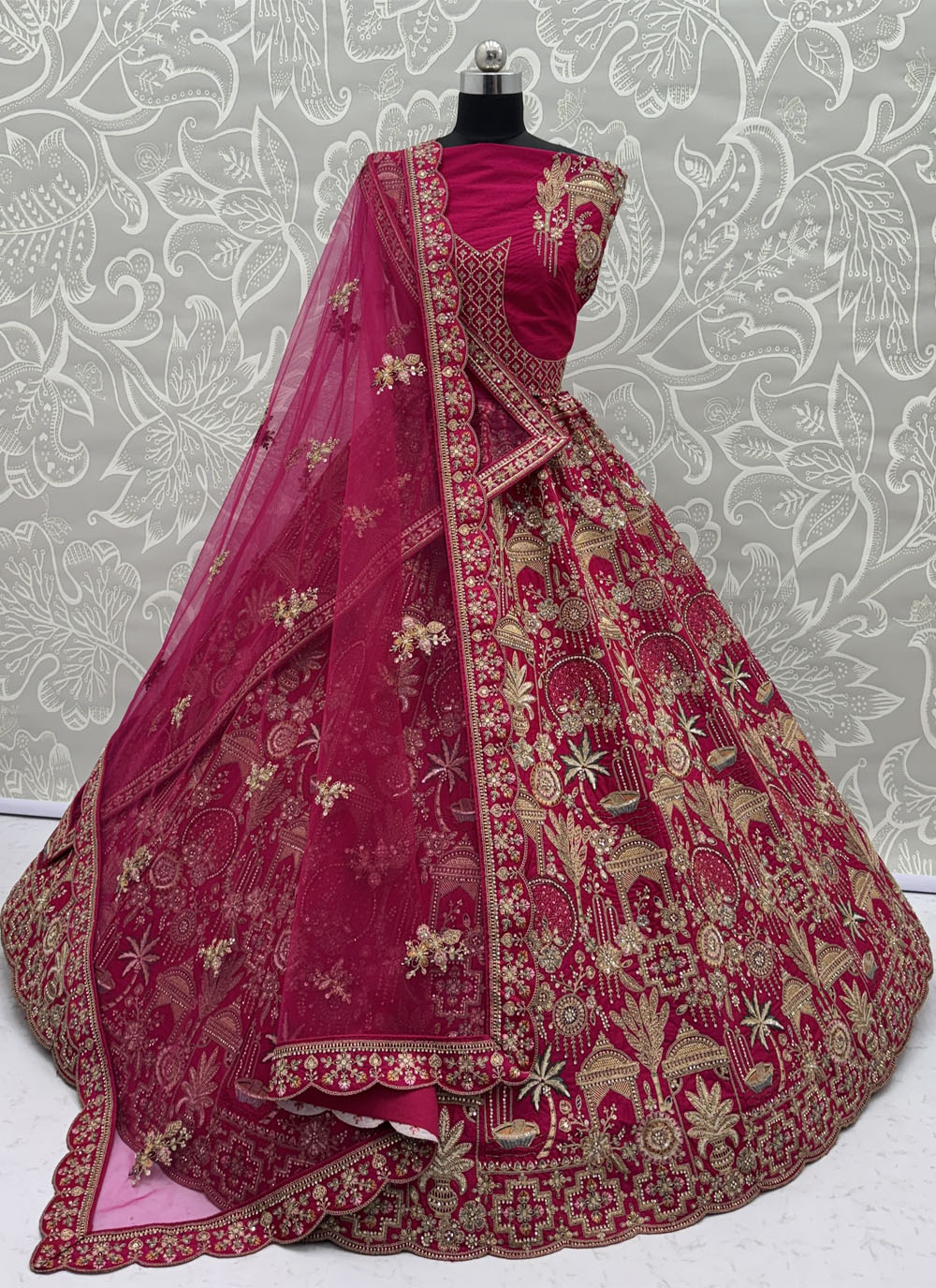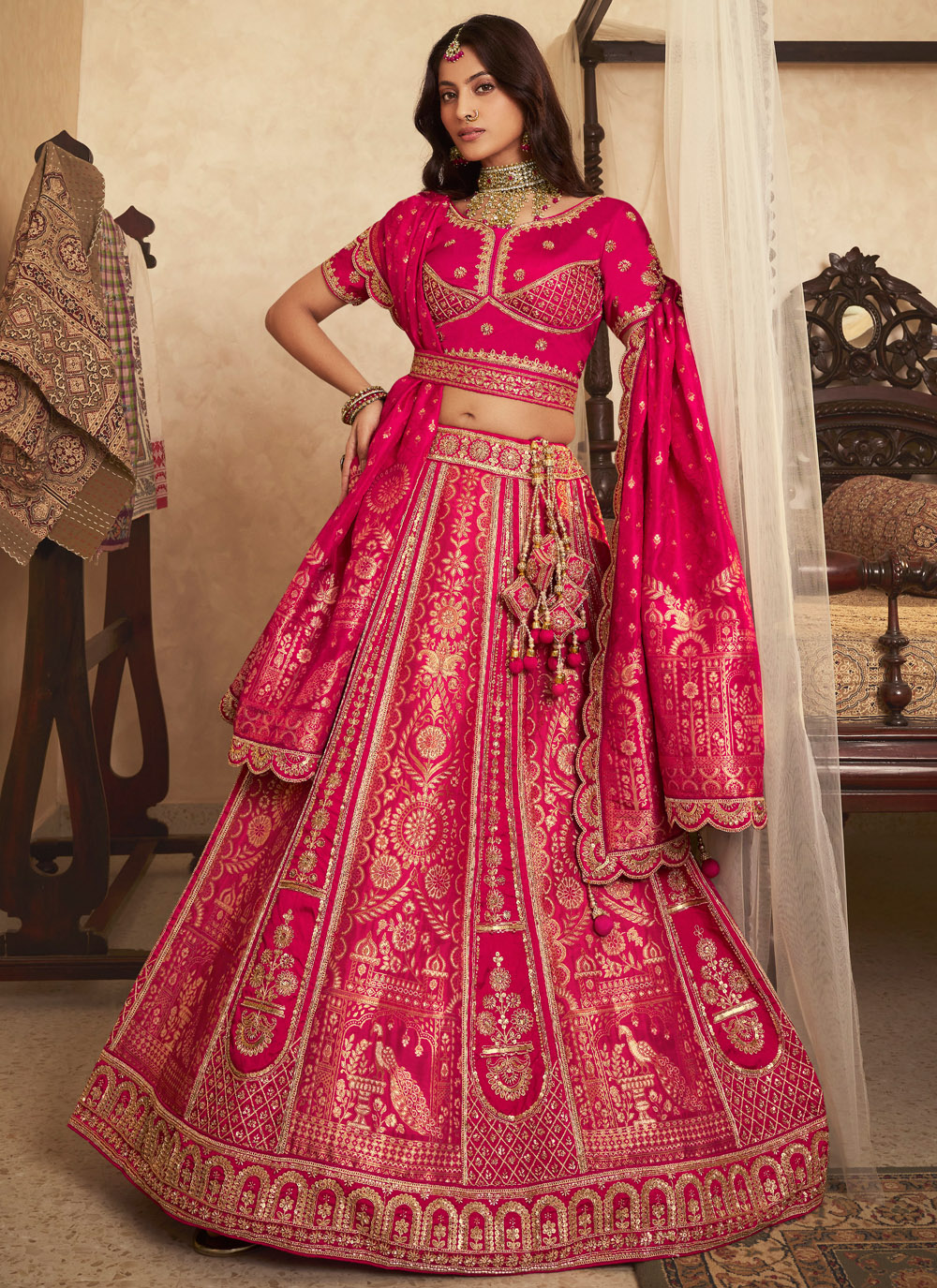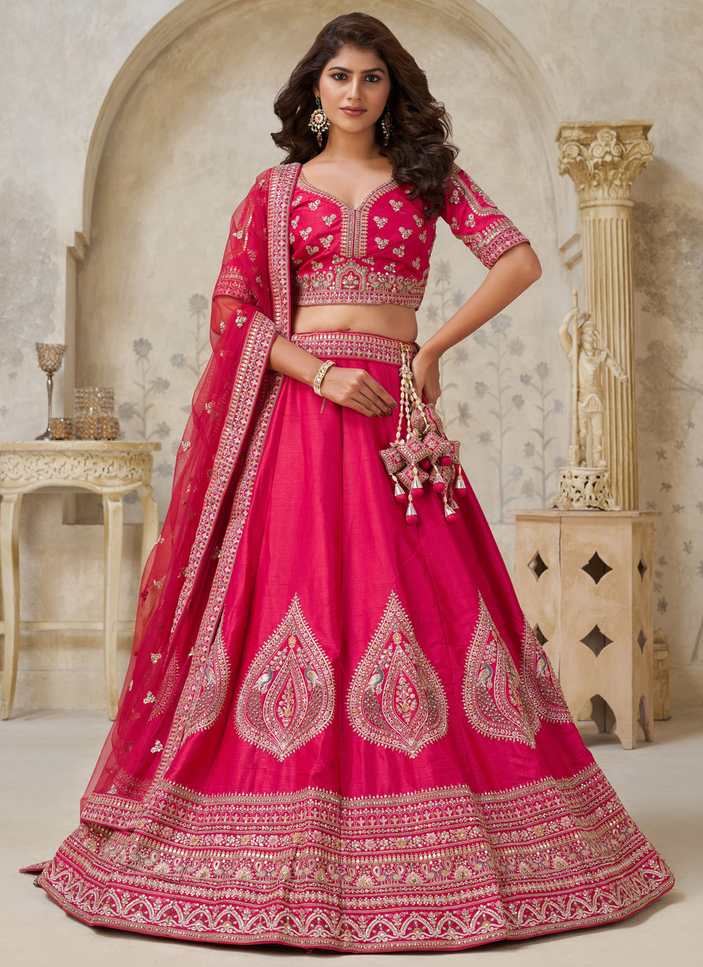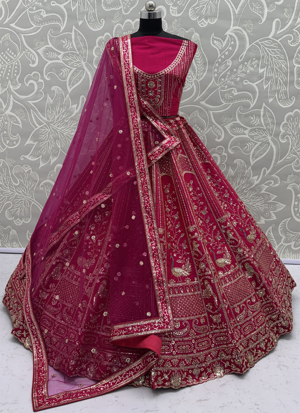 Rani Silk Dori Sequins Thread Embroidered Wedding Lehenga Choli