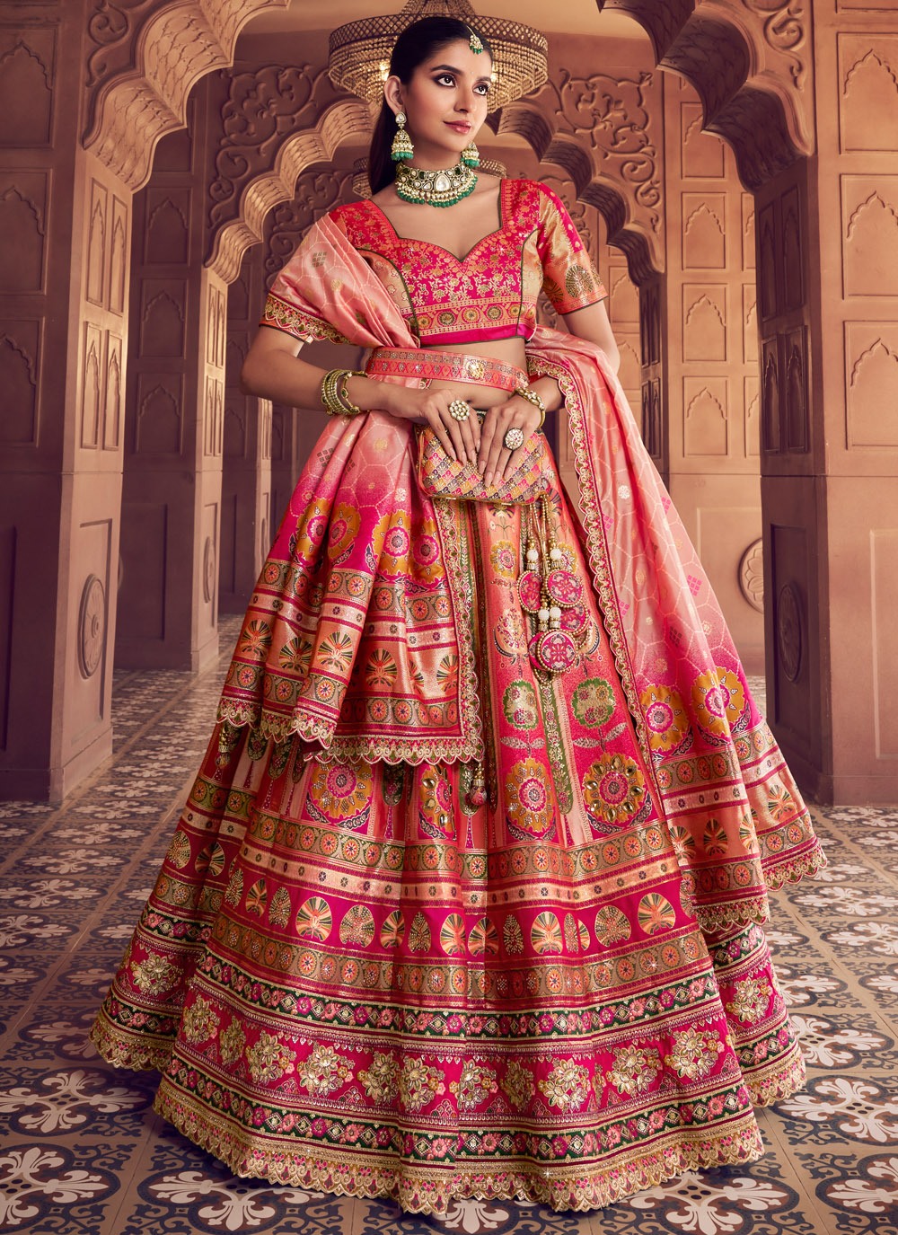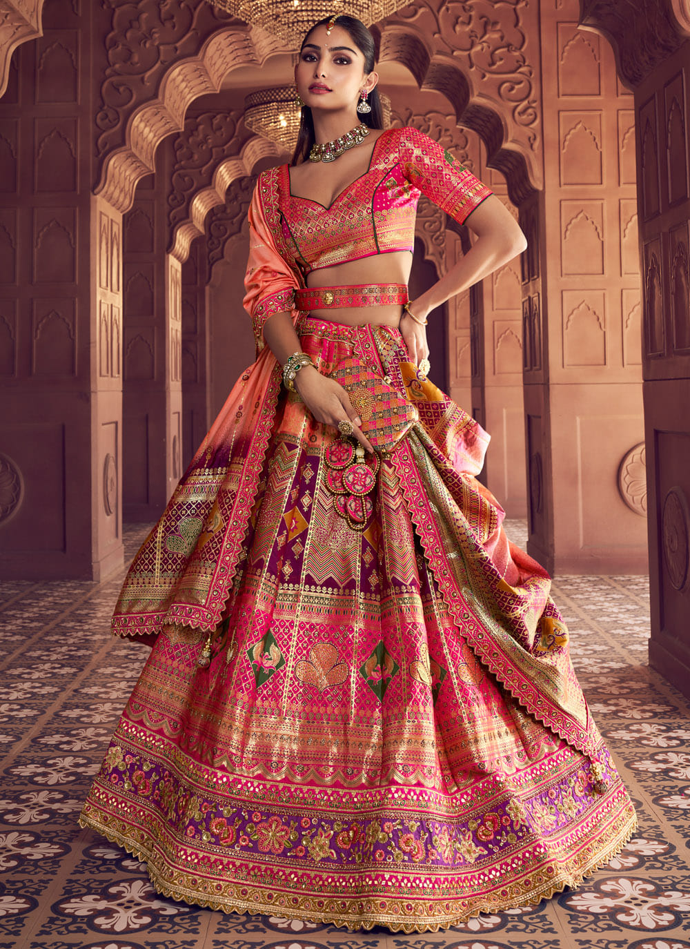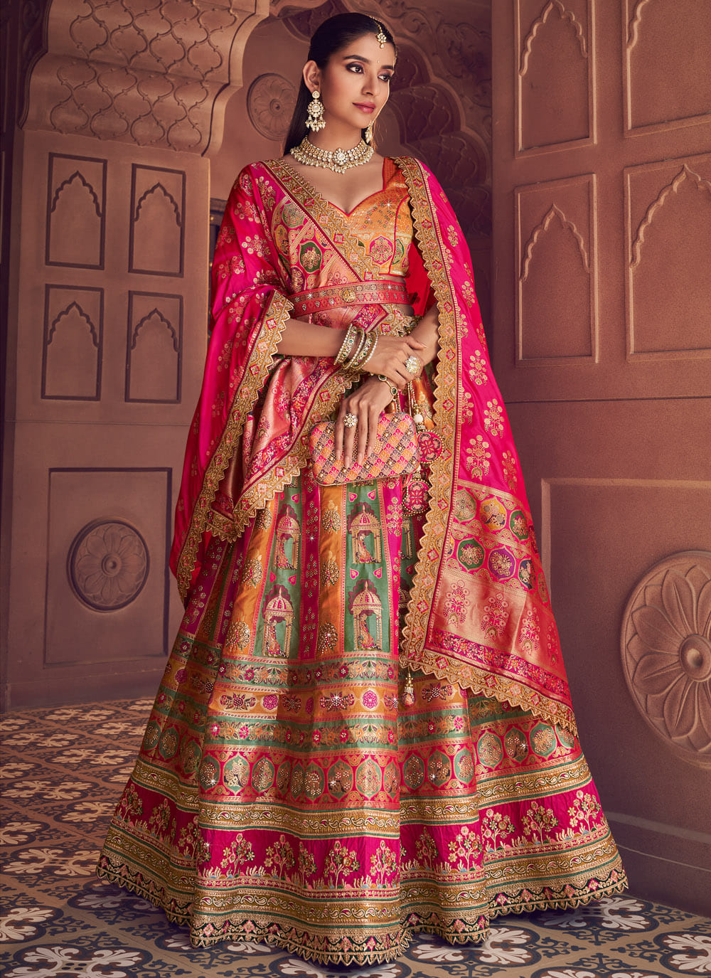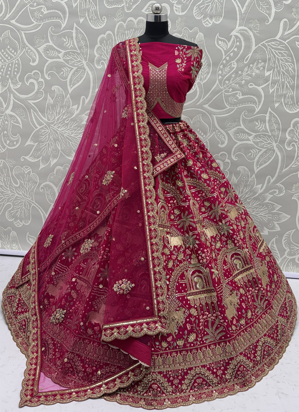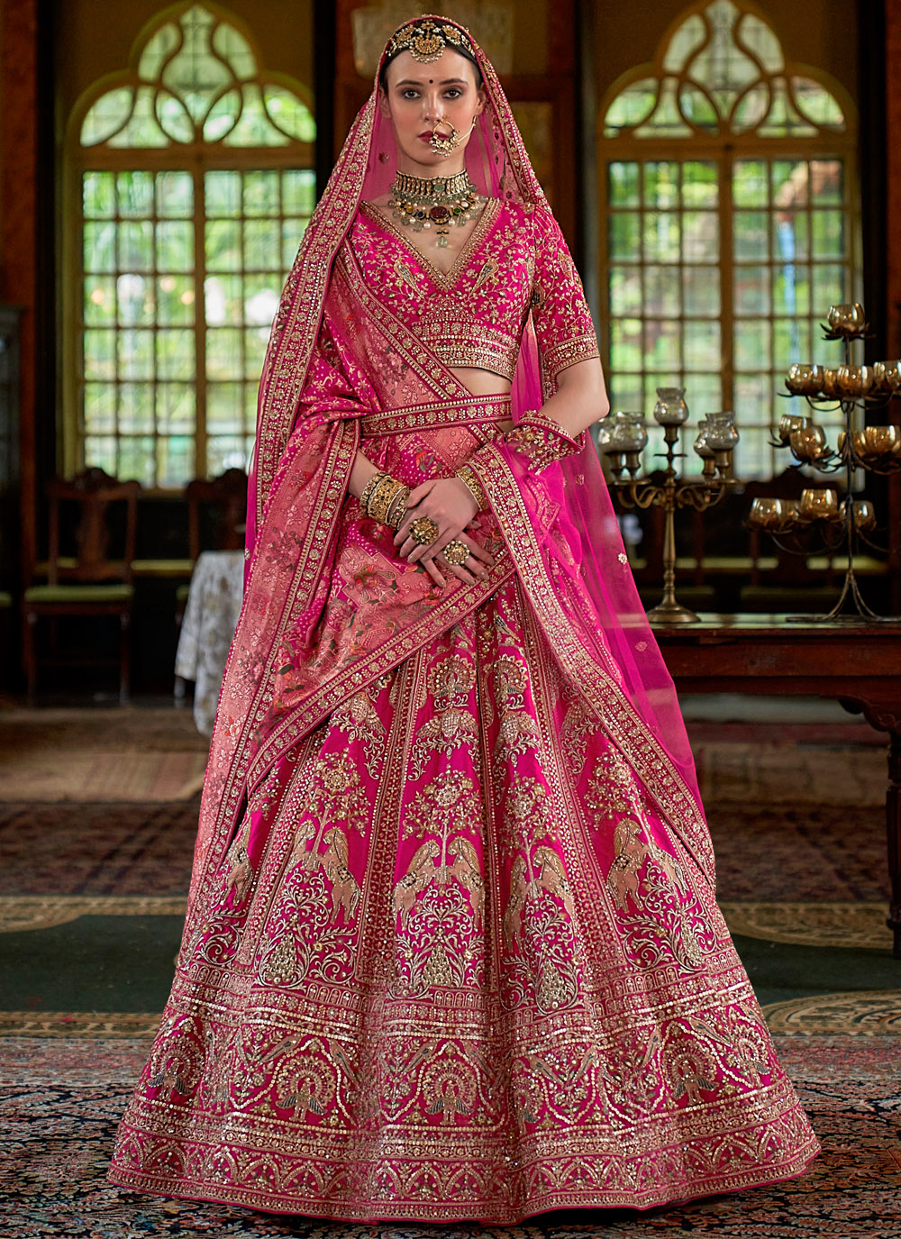 Rani Silk Dori Sequins Thread Embroidered Wedding Lehenga Choli