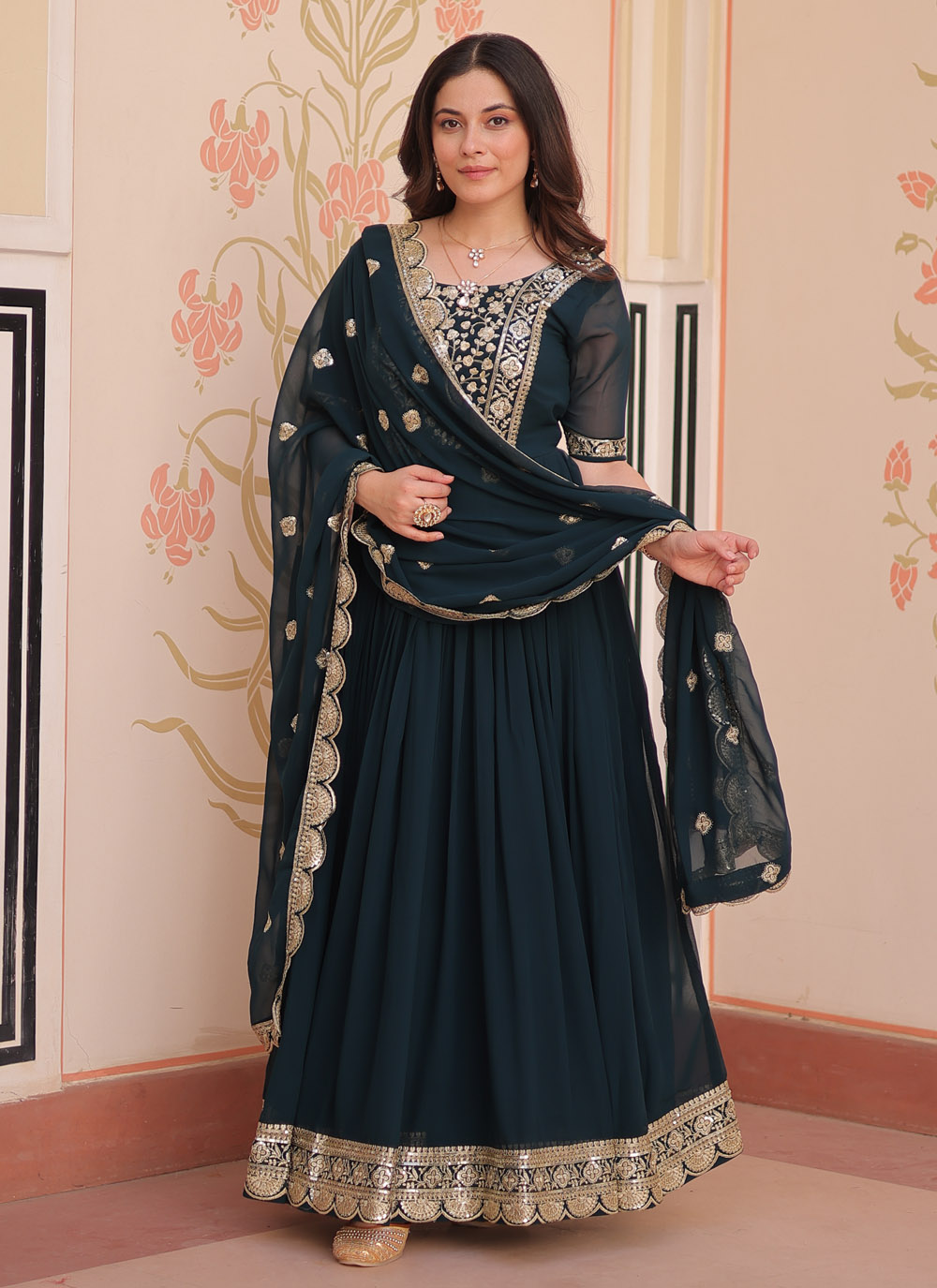 Rama Embroidered Zari Sequins Georgette Designer Gown