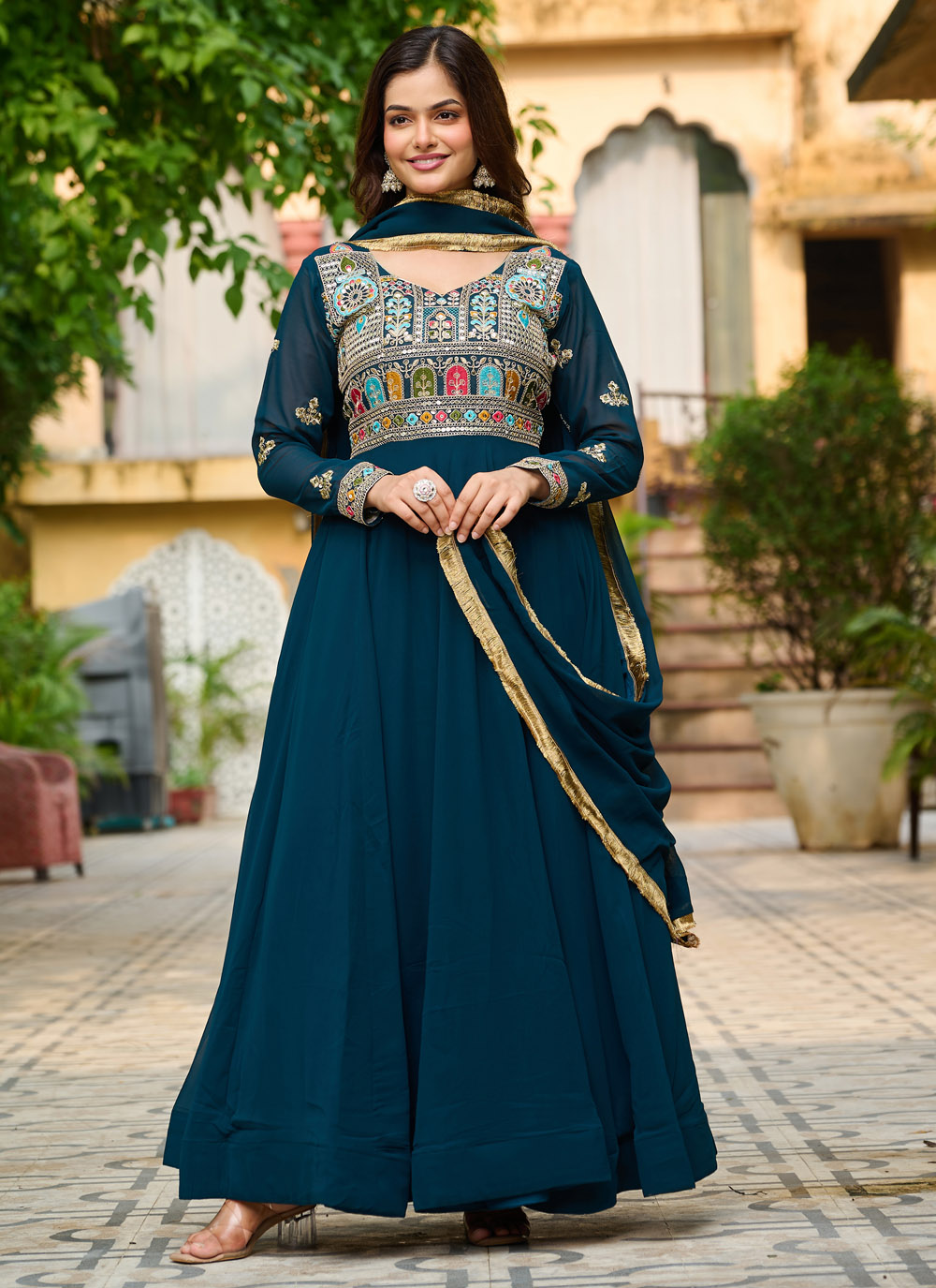 Rani Colour Georgette Embroidered Readymade Gown