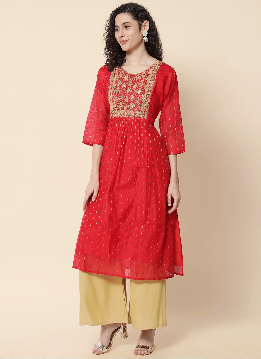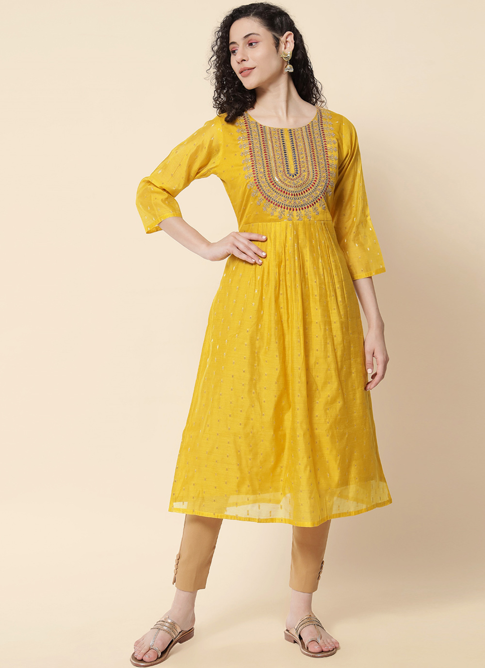 Chanderi Embroidered Yellow Trendy Casual Kurti