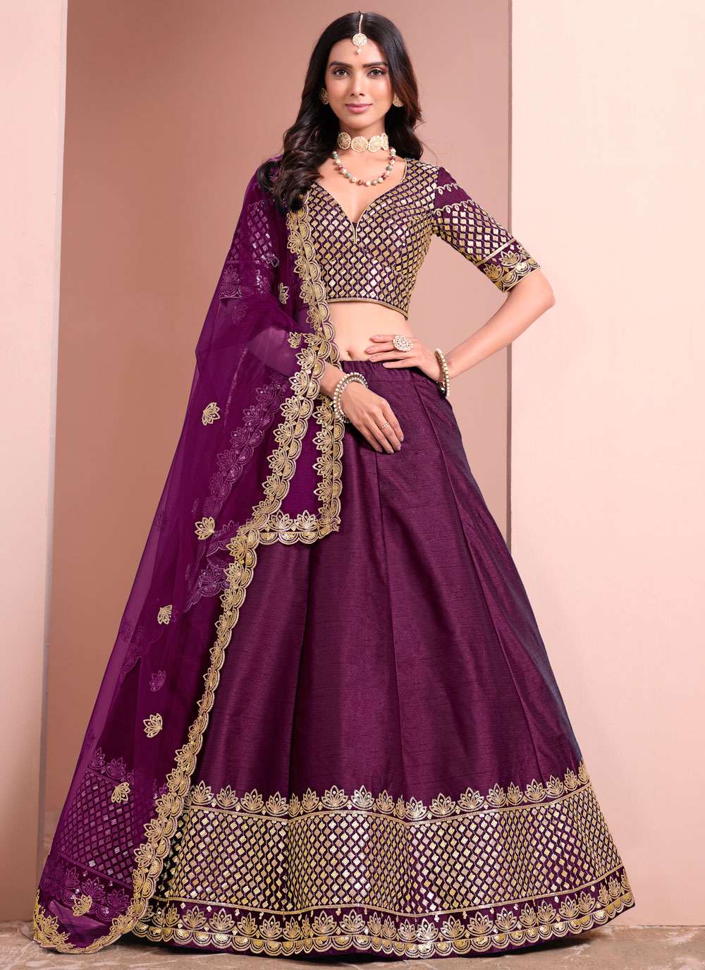 Purple Art Silk Zari Embroidered Designer Lehenga Choli