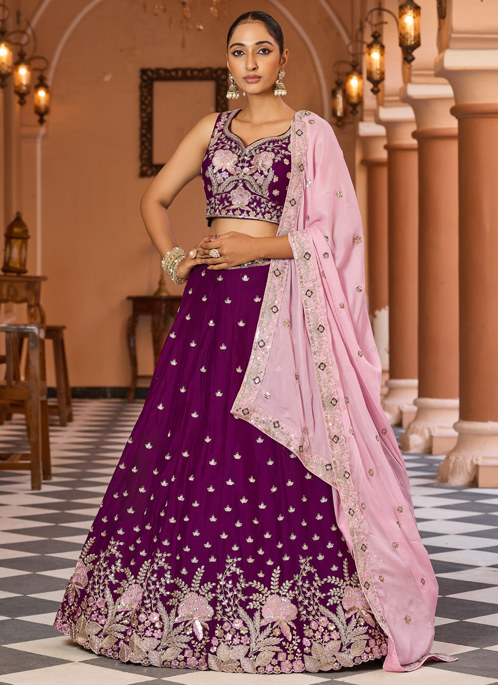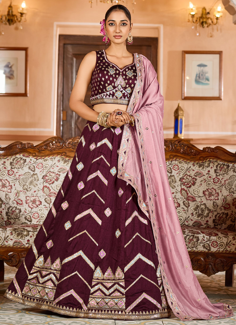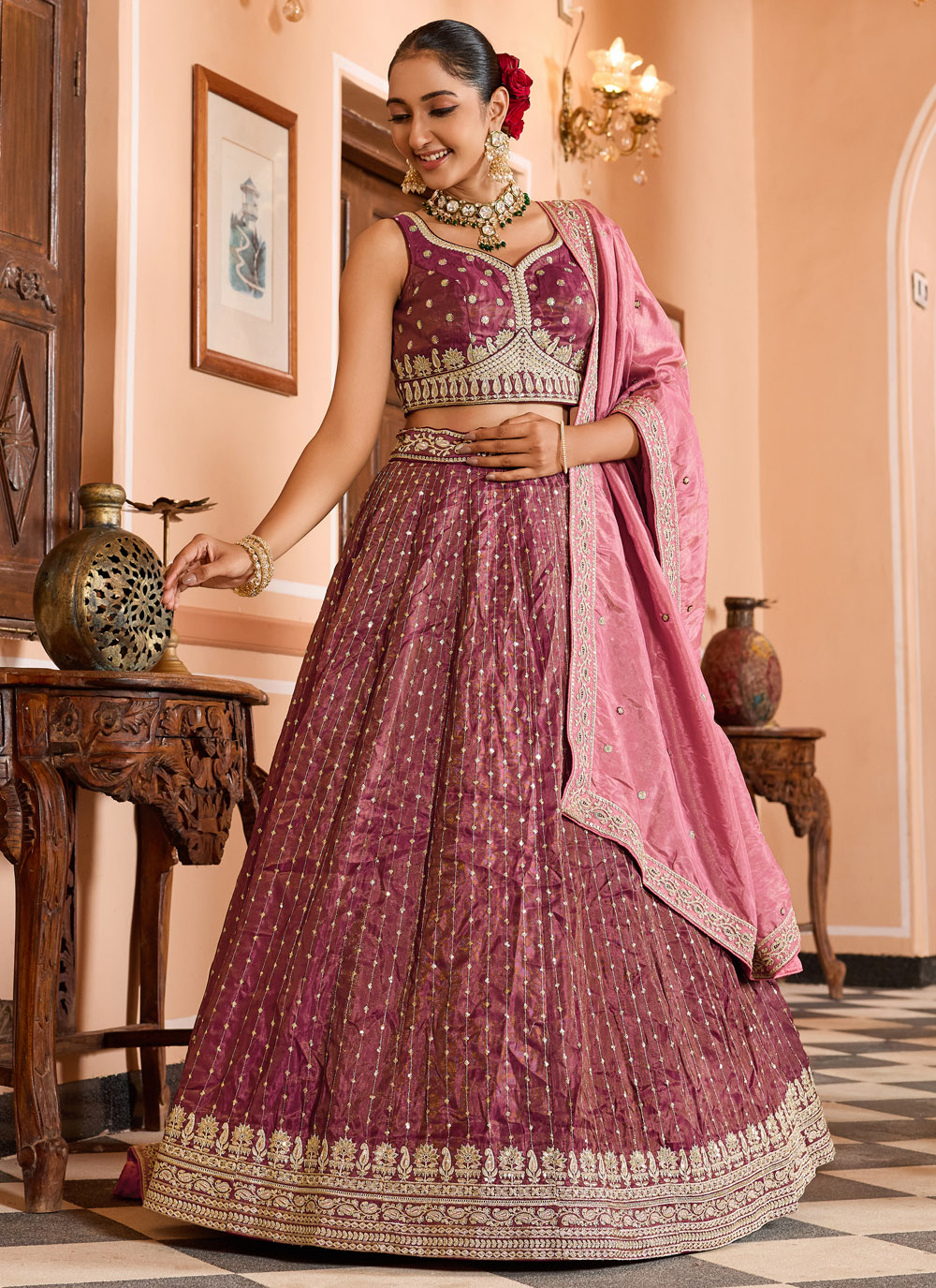 Embroidered Sequins Work Silk Pink Engagement Lehenga Choli