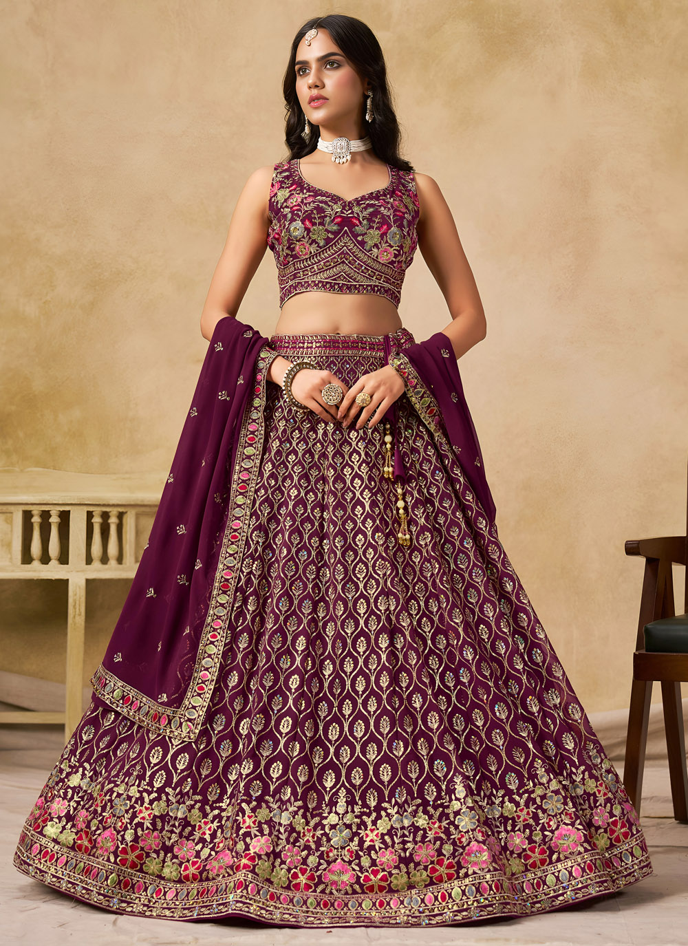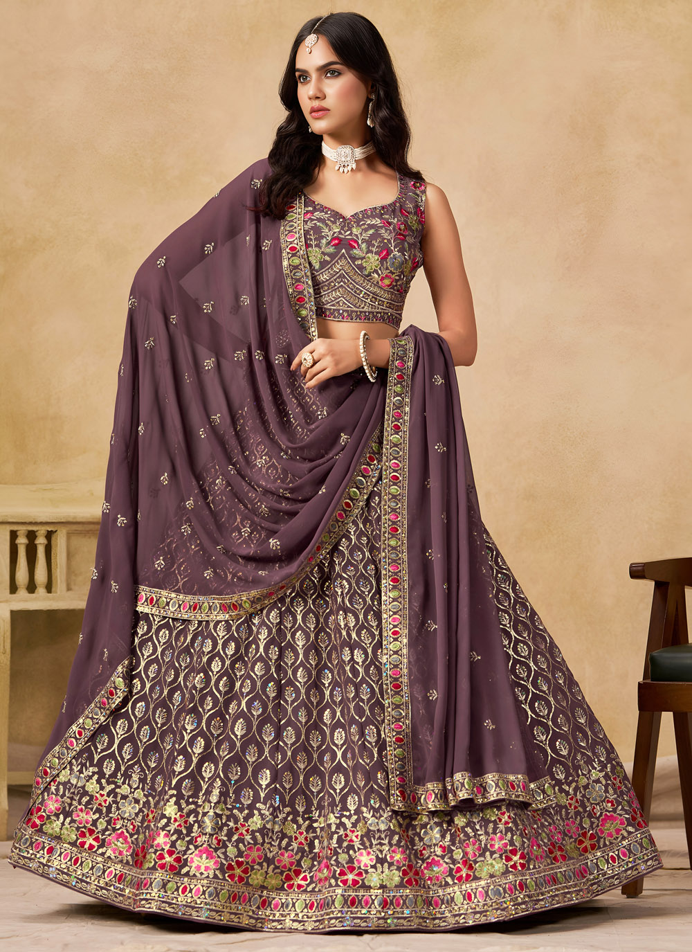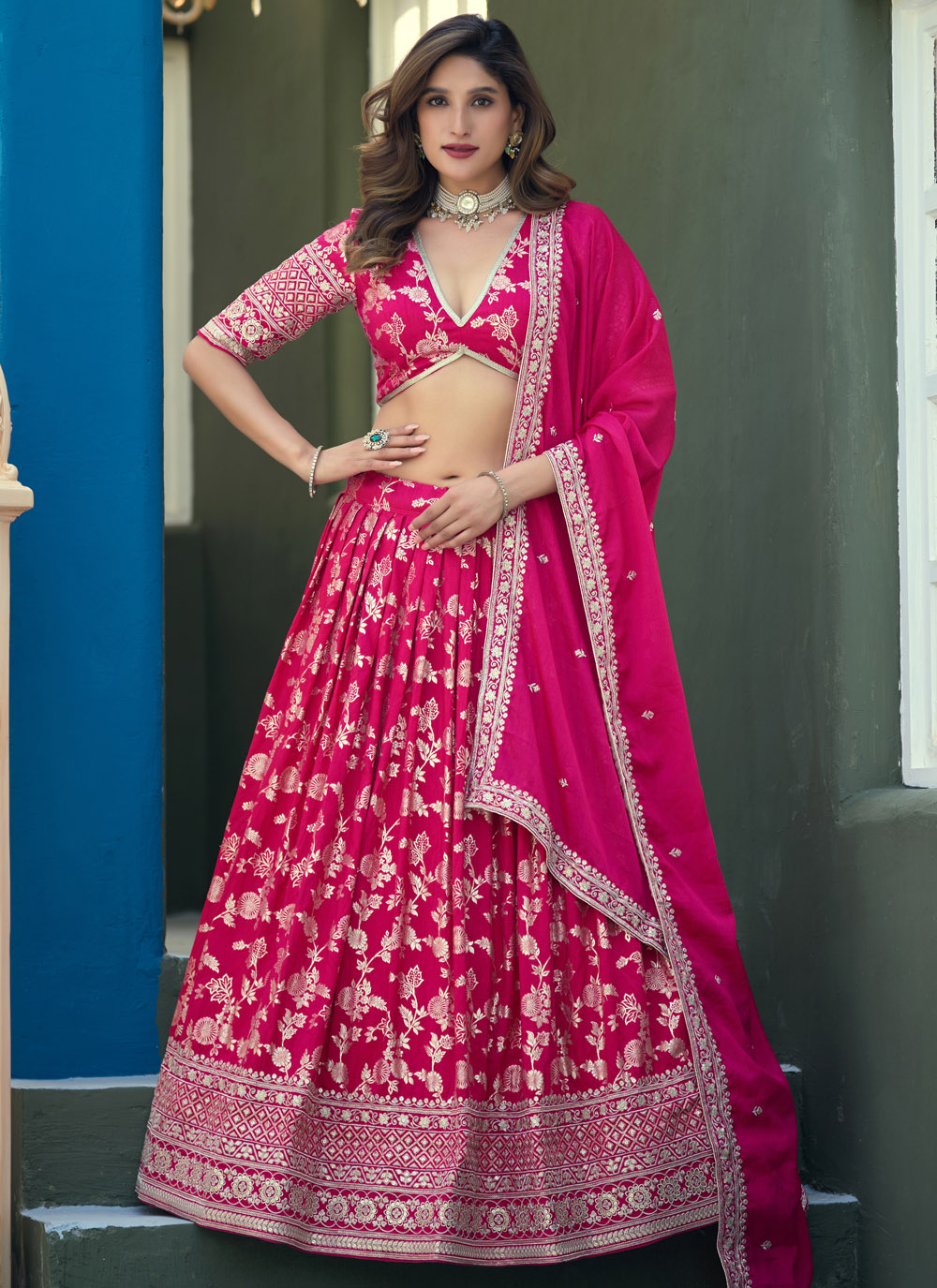 Embroidered Sequins Work Silk Pink Engagement Lehenga Choli
