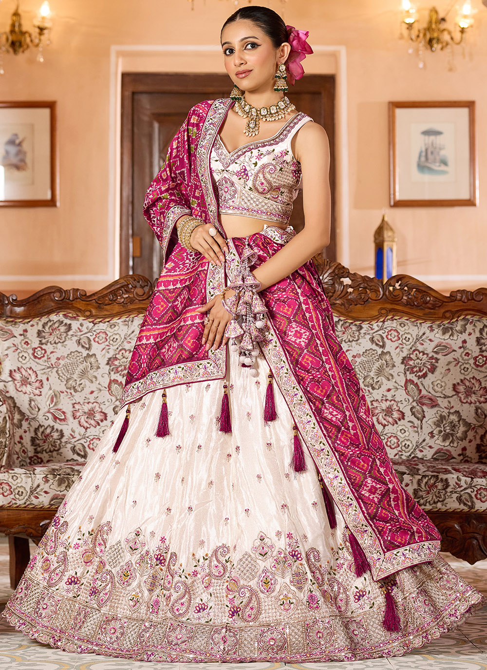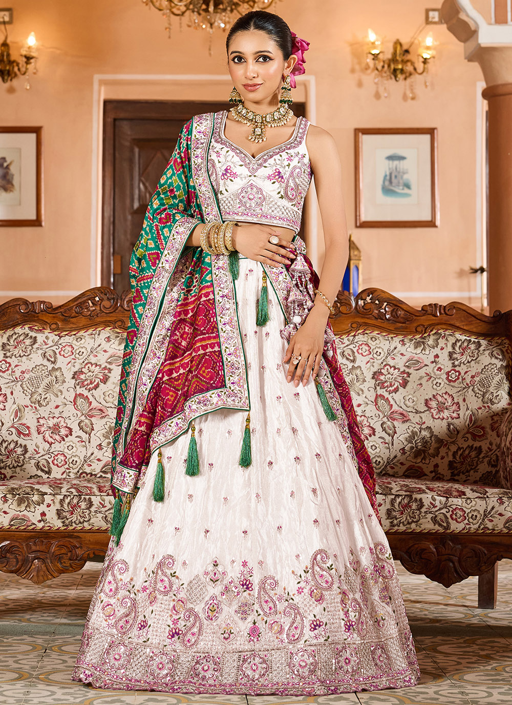 Off White Silk Sequins Embroidered Trendy Lehenga Choli