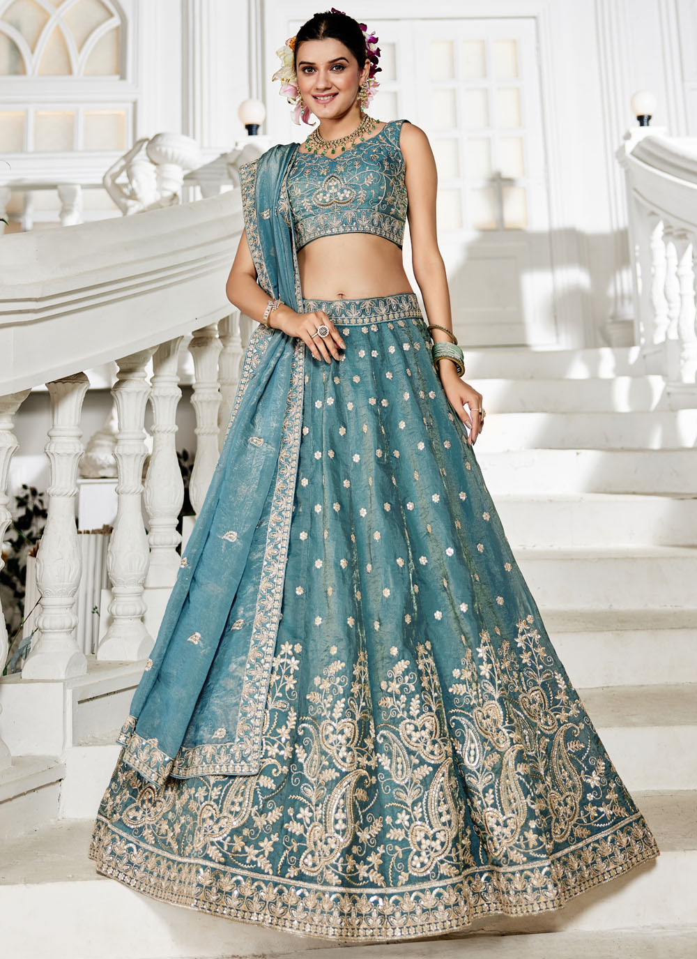 Blue Zari Embroidered Art Silk Designer Lehenga Choli
