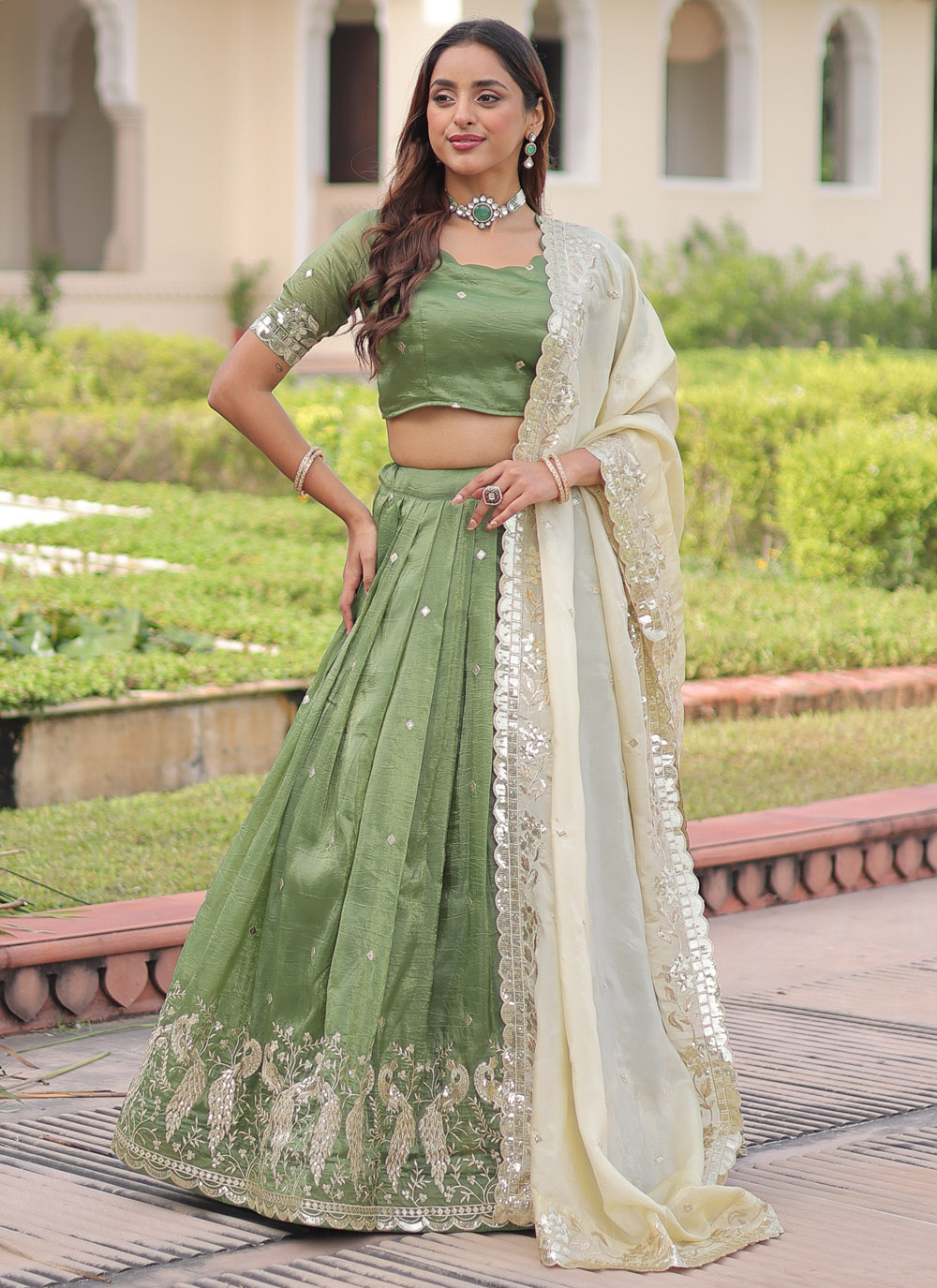 Georgette Sequins Embroidered Green Designer Lehenga Choli