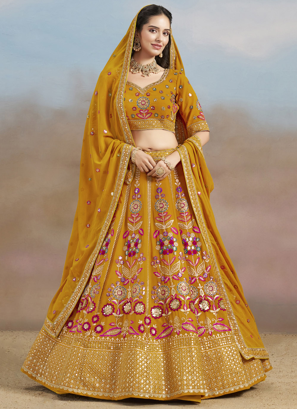 Yellow Silk Printed and Embroidered Trendy Lehenga Choli
