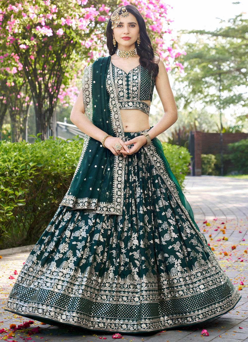 Rama Organza Zari Sequins Embroidered Trendy Lehenga Choli