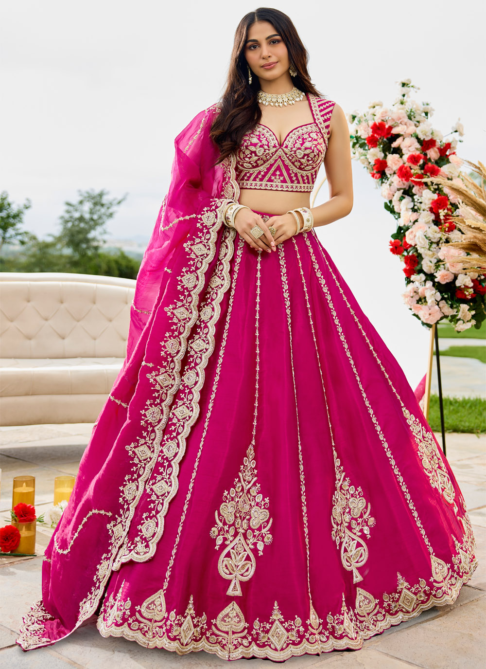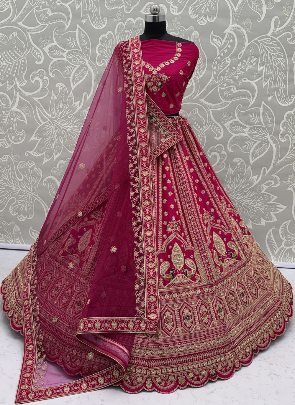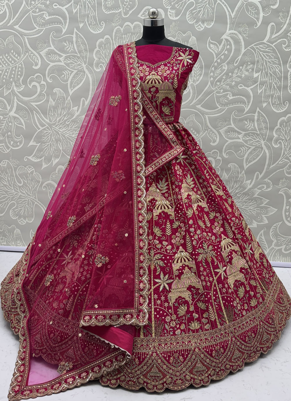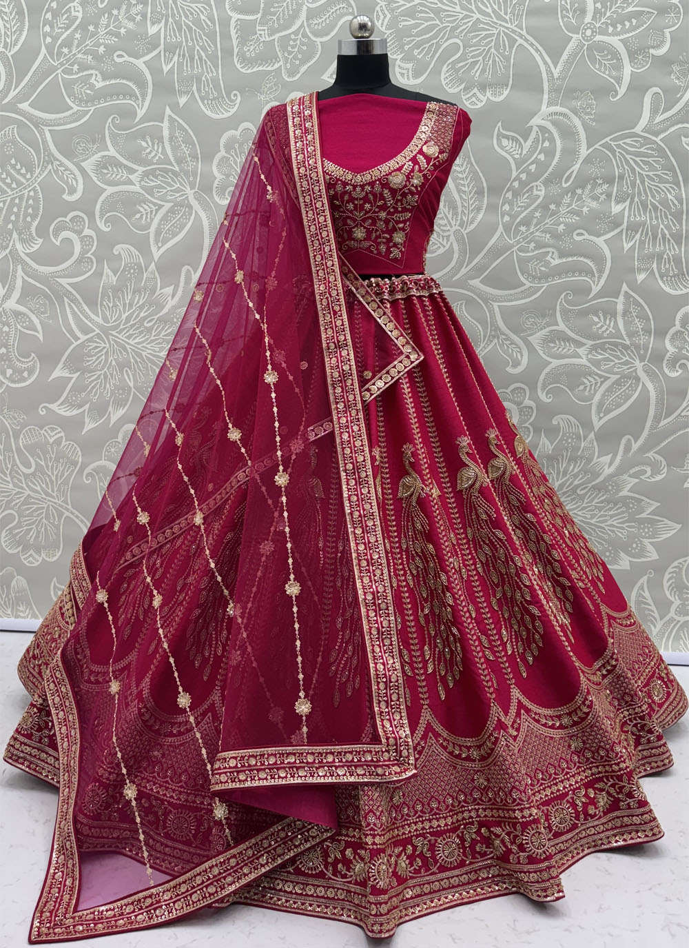 Rani Silk Dori Sequins Thread Embroidered Wedding Lehenga Choli