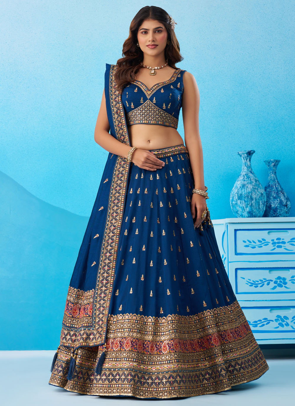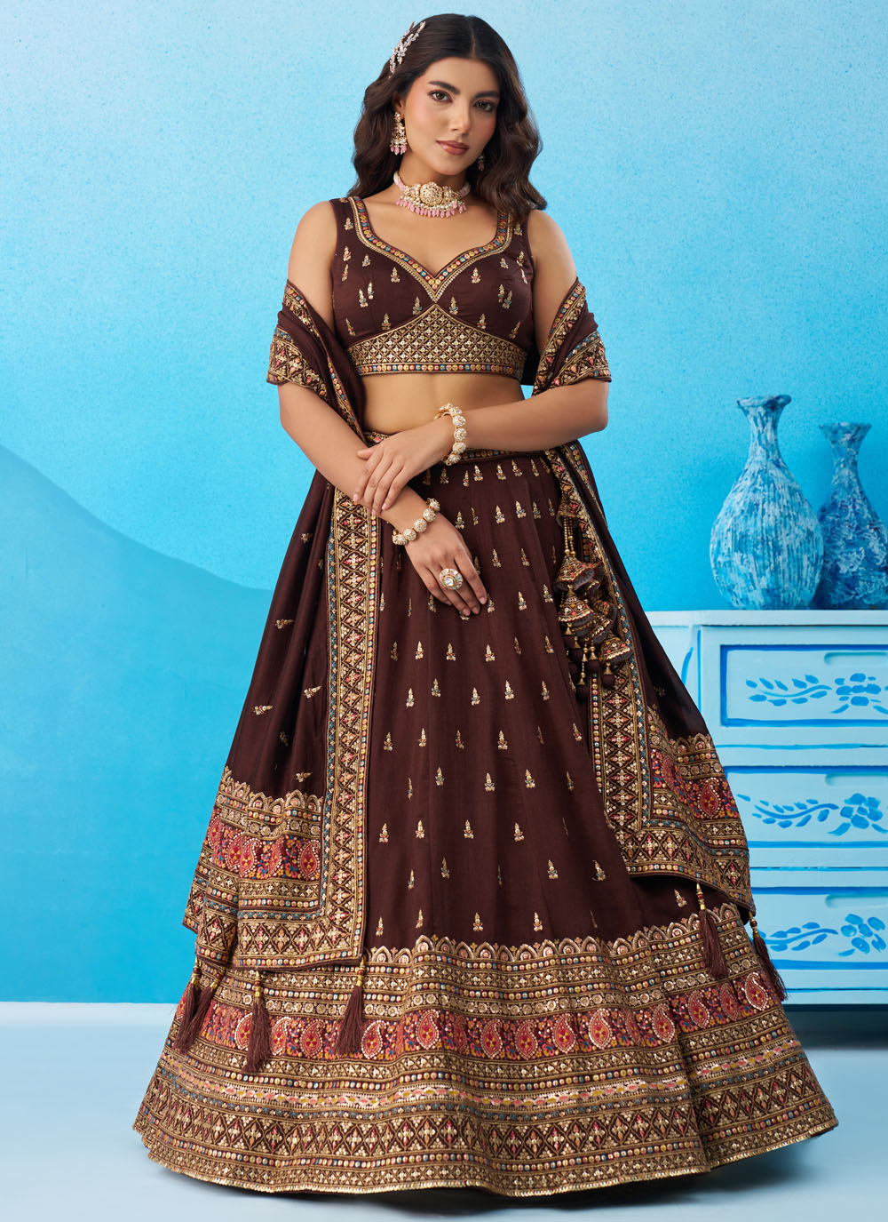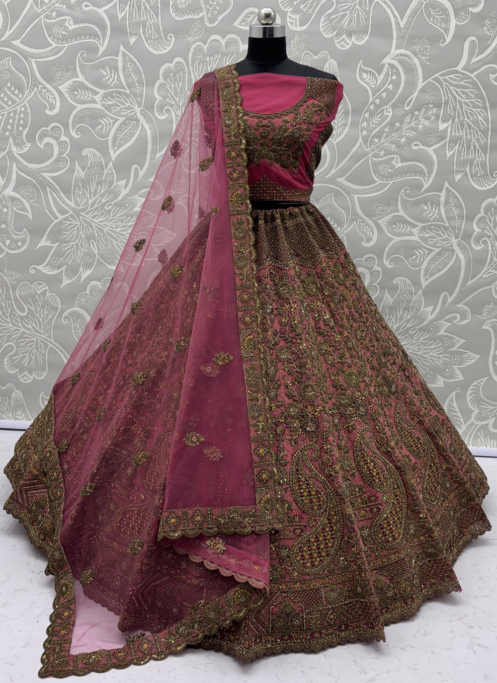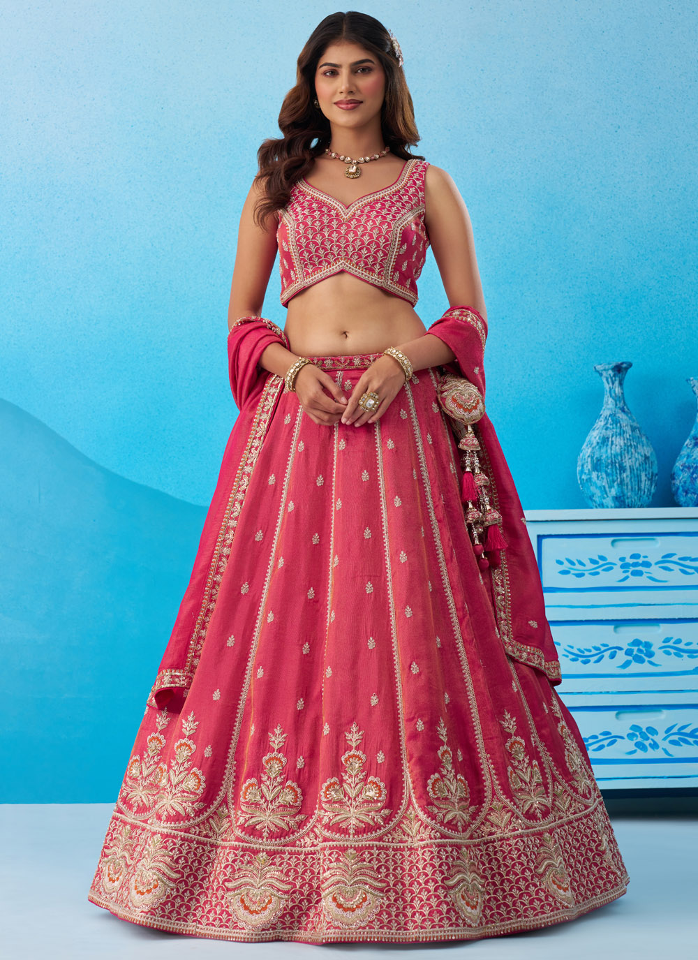 Rani Silk Dori Sequins Thread Embroidered Wedding Lehenga Choli