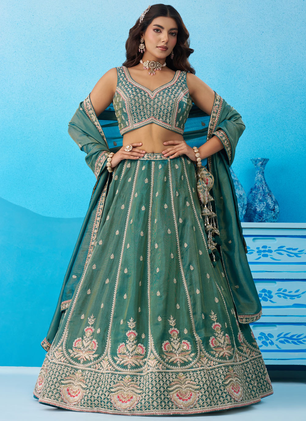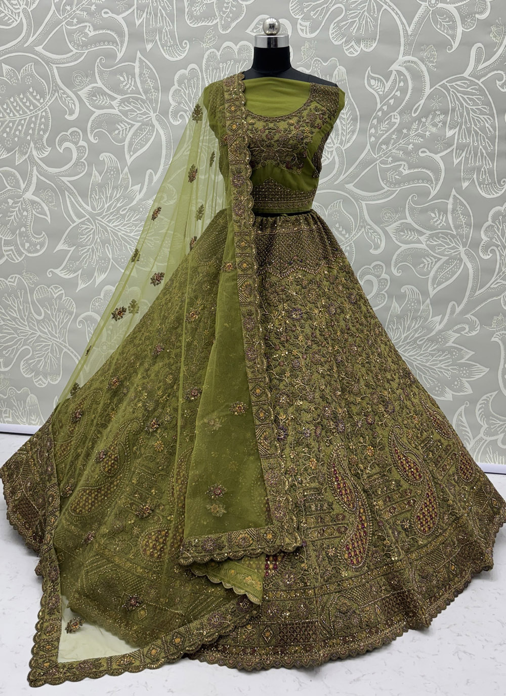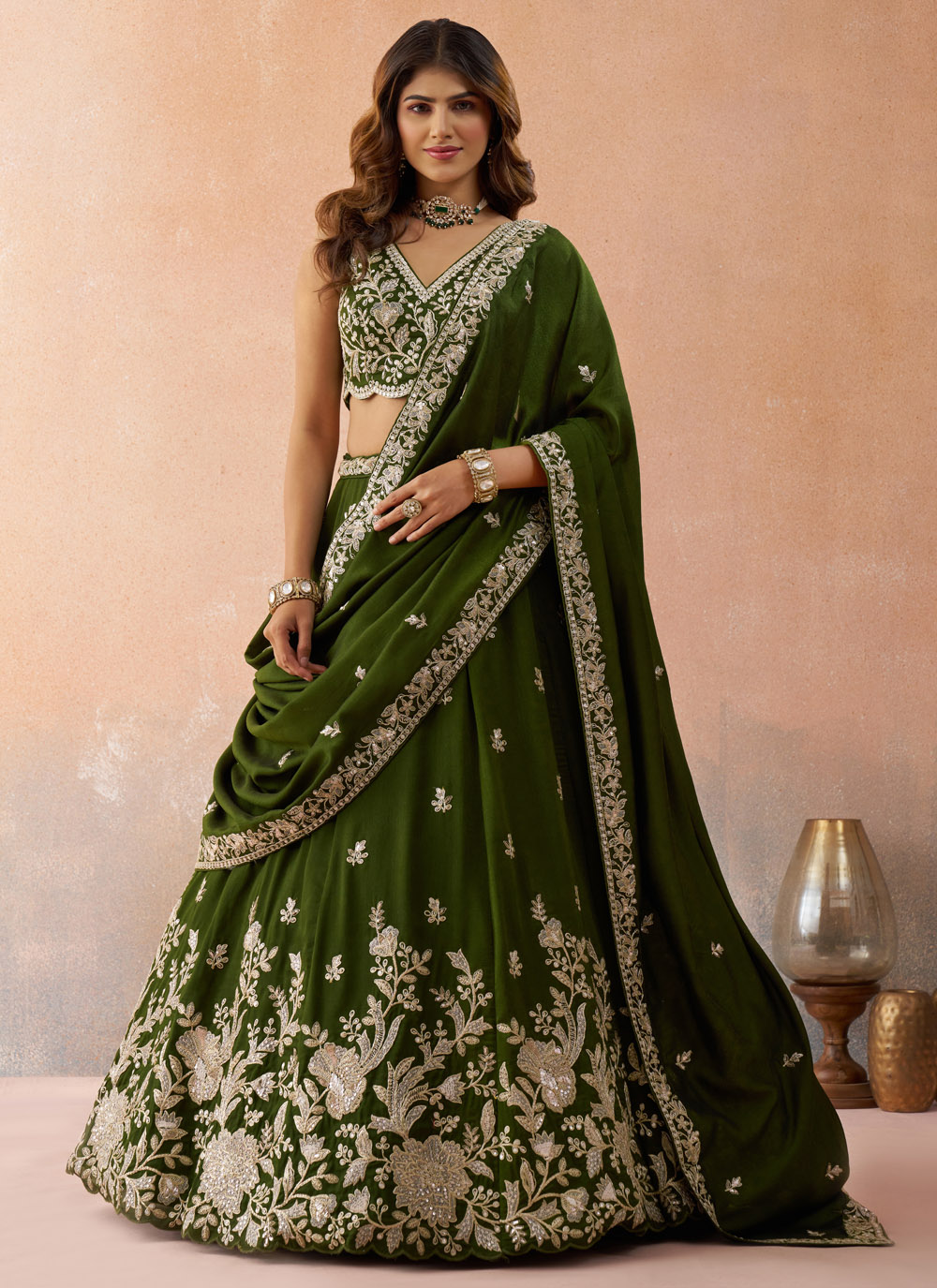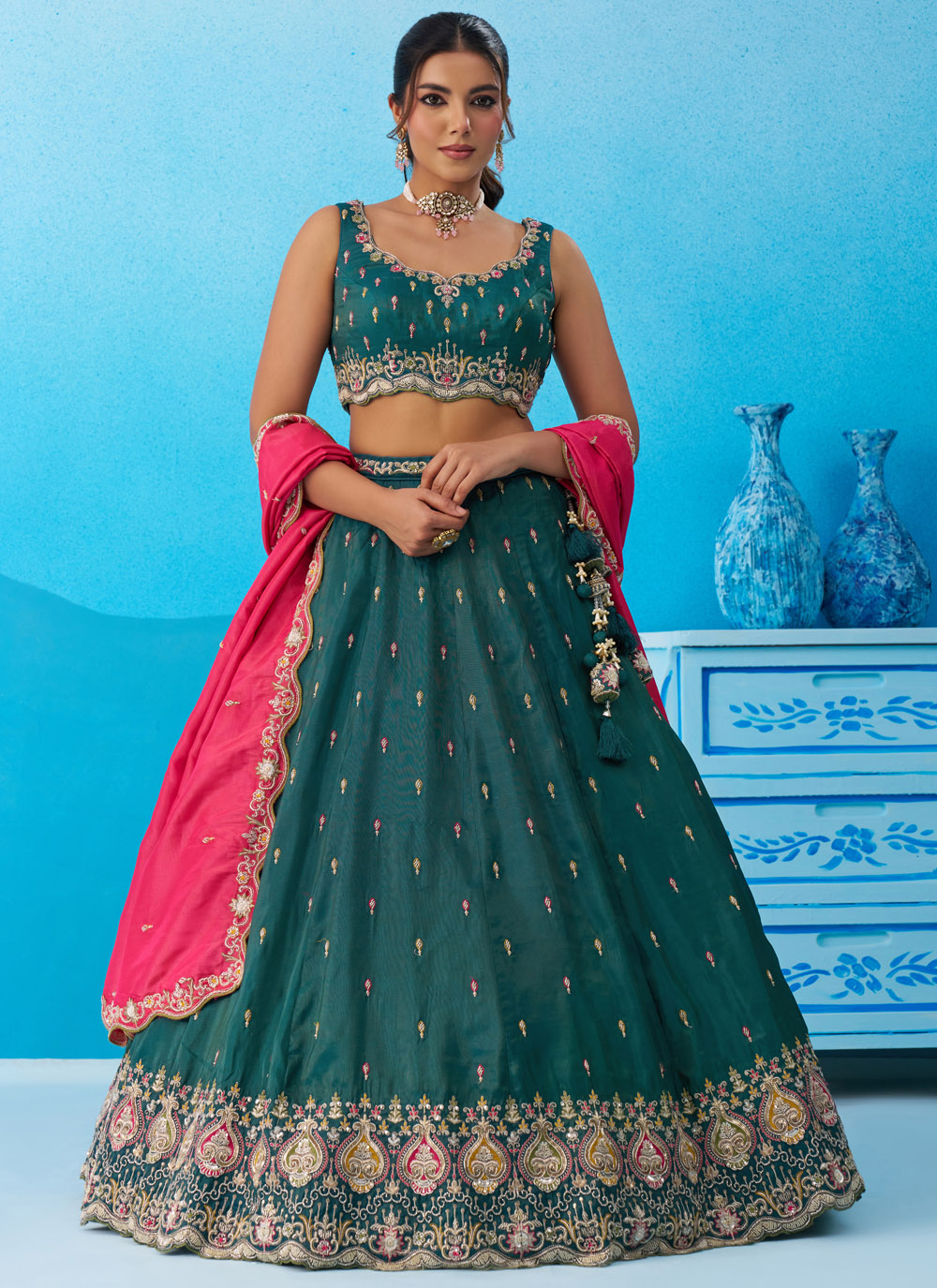 Rani Silk Dori Sequins Thread Embroidered Wedding Lehenga Choli