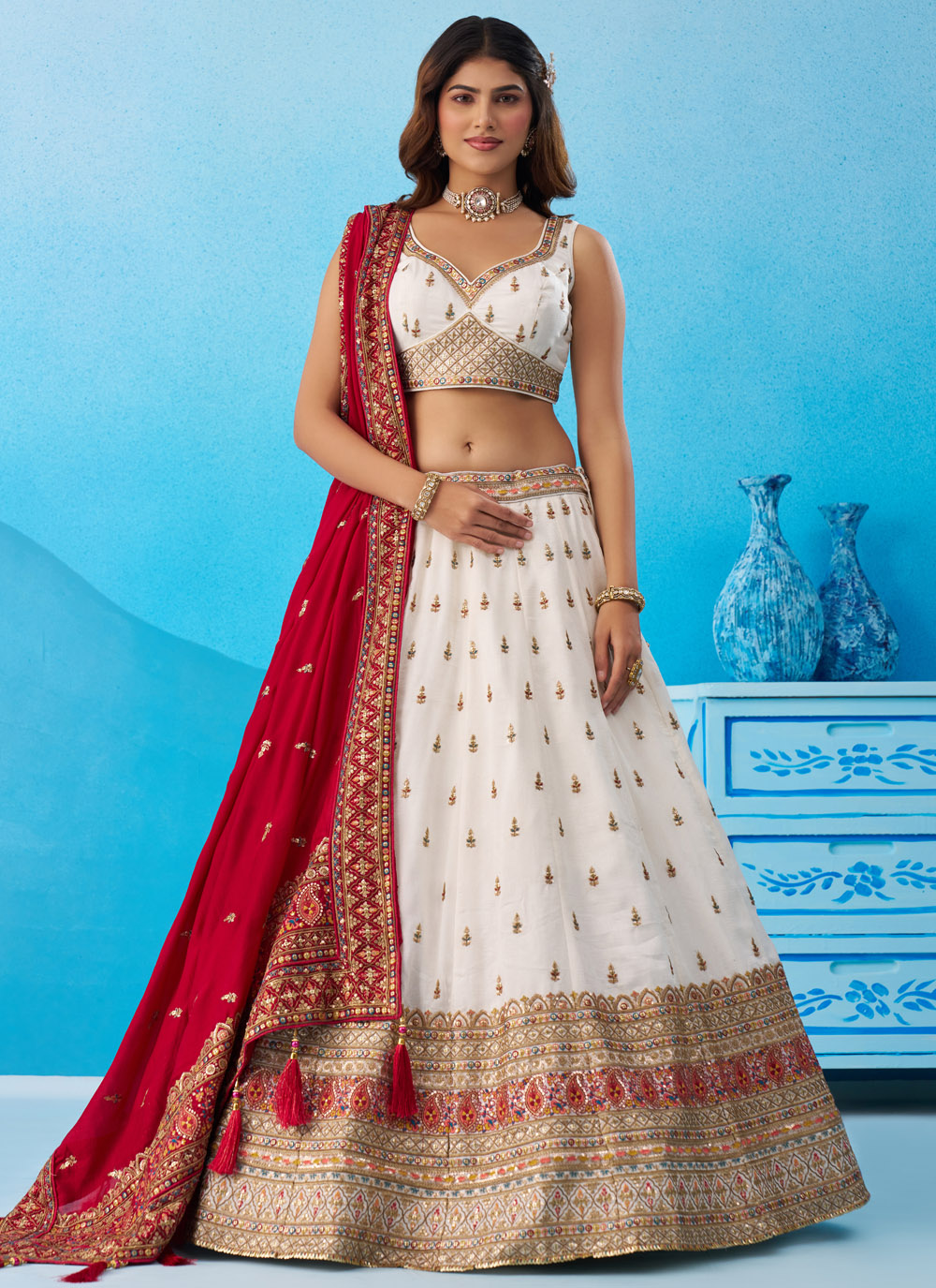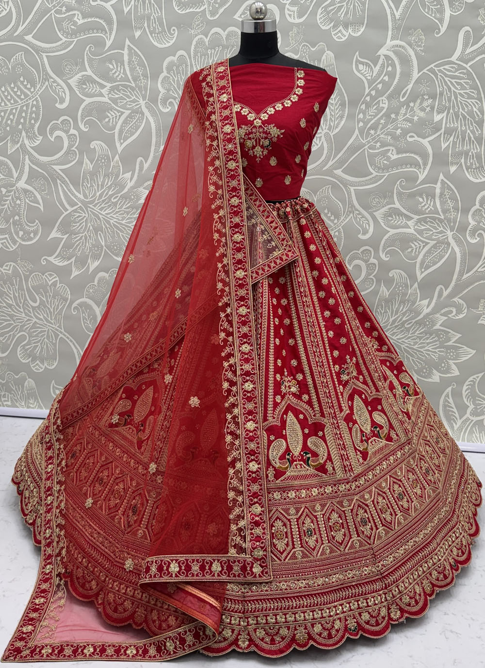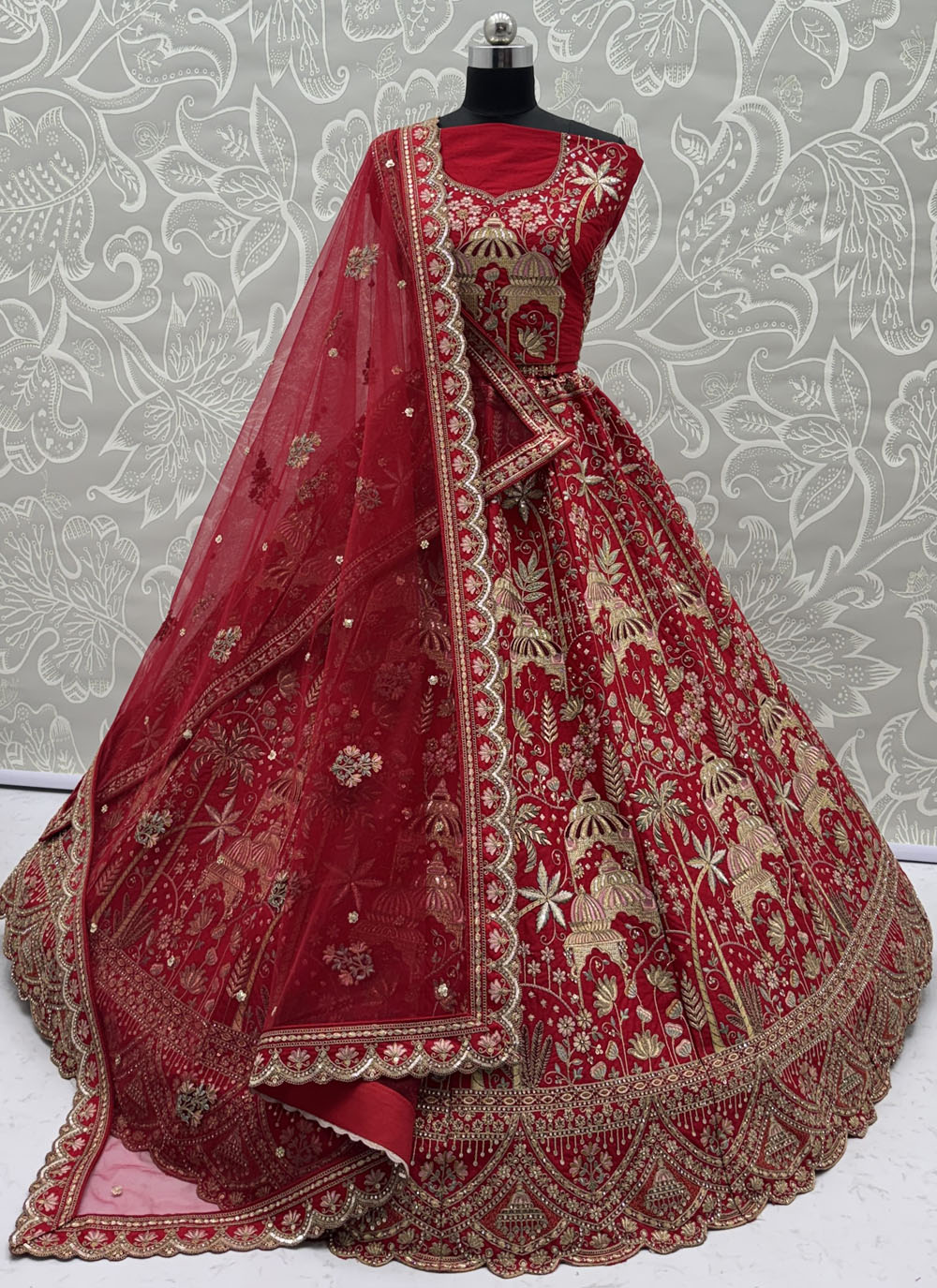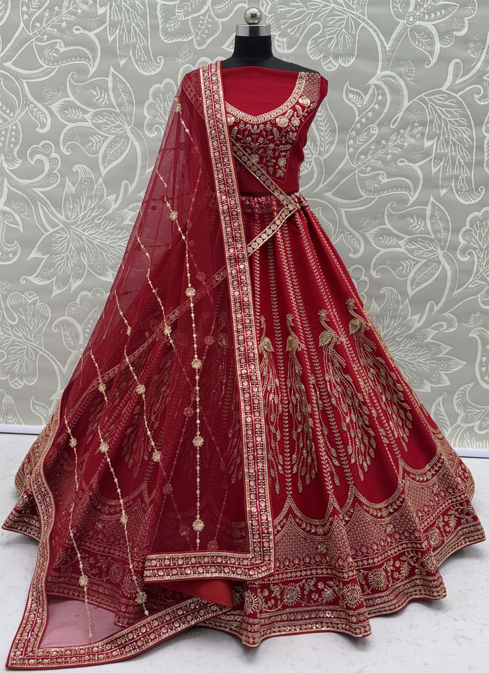 Silk Red Sequins Thread Zari Lace Embroidered Lehenga Choli for Wedding