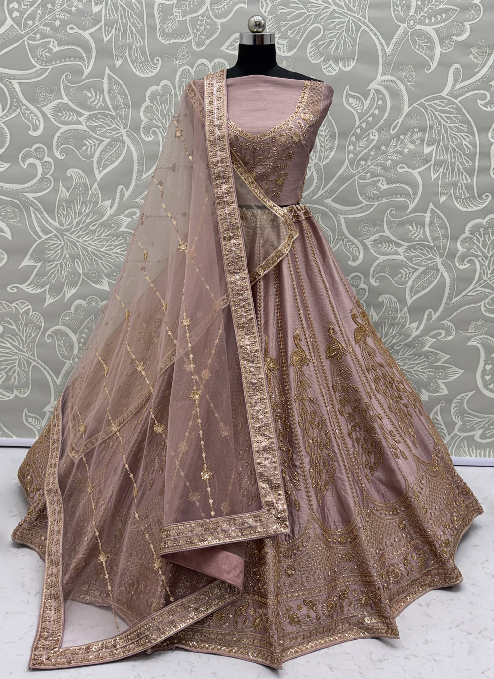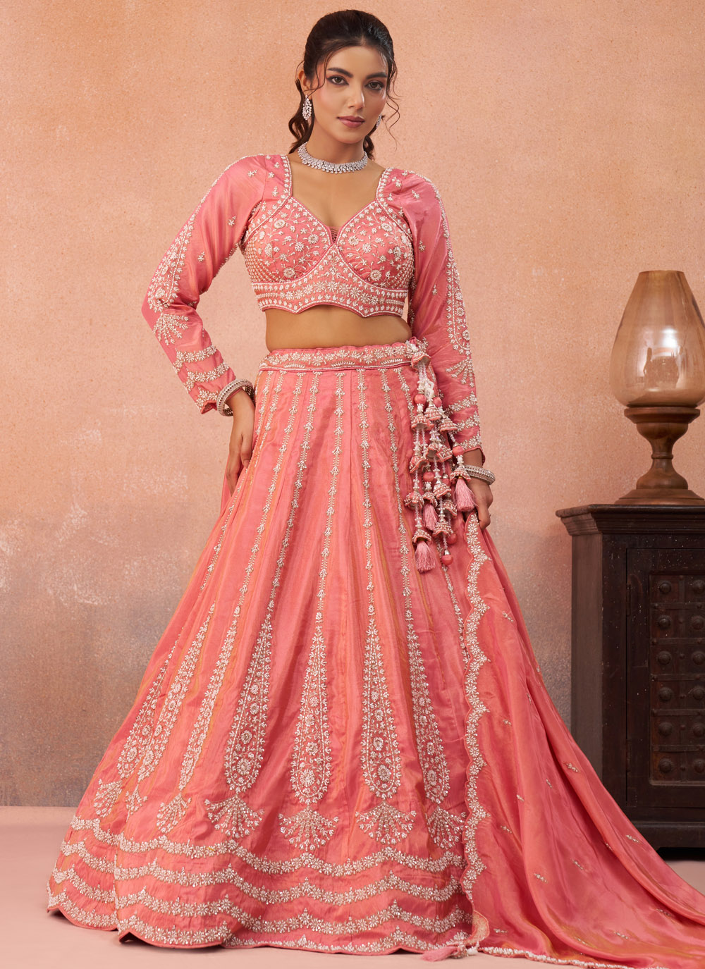 Pink Silk Crystal Zari Dori Sequins Embroidered Lehenga Choli for Reception