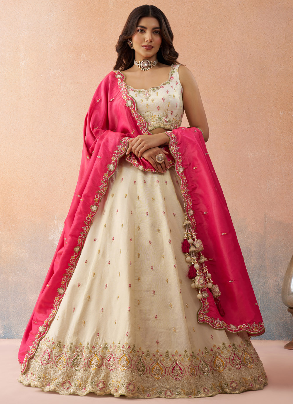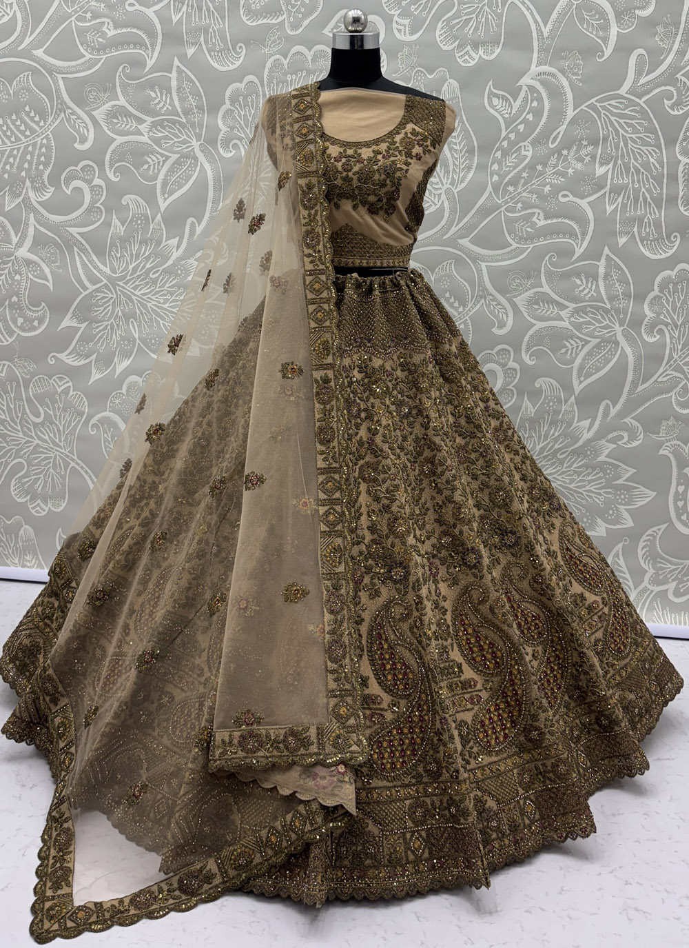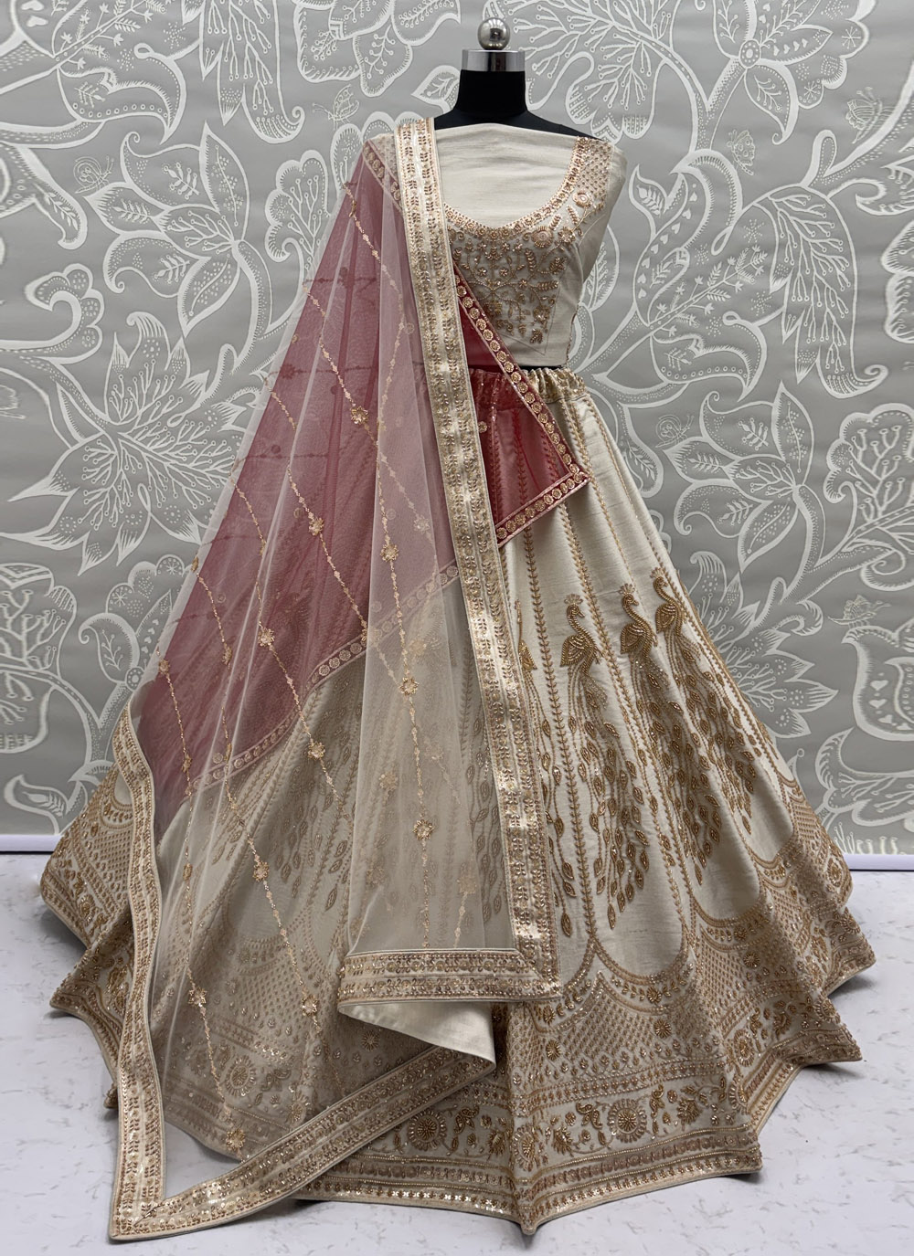 Beige Embroidered Dori Zari Zarkan Sequins Work Designer Lehenga Choli