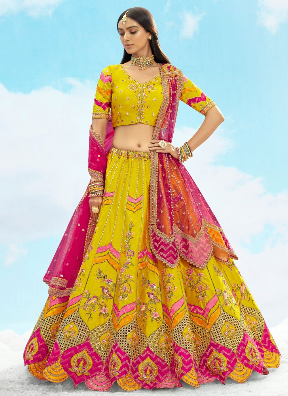 Silk Sequins Yellow Wedding Lehenga Choli