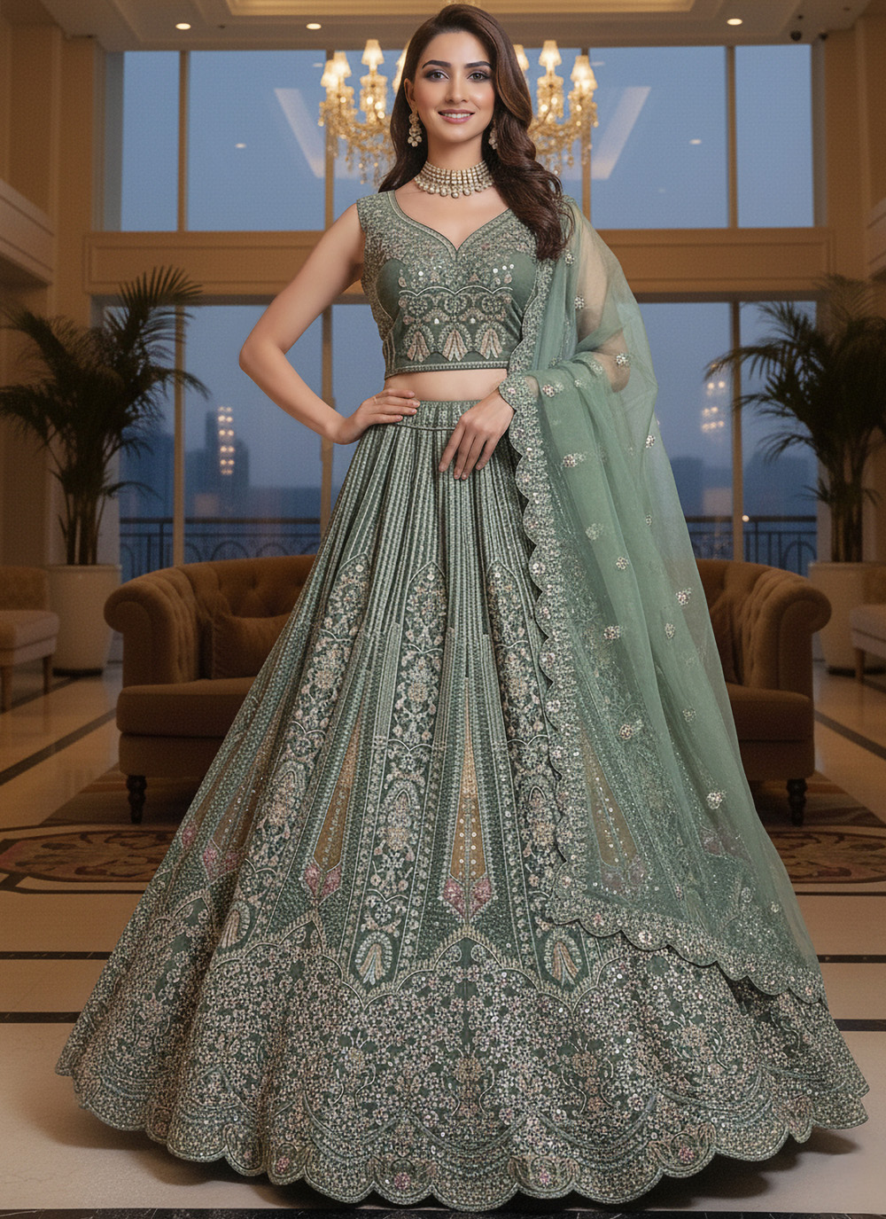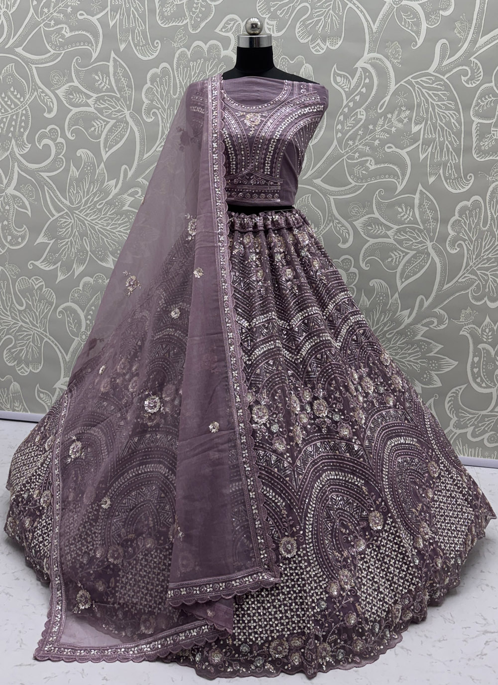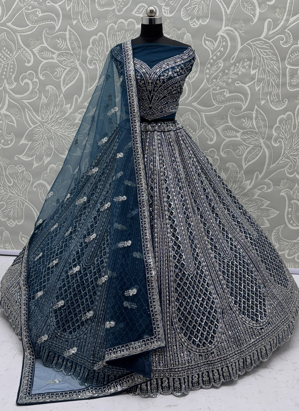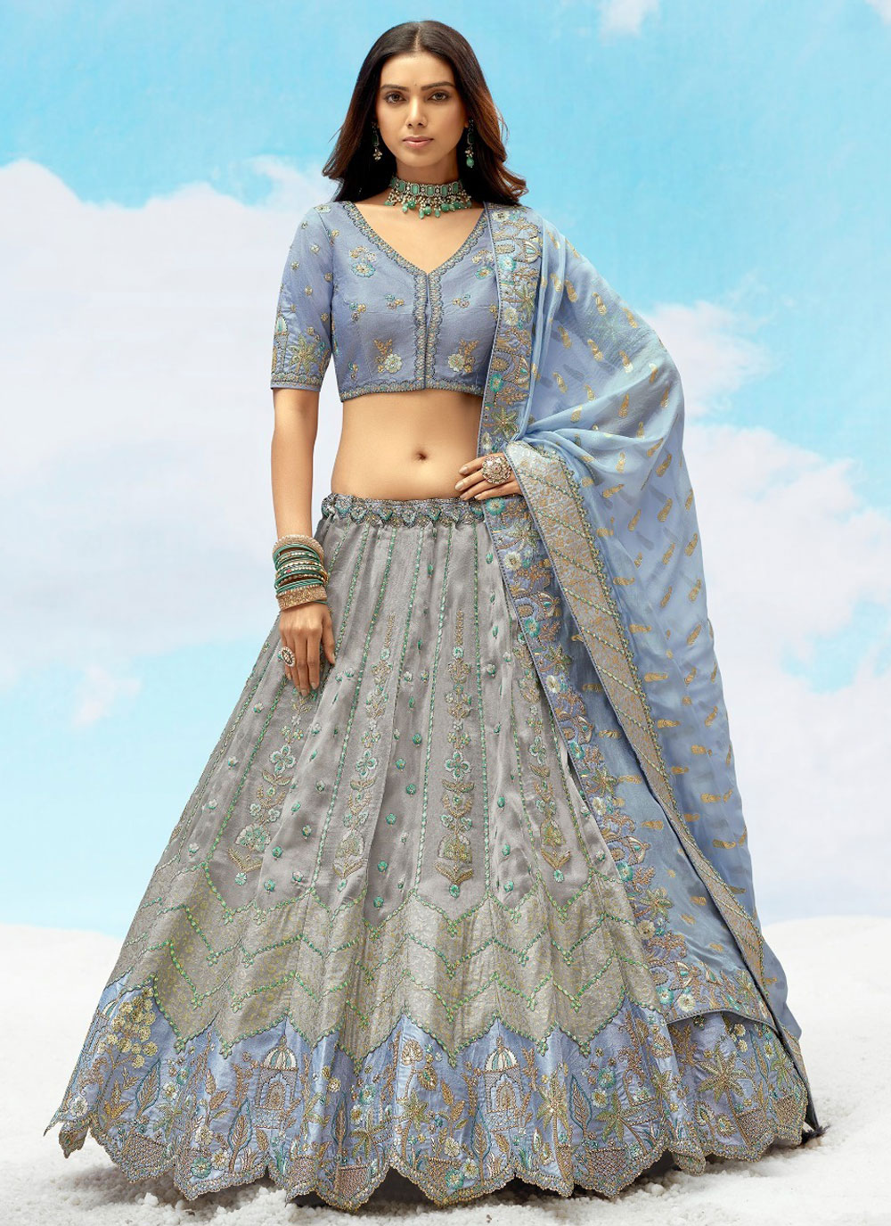 Grey Silk Sequins Reception A Line Lehenga Choli