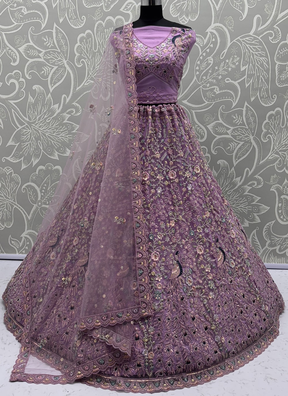 Purple Net Dori Thread Zarkan and Diamond Work Designer Lehenga Choli