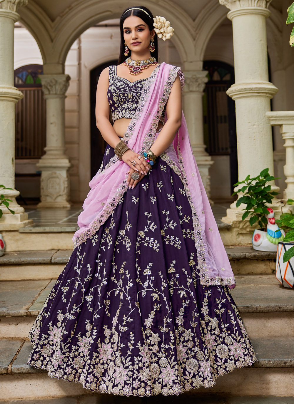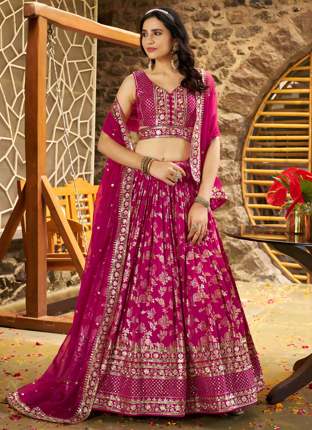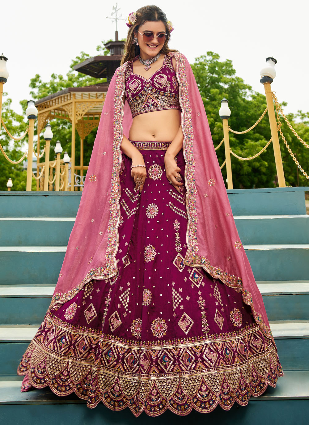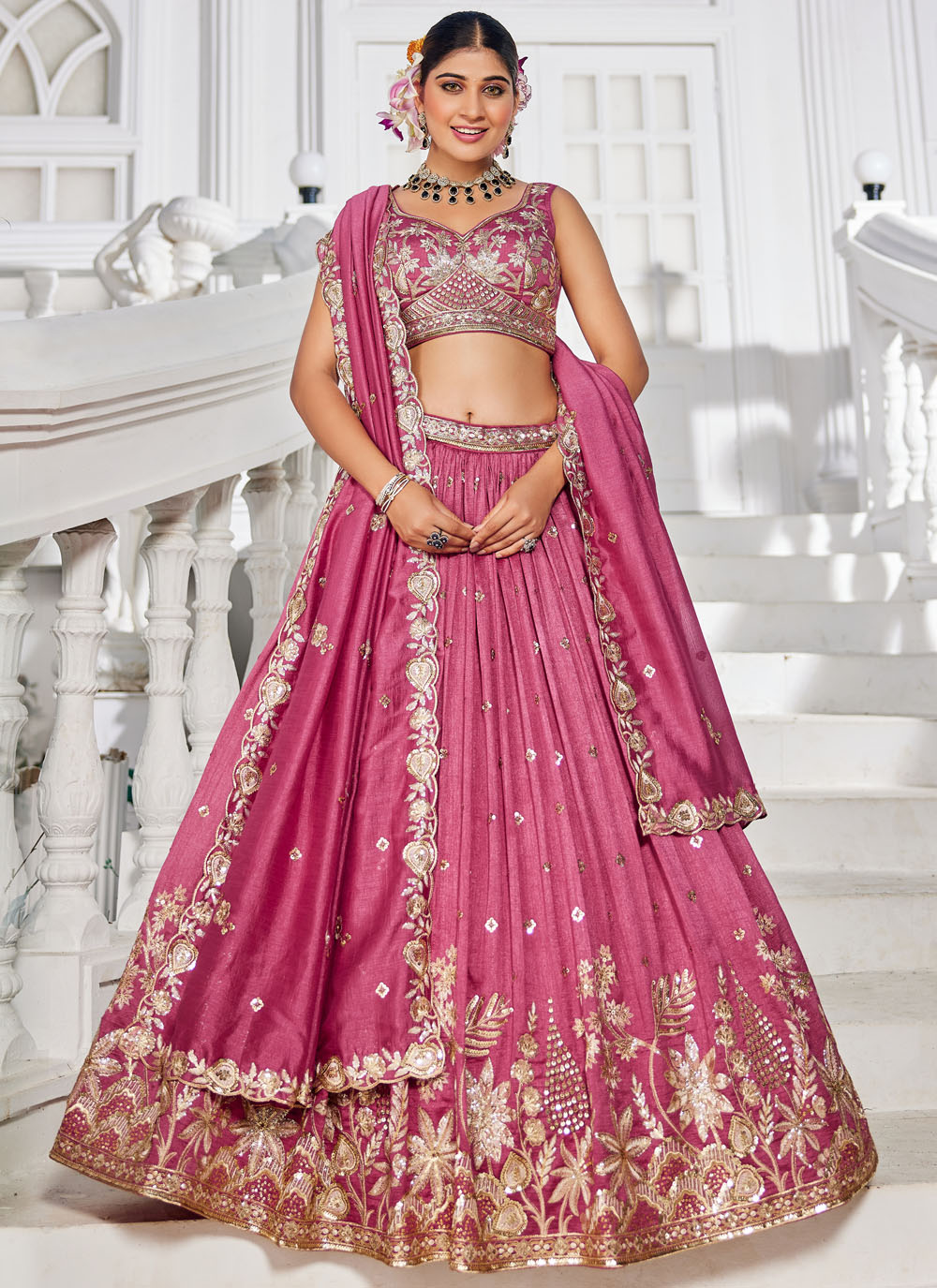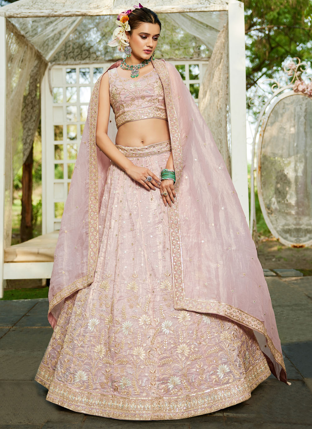Pink Banarasi Silk Zarkan Resham Embroidered Lehenga Choli