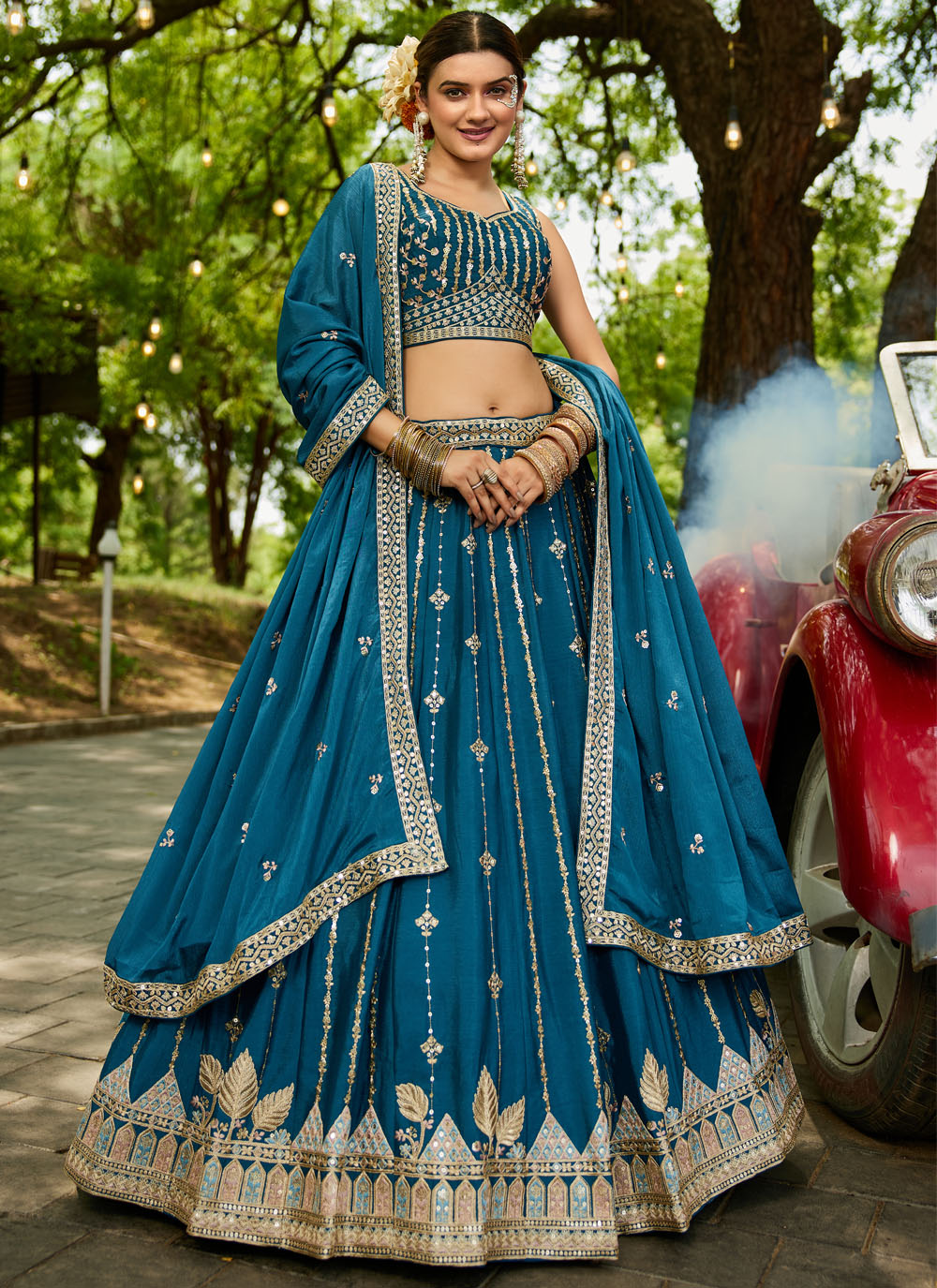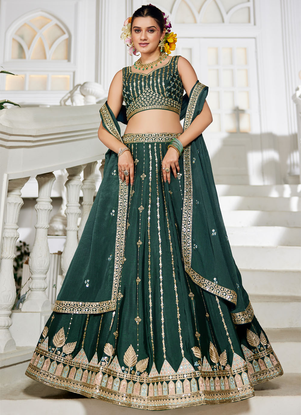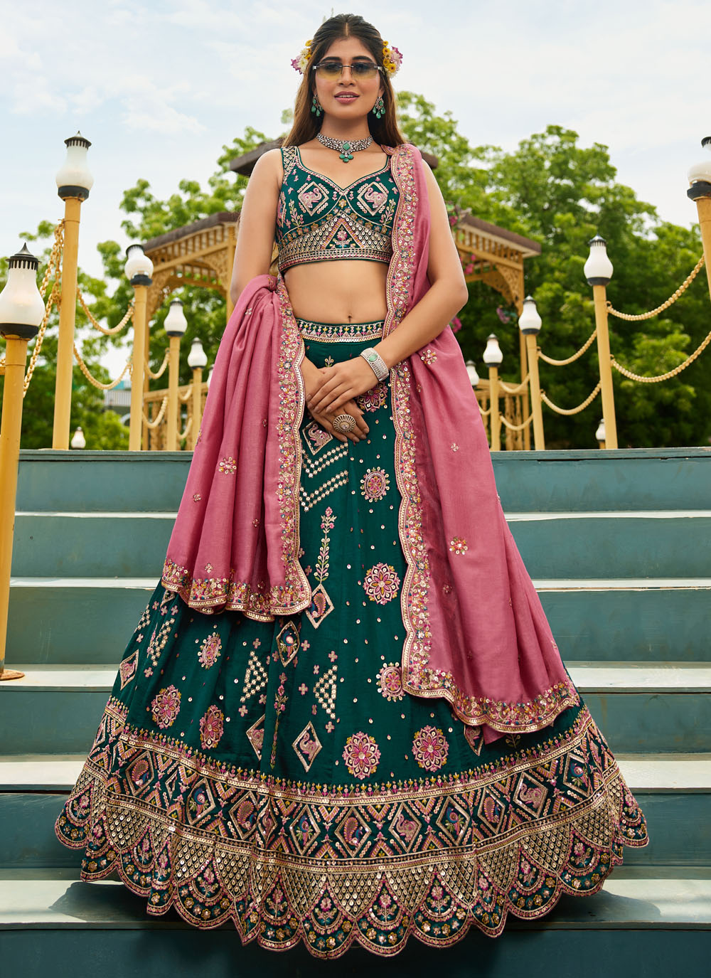 Green and Pink Silk Embroidered Sequins Mirror Work Lehenga Choli
