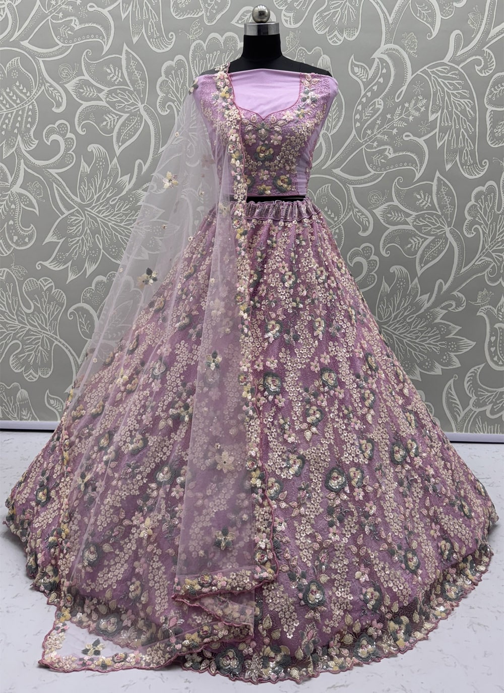 Chiffon Sequins Zari Embroidered Purple Lehenga Choli for Sangeet