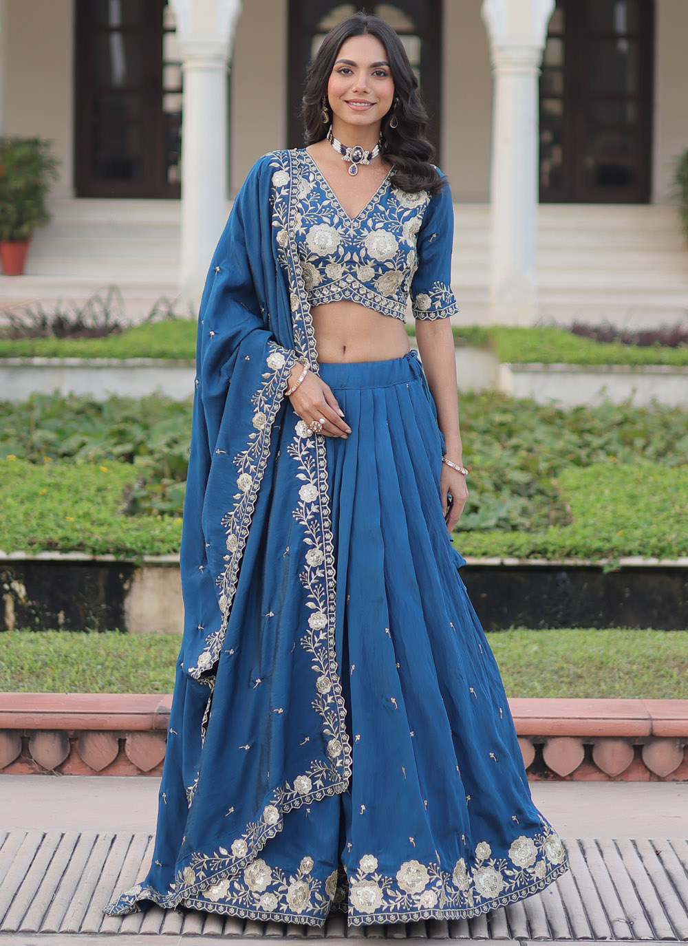 Blue Silk Sequins Zari Embroidered Lehenga Choli