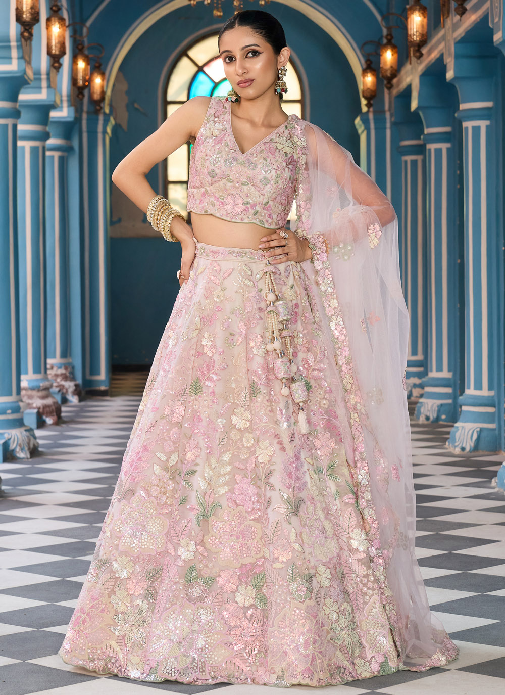 Tissue Embroidered Reception Trendy Pink Lehenga Choli
