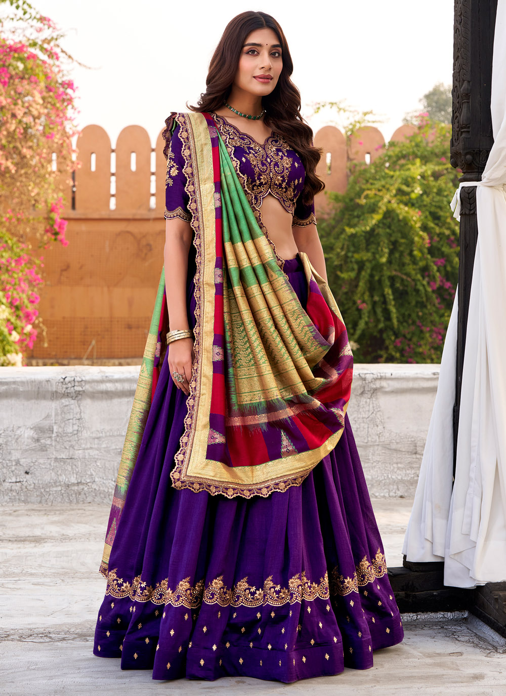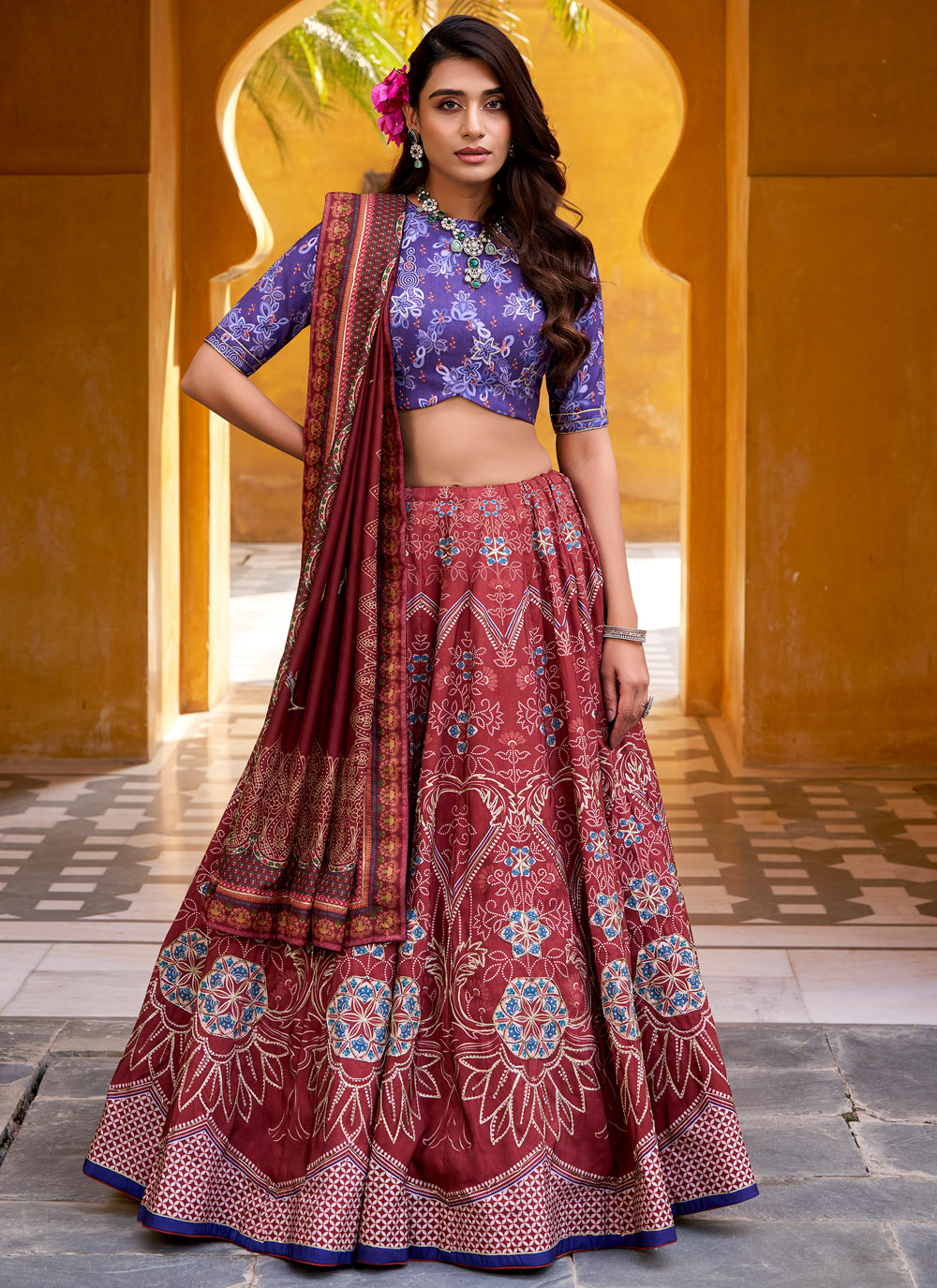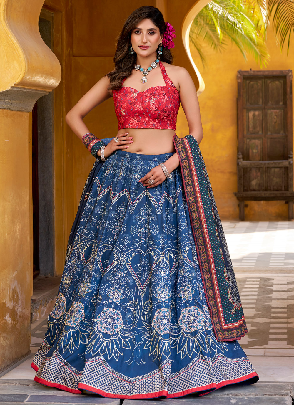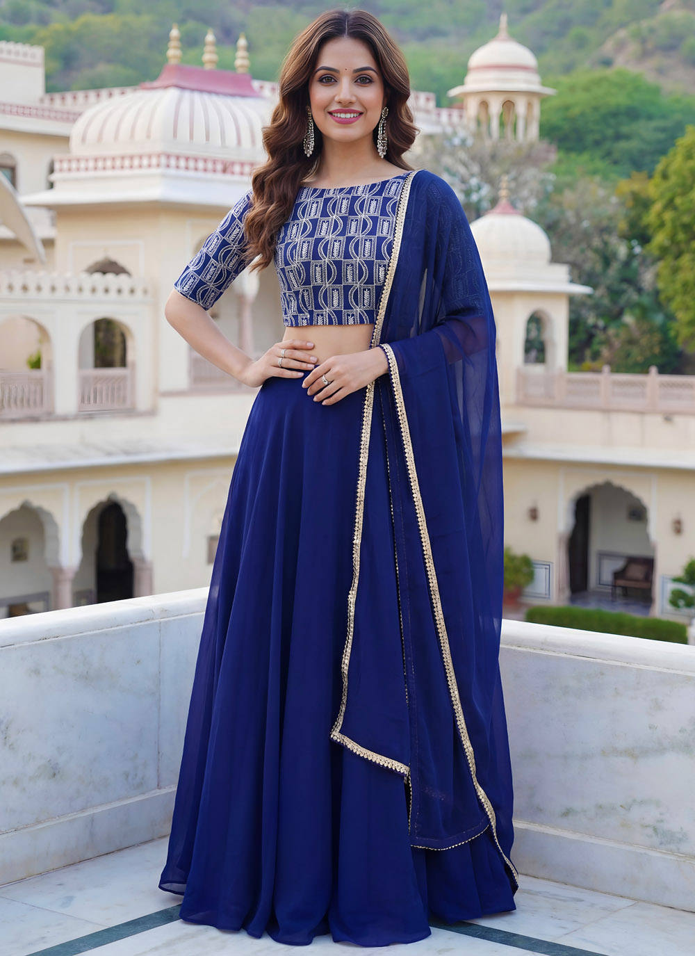 Blue Silk Plain Work Trendy Lehenga Choli for Ceremonial