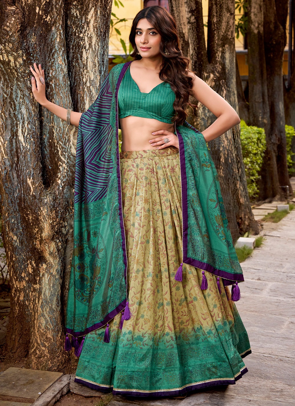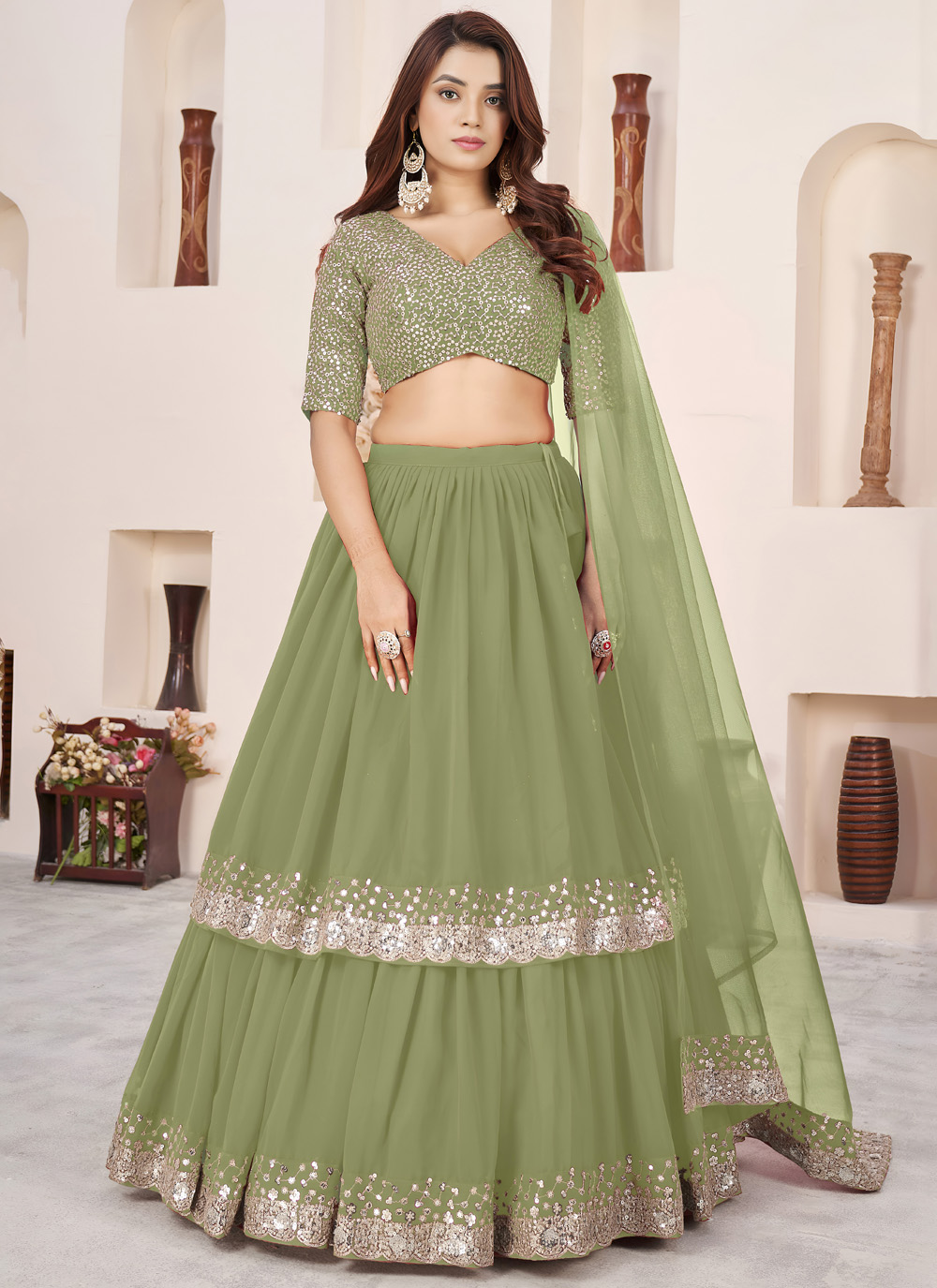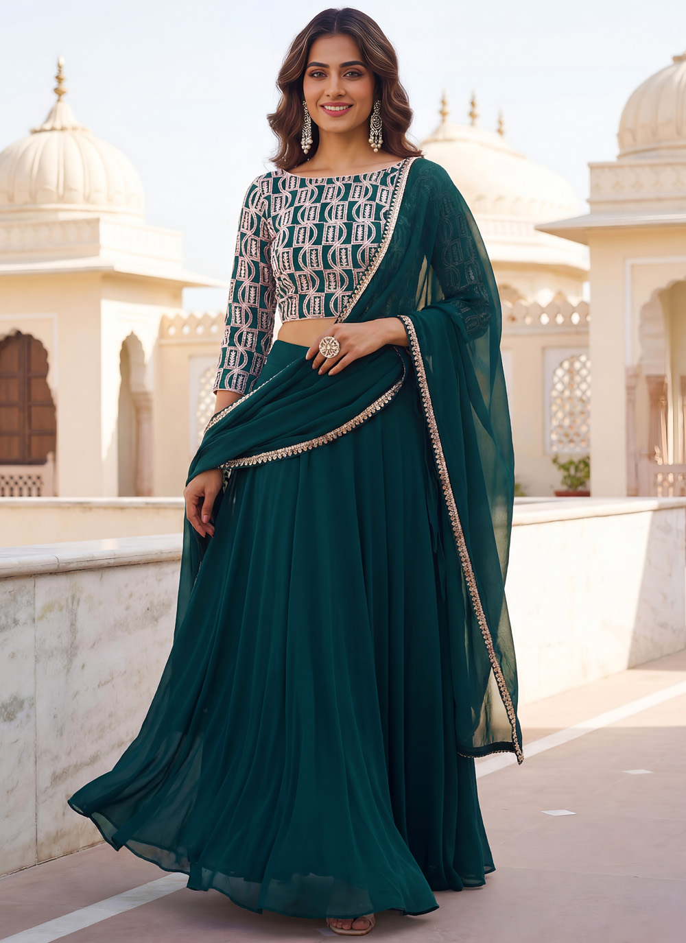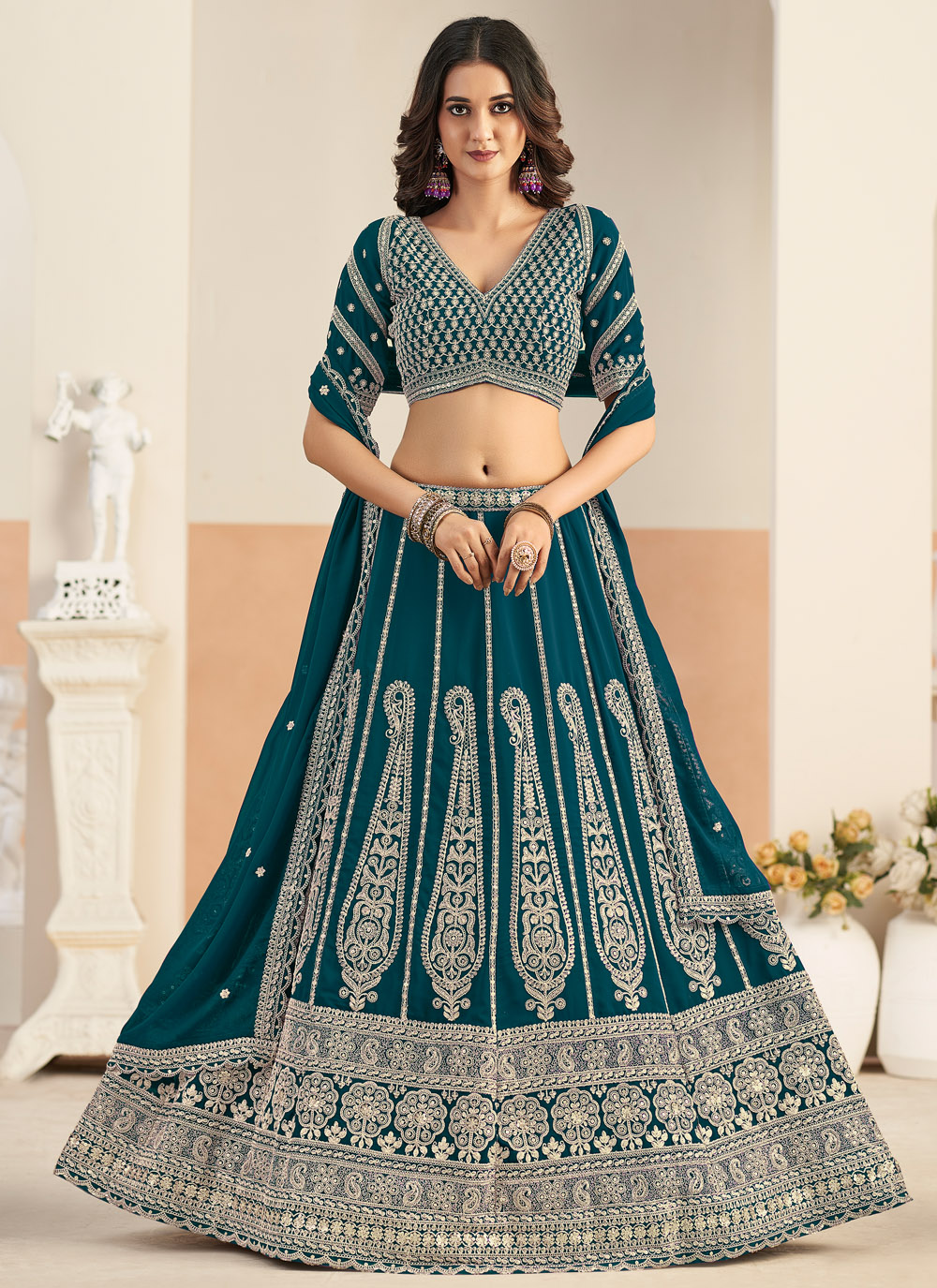Sea Green Fancy Fabric Beads Thread Embroidered Lehenga Choli