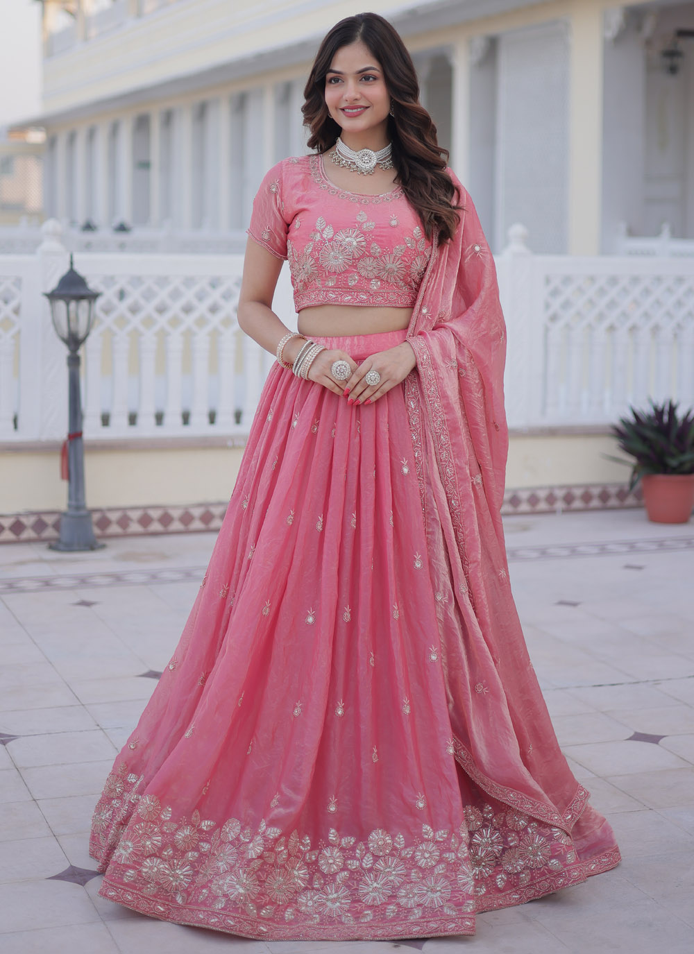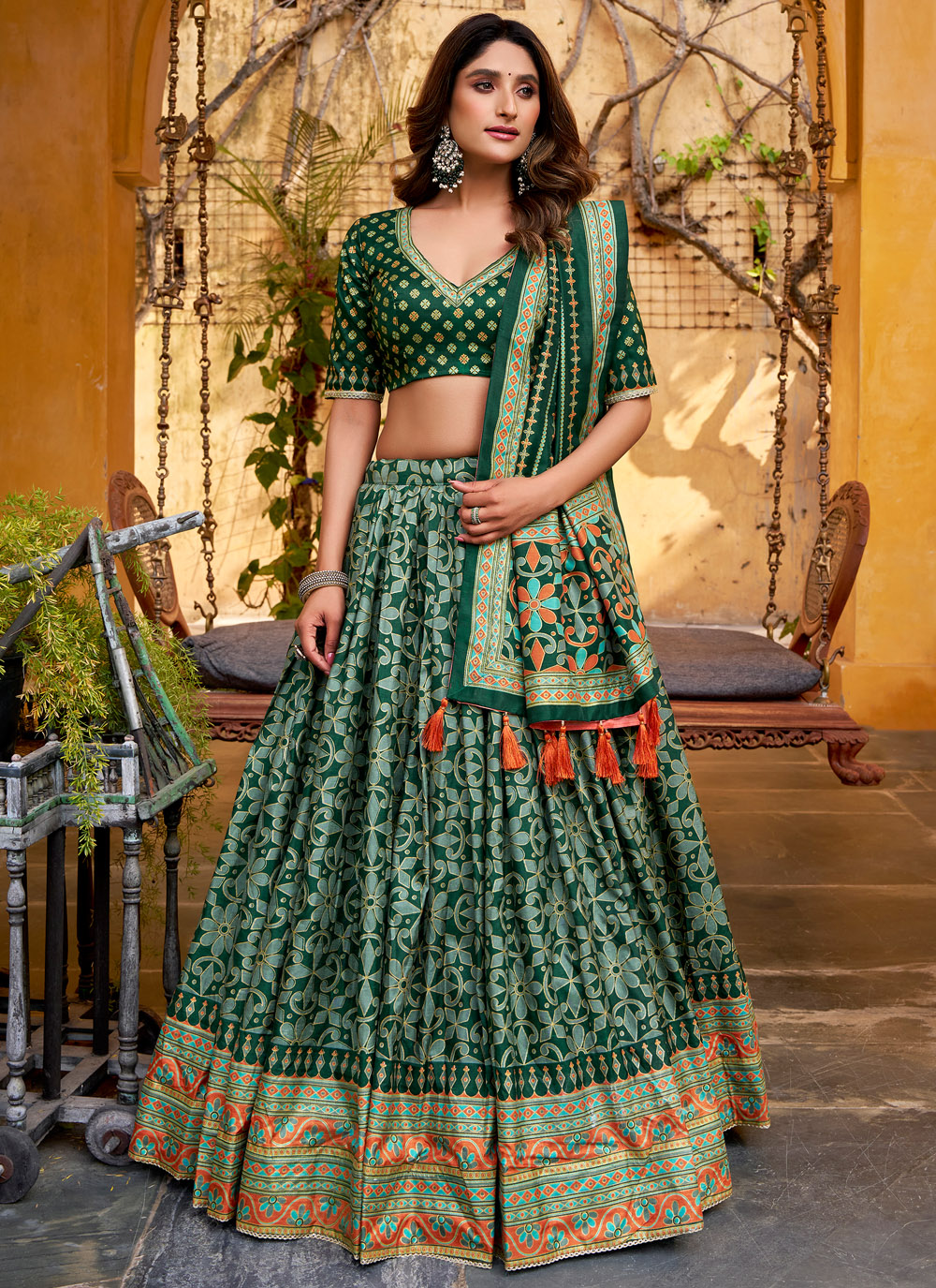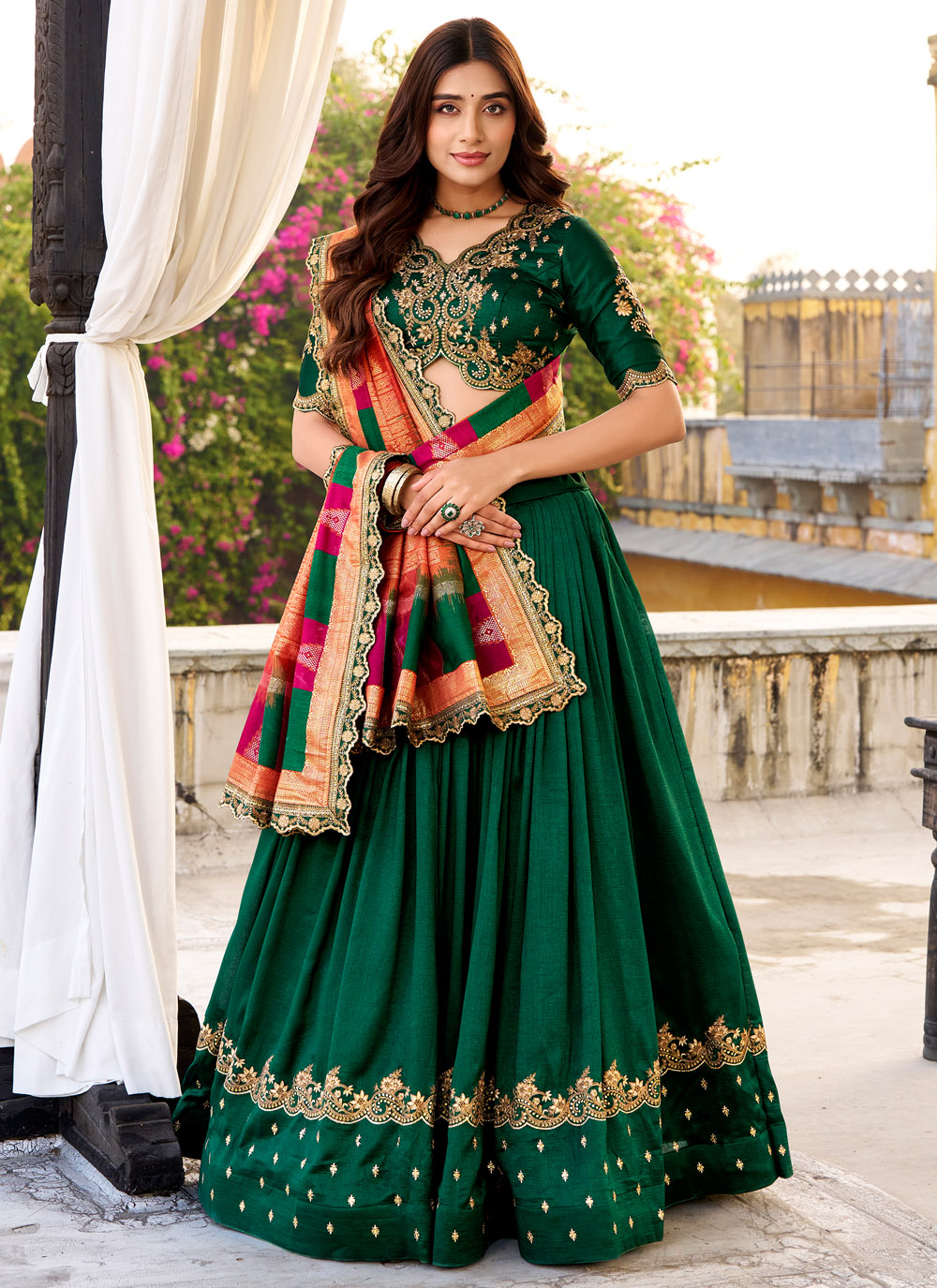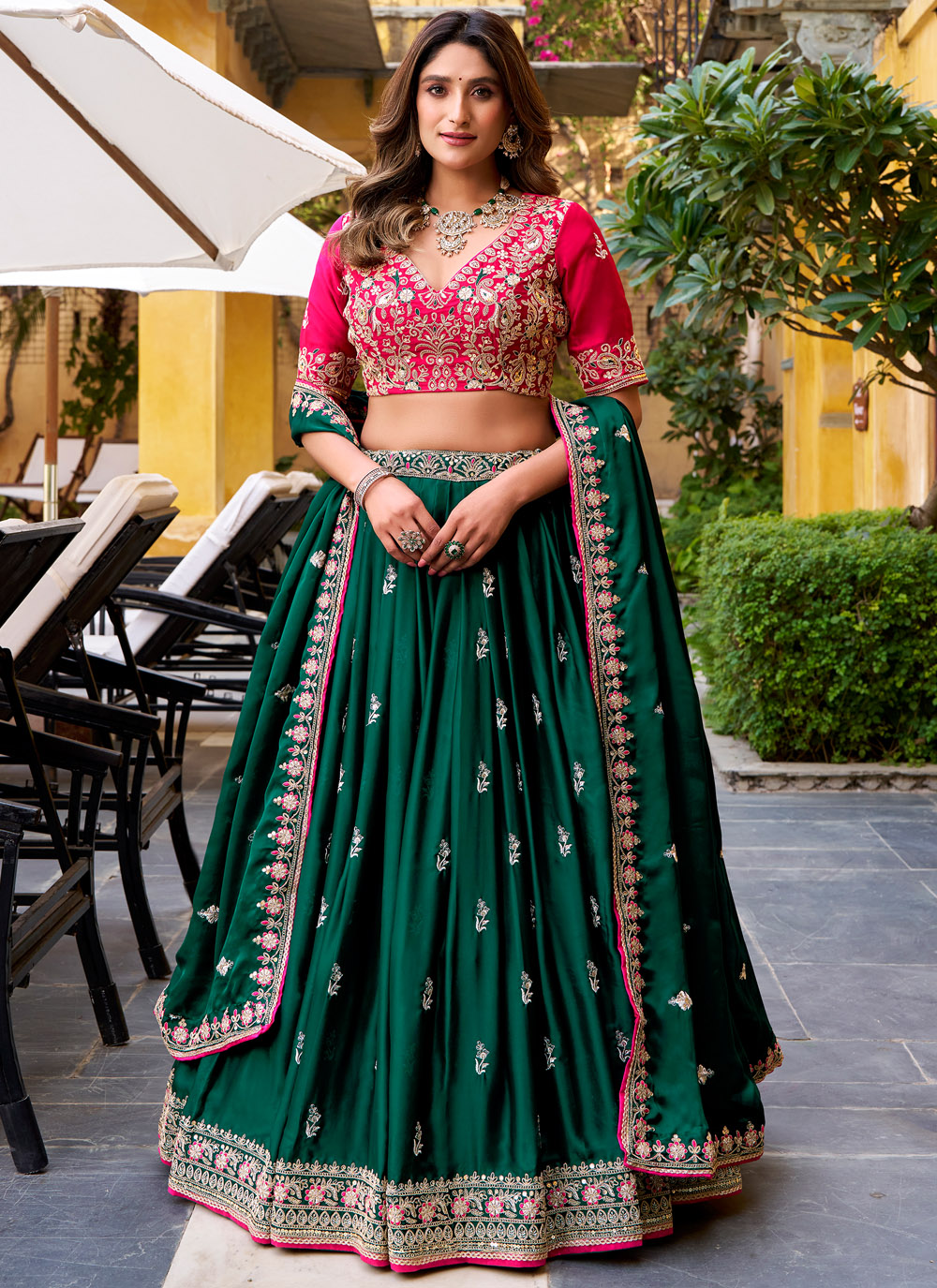 Sea Green Fancy Fabric Beads Thread Embroidered Lehenga Choli