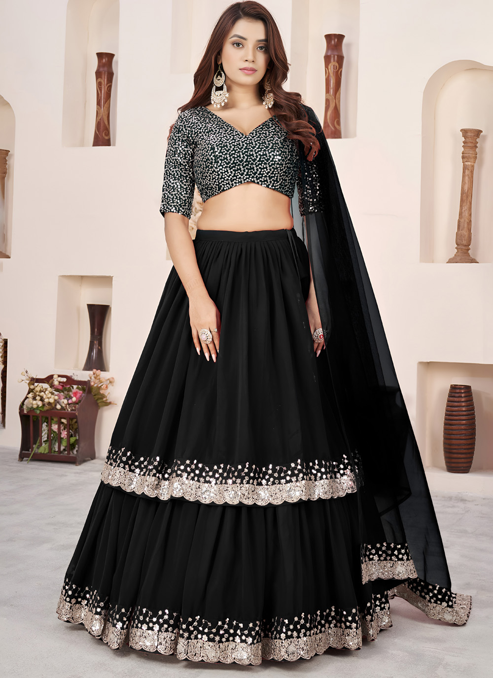Black Fandy Sequins Thread Embroidered Trendy Lehenga Choli