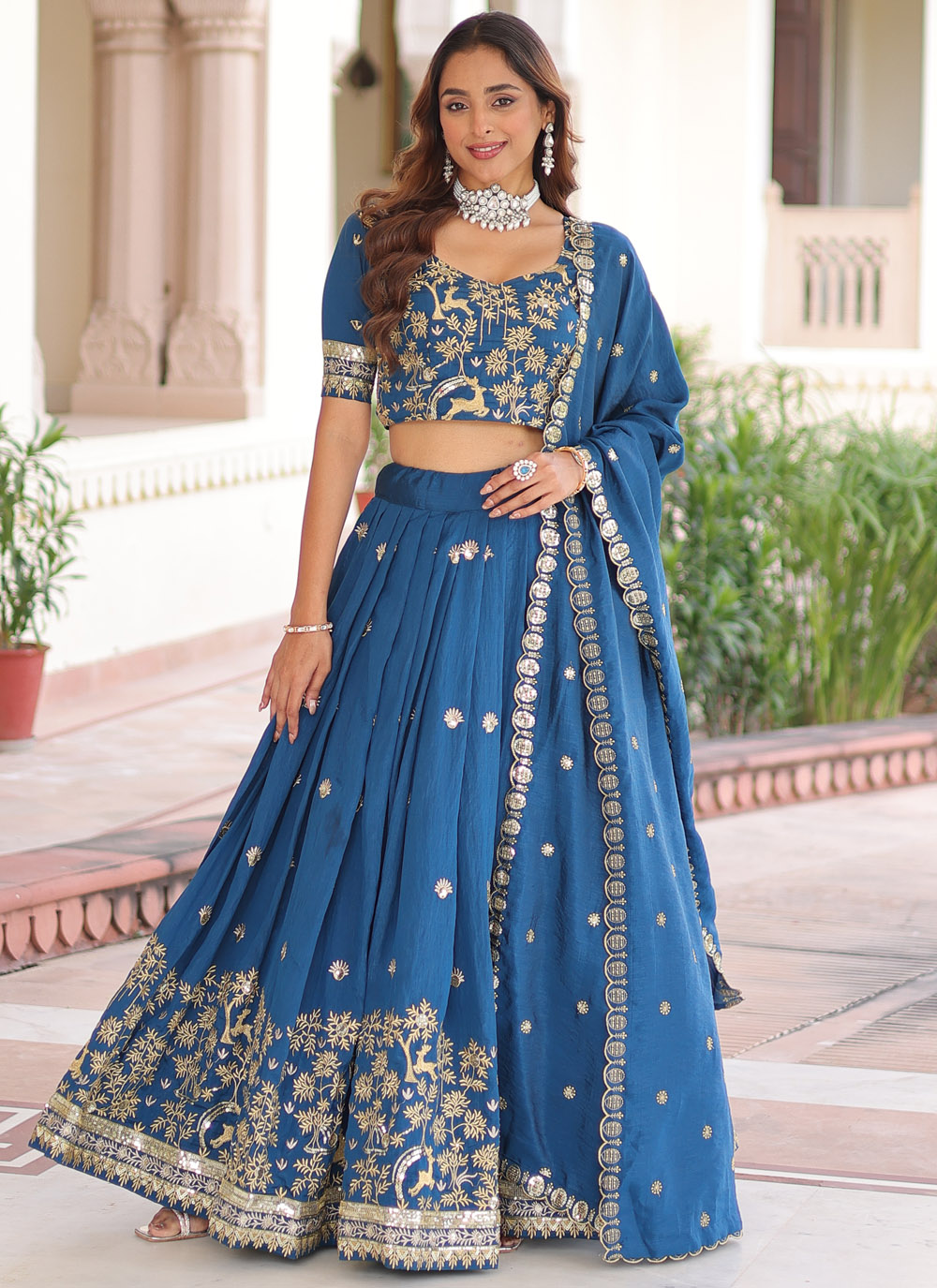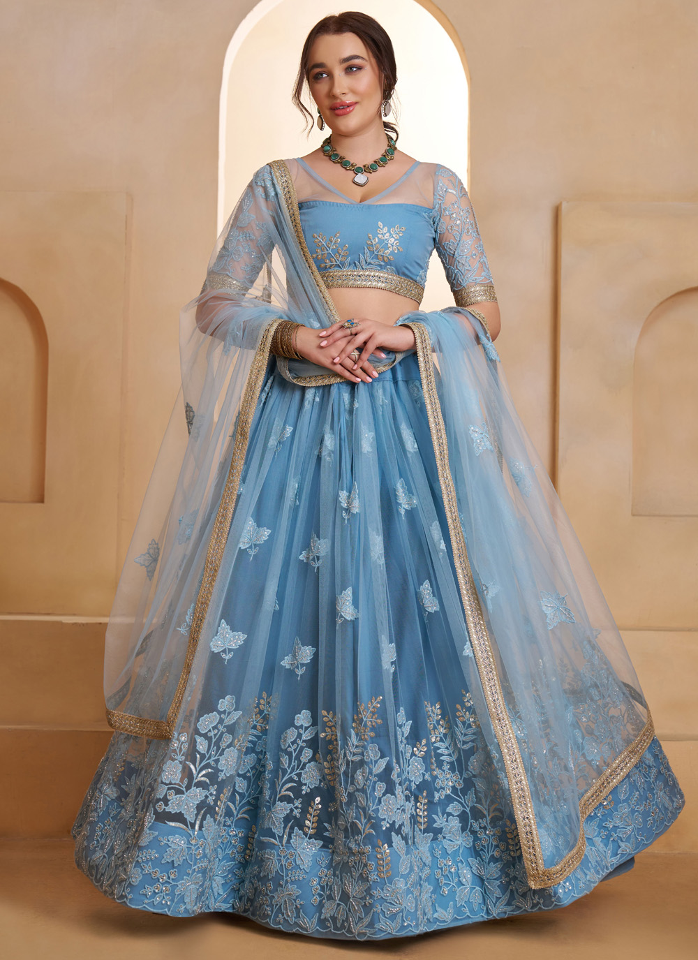 Net Sequins Embroidered Aqua Blue Designer Lehenga Choli