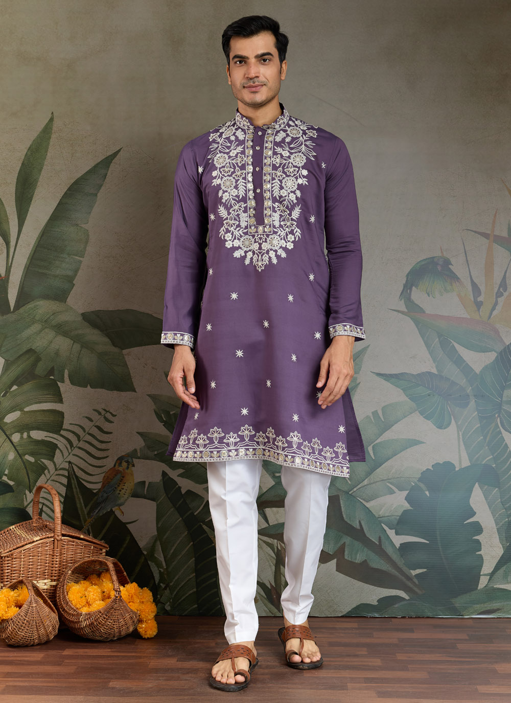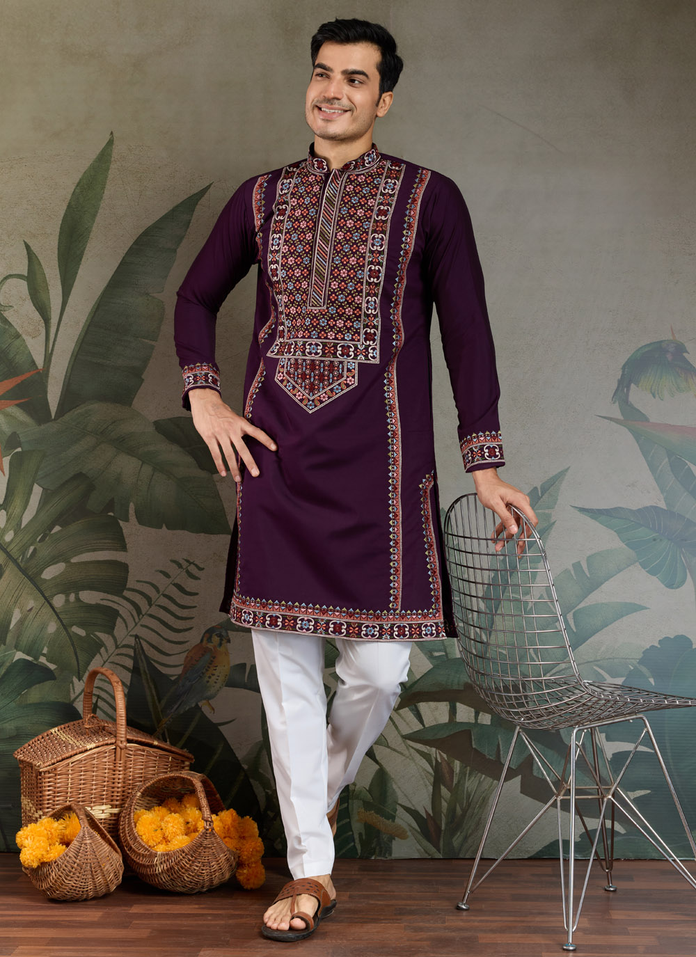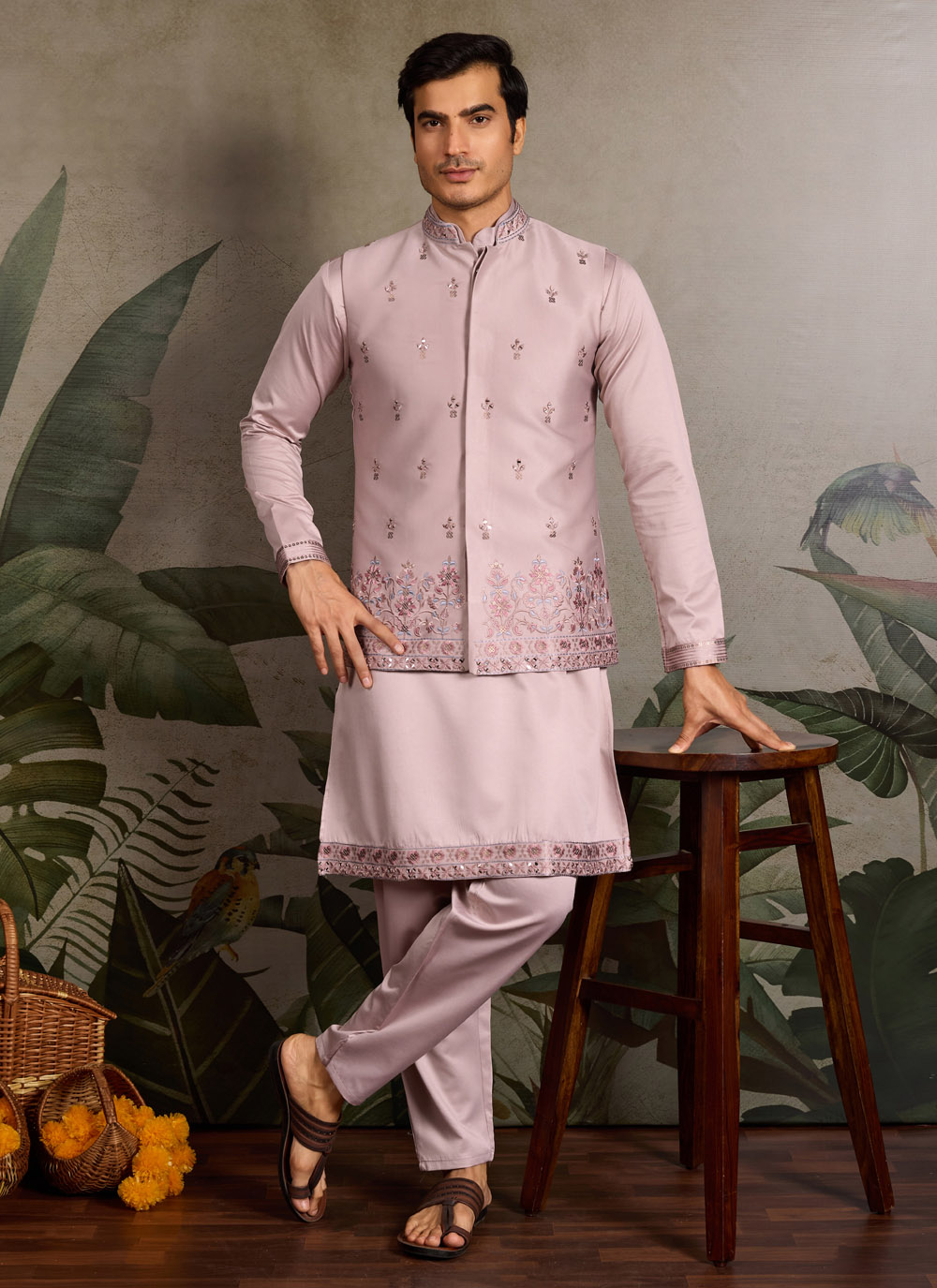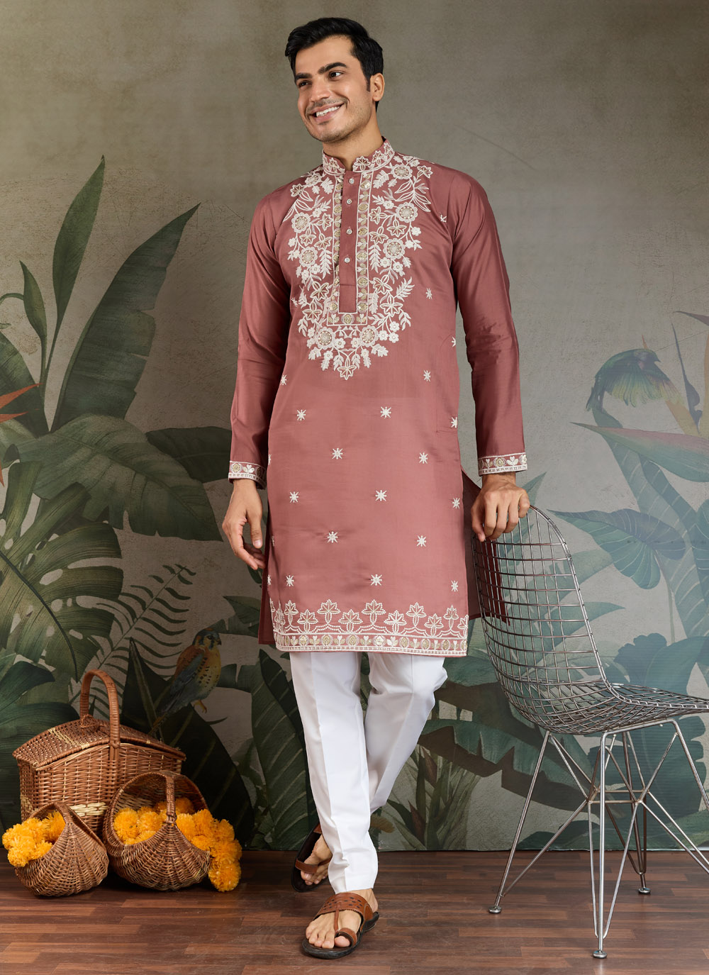 Pink Viscose Silk Embroidered Kurta for Ceremonial
