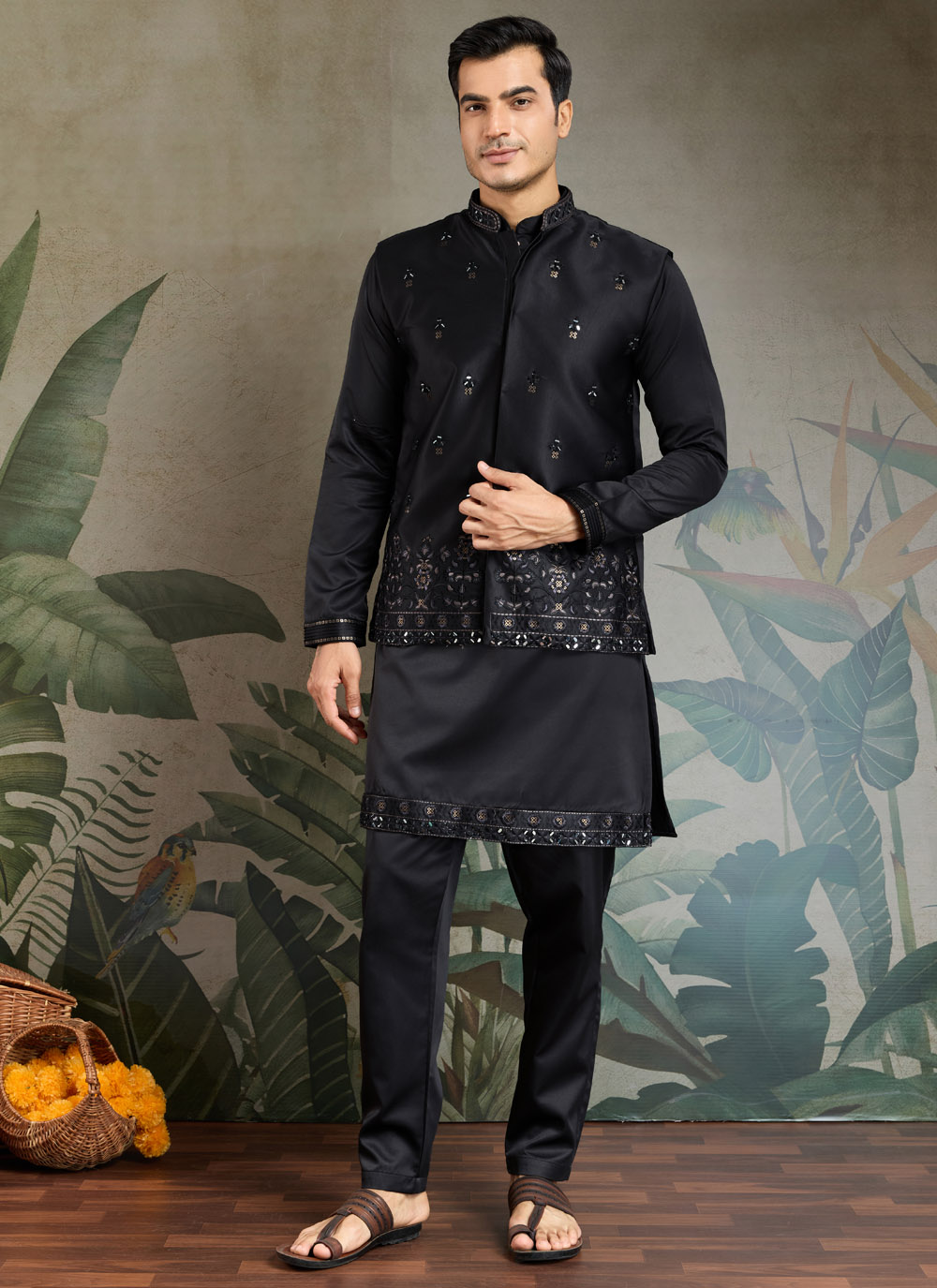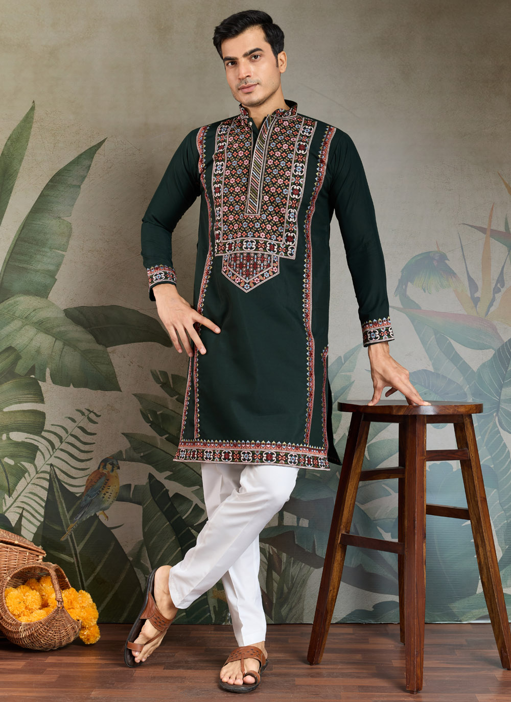 Green Viscose Mirror Embroidered Men's Kurta for Ceremonial