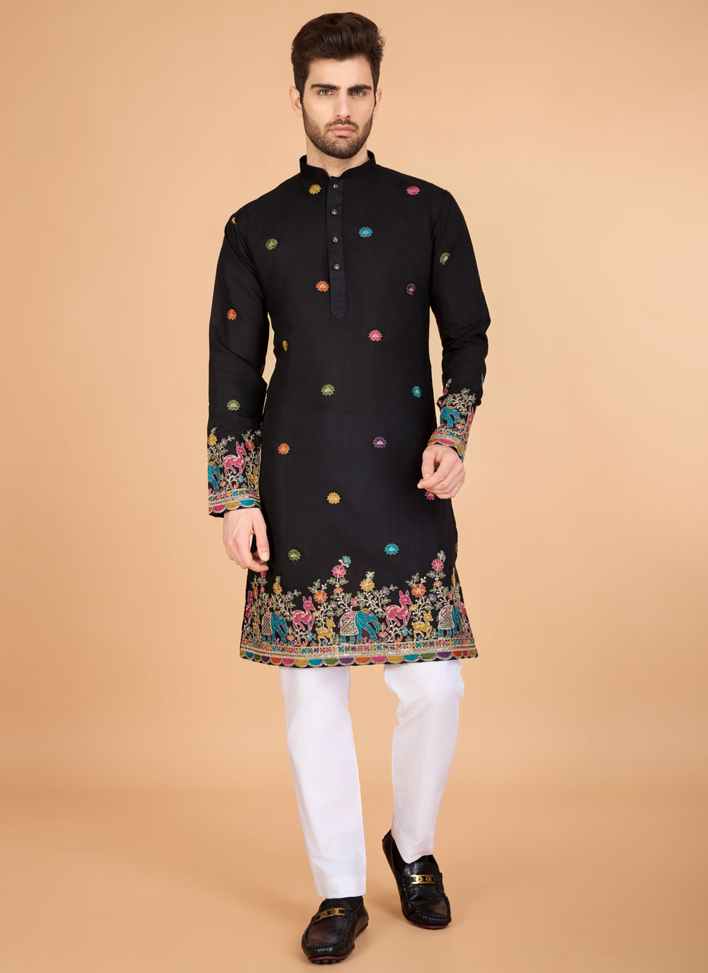 Black Viscose Silk Embroidered Kurta for Party