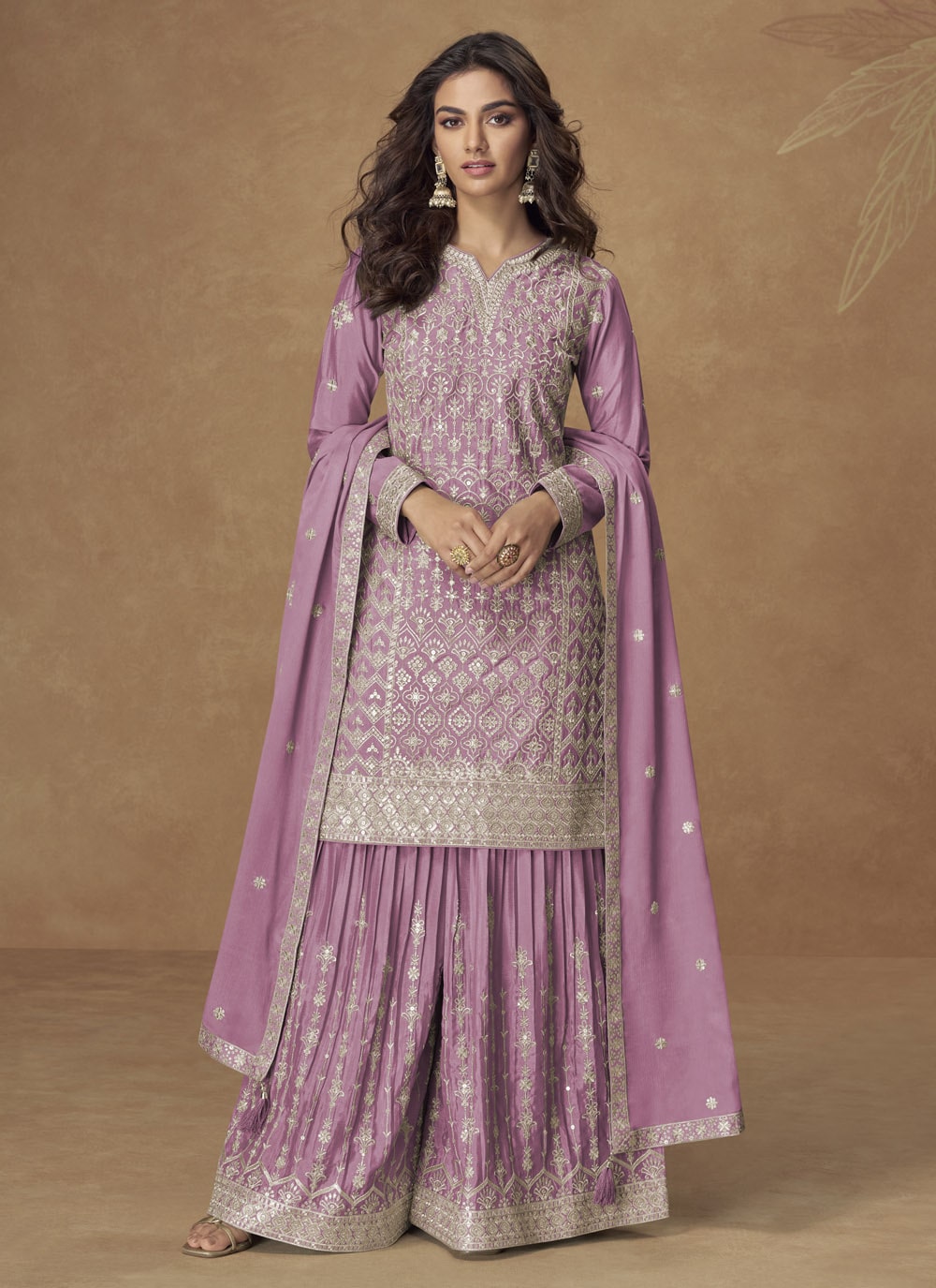 Purple Chinon Silk Embroidered Designer Salwar Kameez