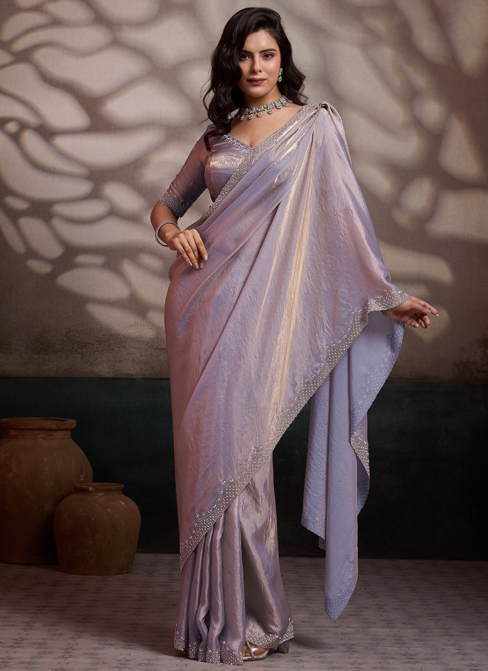 Lavender Silk Embroidered and Cut Work Trendy Saree
