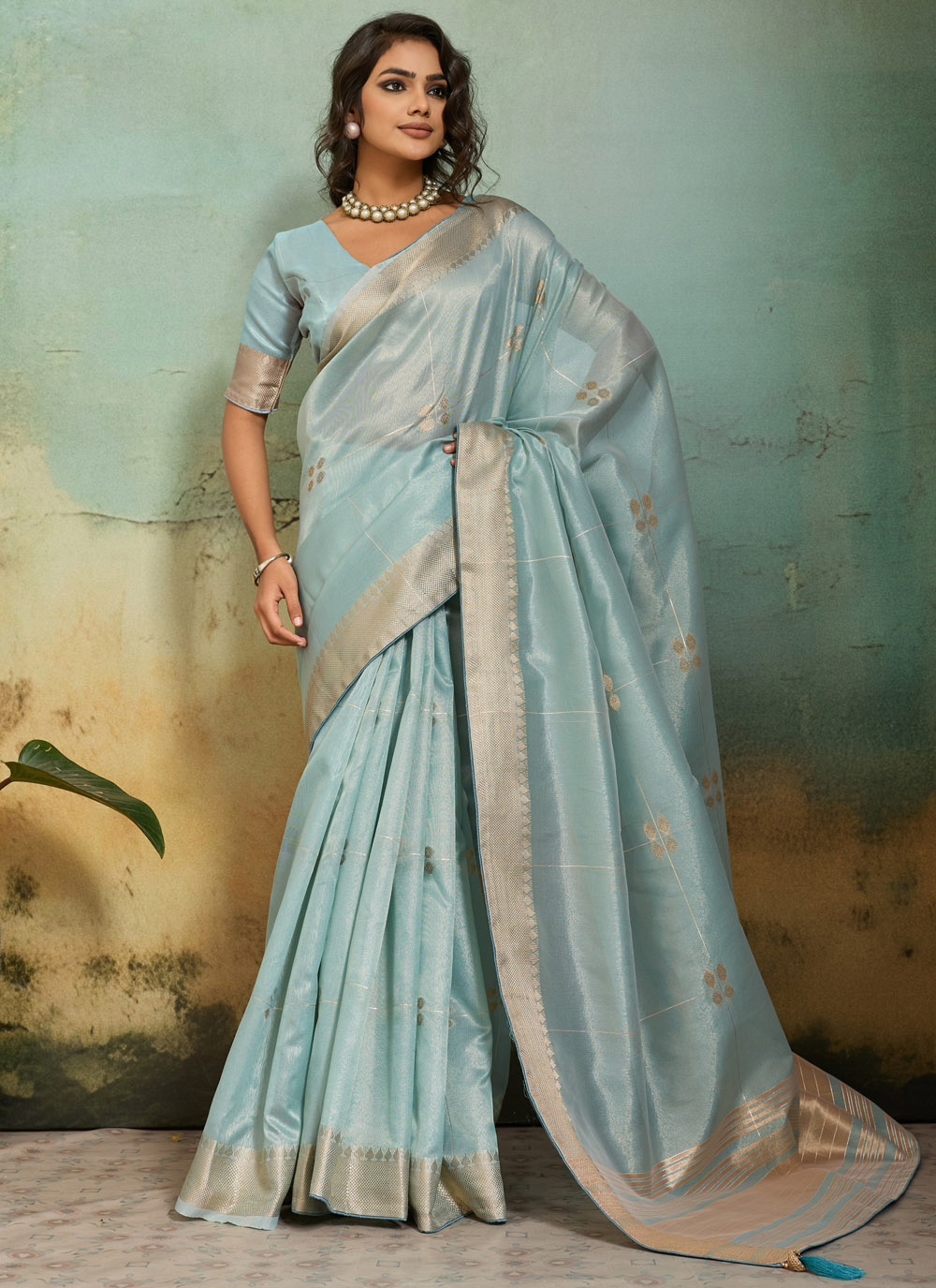 Firozi Banarasi Silk Weaving Zari Contemporary Saree