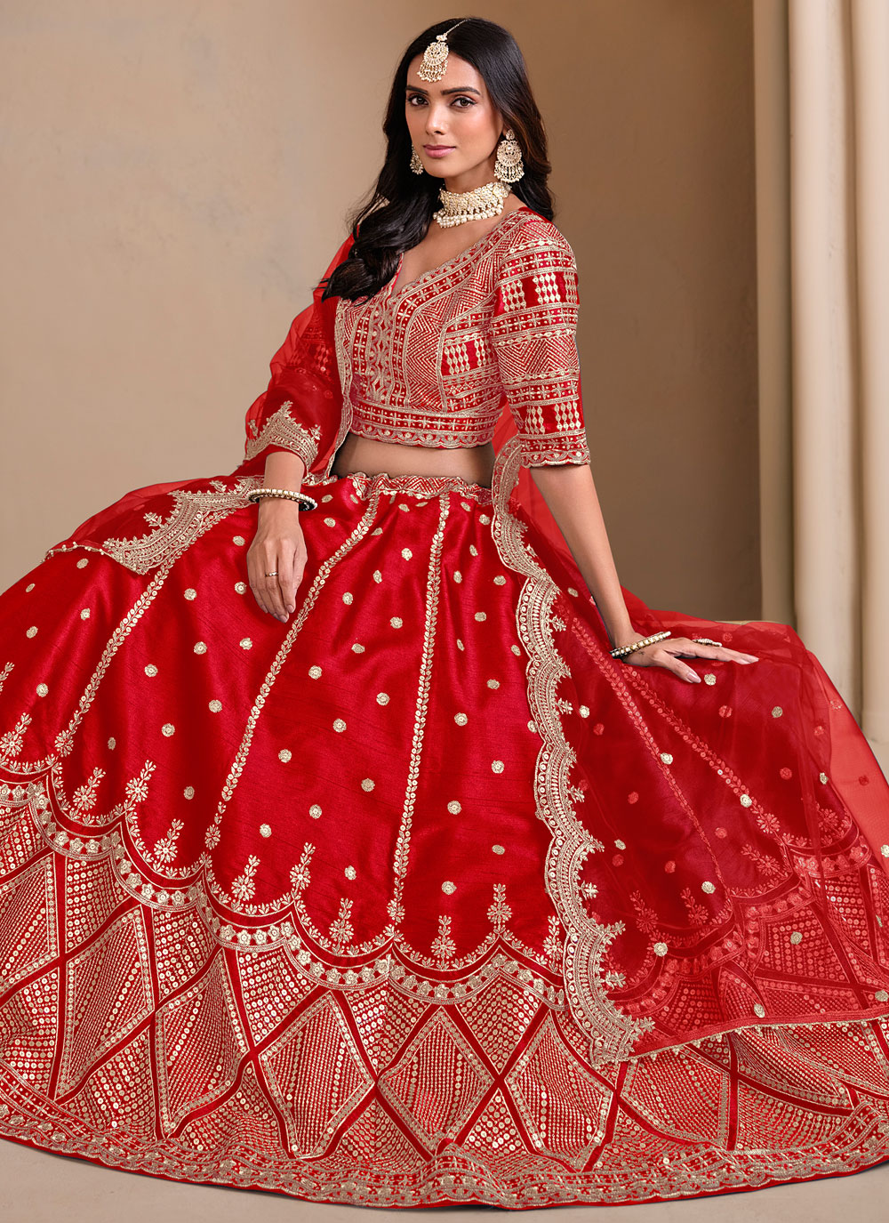 The Art Silk Embroidered Mirror Lehenga Choli in Red features intricate mirror embroidery on rich art silk fabric, offering a vibrant and luxurious look. Paired with a matching choli and dupatta, this lehenga choli is perfect for festive celebrations, combining traditional elegance with modern charm for a stunning appearance.