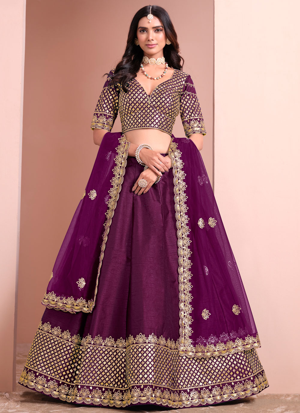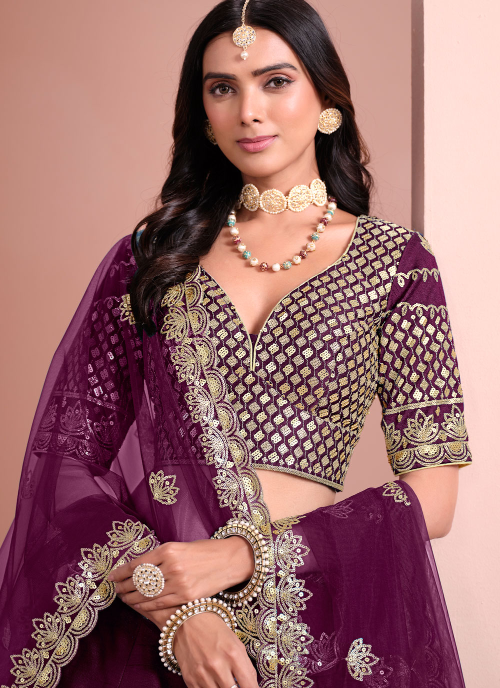 This Art Silk Embroidered Sequins Festive Lehenga Choli in Purple features exquisite embroidery and sparkling sequins, creating a vibrant and luxurious look. Perfect for weddings, receptions, or festive celebrations, the rich purple hue adds a regal touch to your ensemble. With its intricate design and elegant finish, this lehenga choli ensures you stand out on any special occasion.