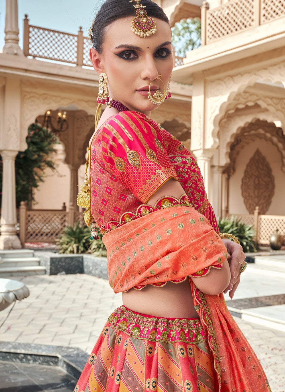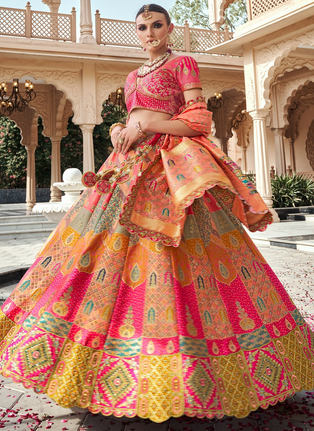 Be it an engagement, wedding, or reception, this multi-colored sequin and stone work lehenga ensures a stunning appearance. The detailed cutwork border and rich hues make it a statement piece for every grand event. Comes with matching choli and dupatta.