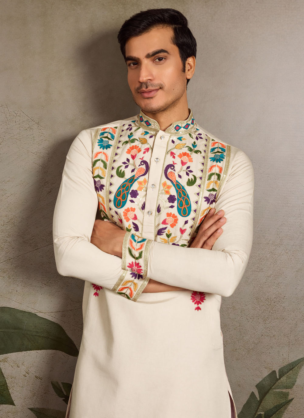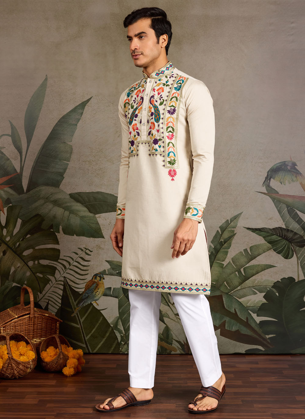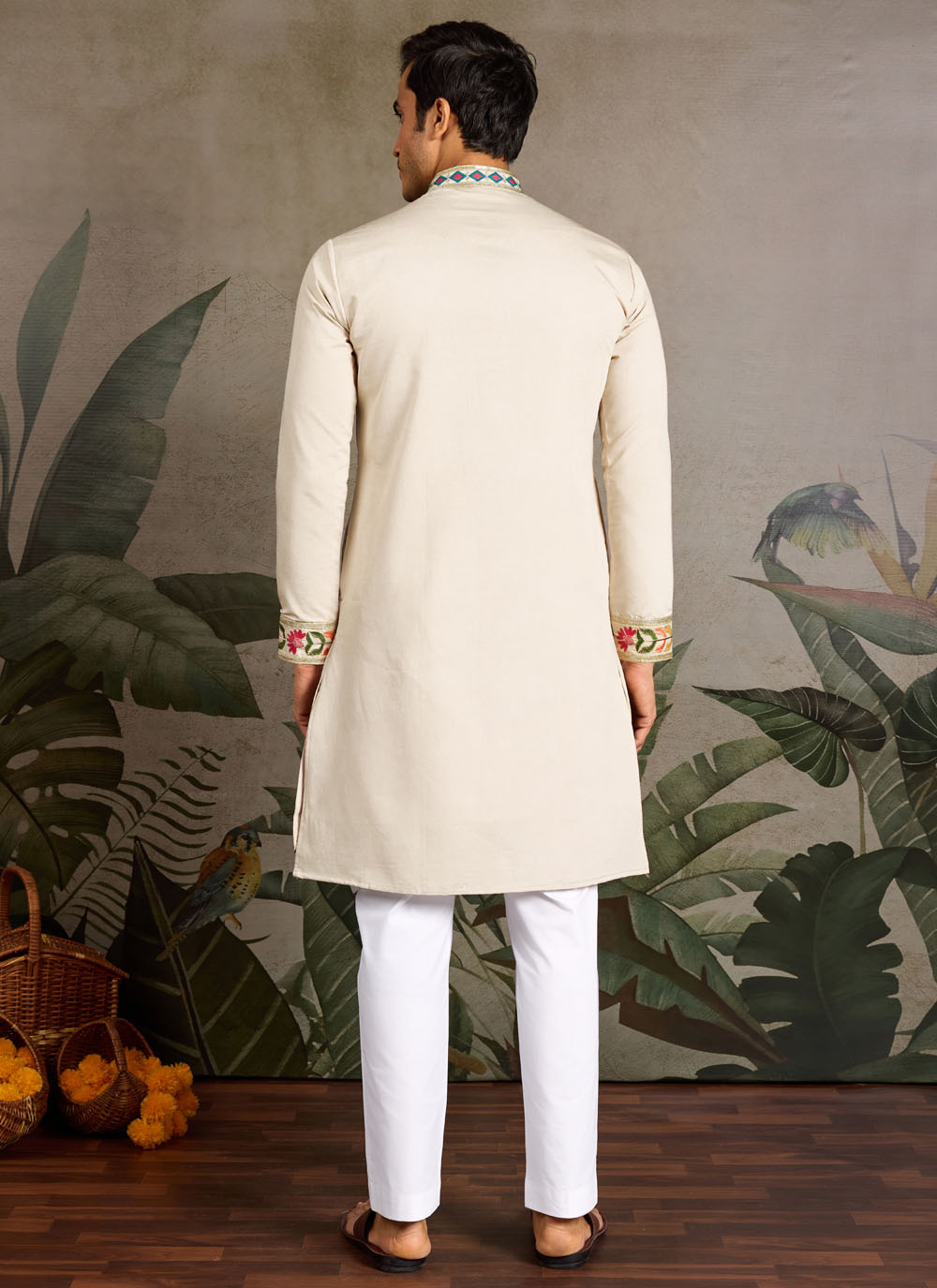 Bring elegance to your festive attire with this Beige Silk Kurta, adorned with fine thread embroidery. The subtle shade and premium silk fabric make it a sophisticated choice for cultural celebrations and traditional gatherings.