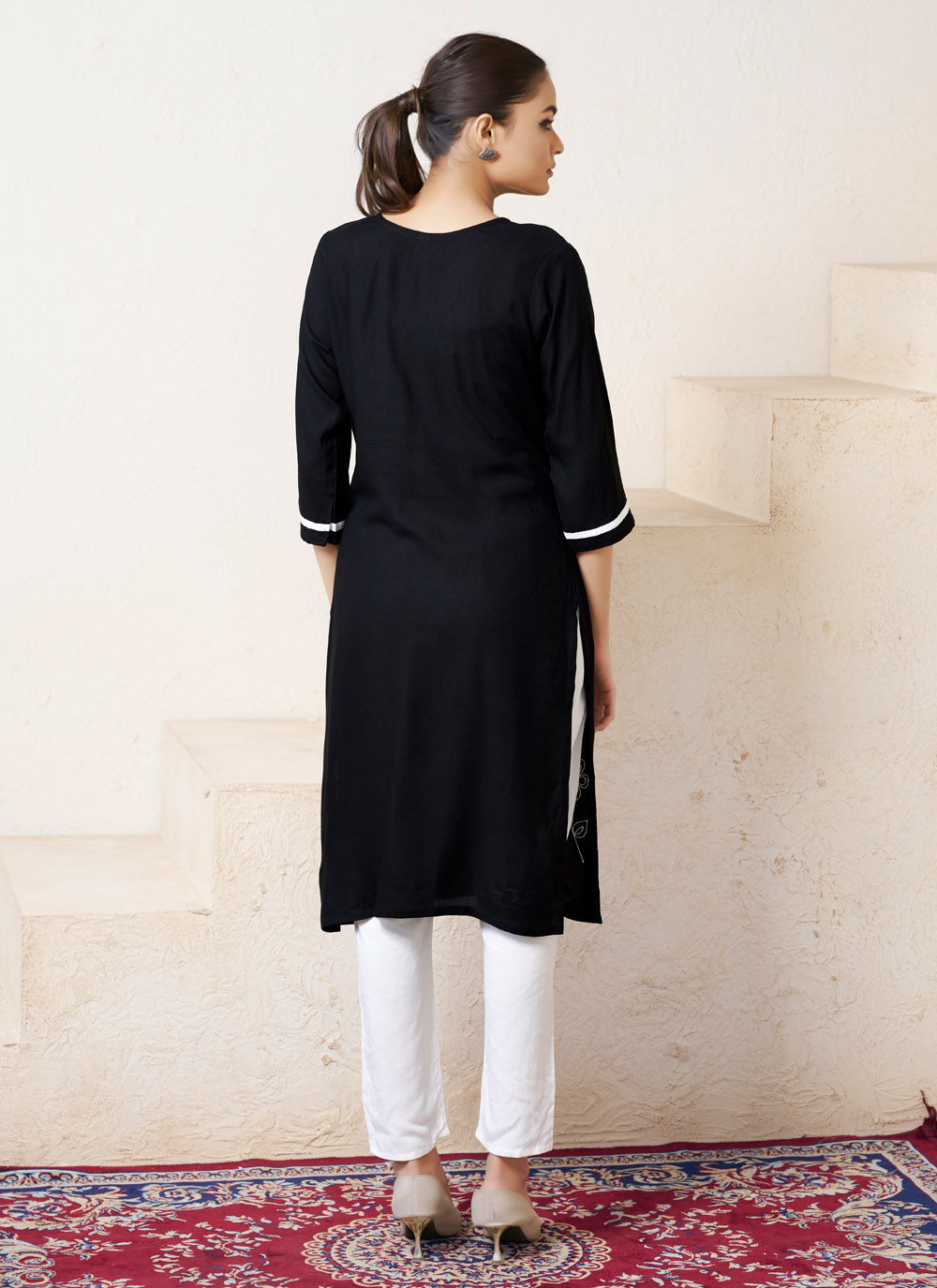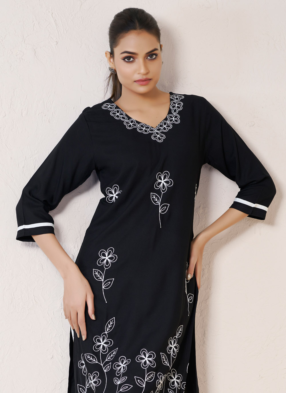 Redefine your daily wardrobe with this chic Black Embroidered Kurti crafted in soft viscose rayon. With delicate embroidery and a flattering fit, this kurti is ideal for modern women seeking comfort without compromising on traditional elegance.