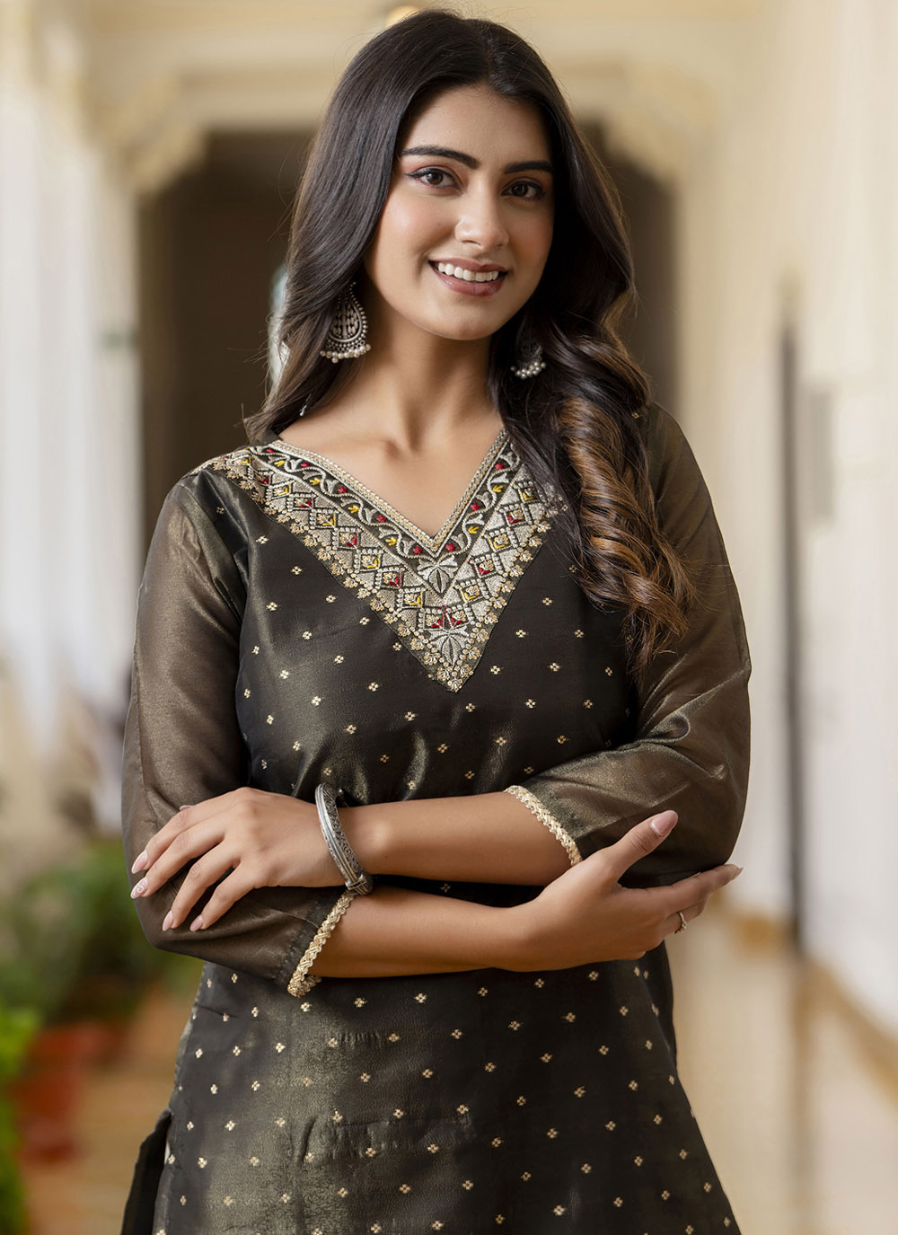 Stay stylish and comfortable in this Trendy Black Kurti, crafted from a soft silk blend material. The intricate embroidery on the neckline and sleeves brings a modern ethnic vibe, perfect for smart casuals and semi-formal gatherings.