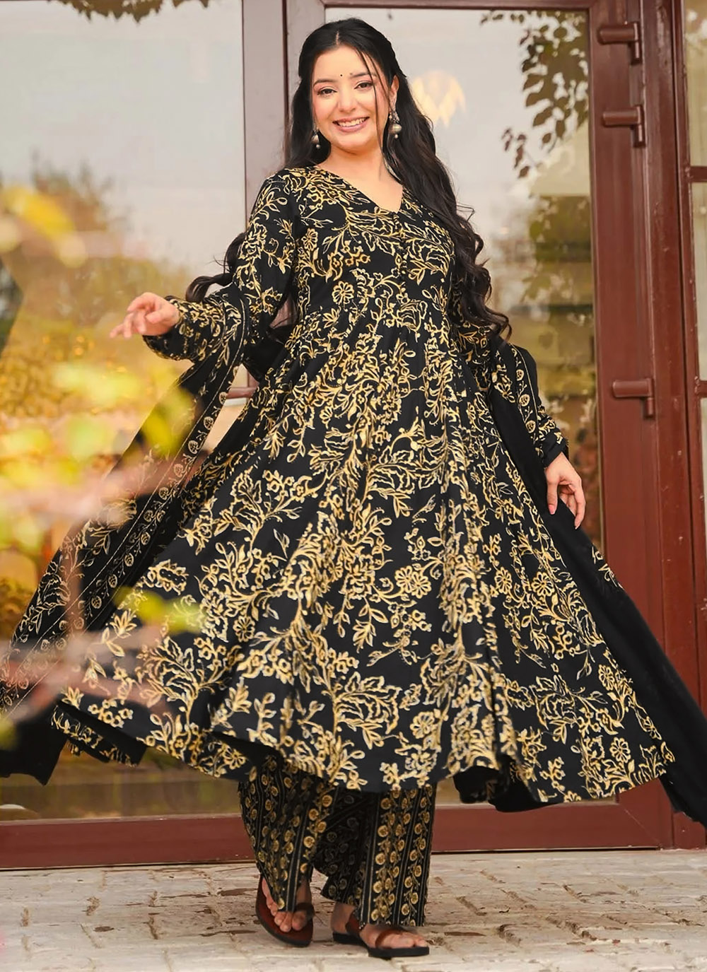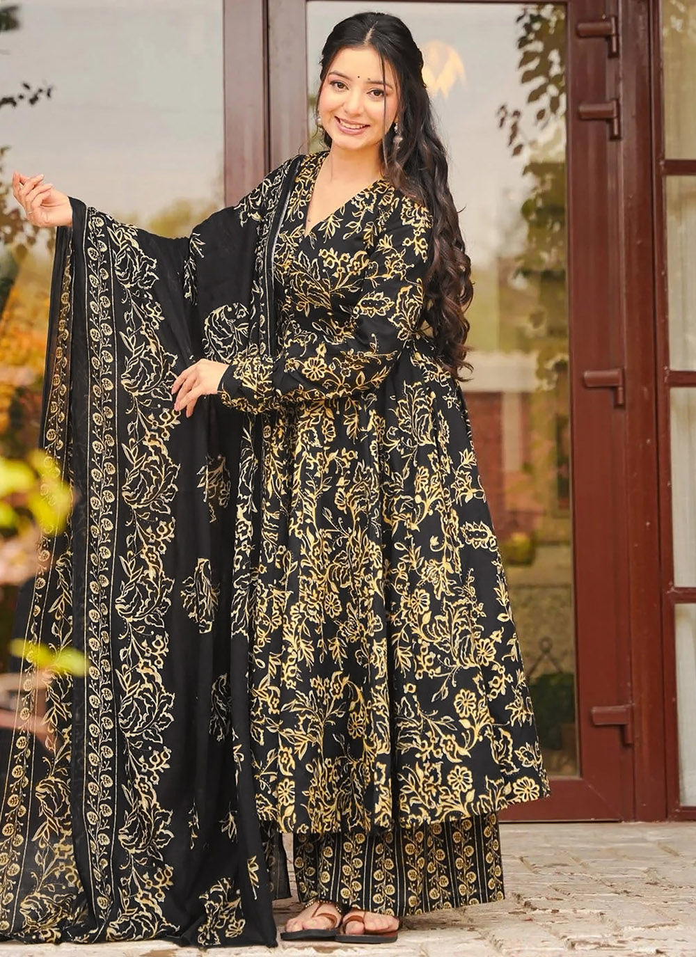 This plus size black muslin salwar suit is thoughtfully tailored to celebrate every curve with elegance. The smooth texture of muslin adds a soft drape, while the digital print gives a vibrant and detailed finish. Comes with matching bottom and dupatta.